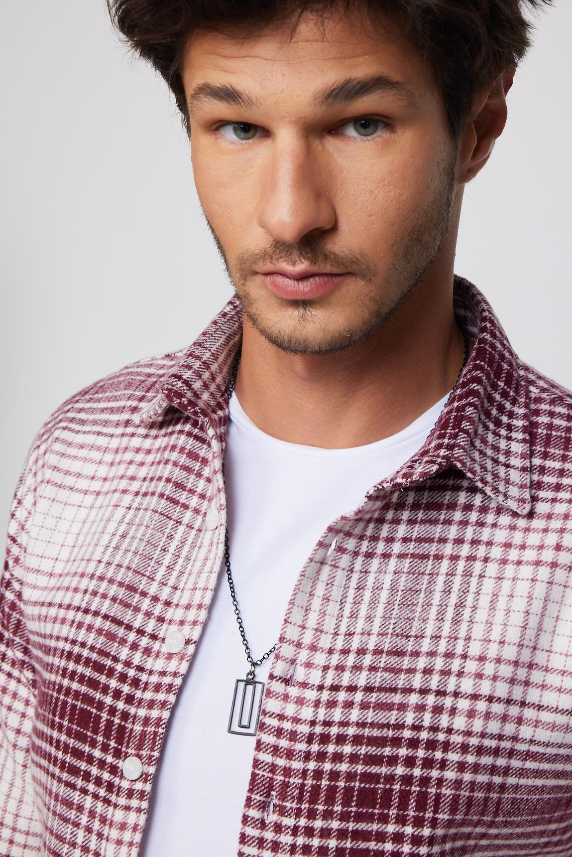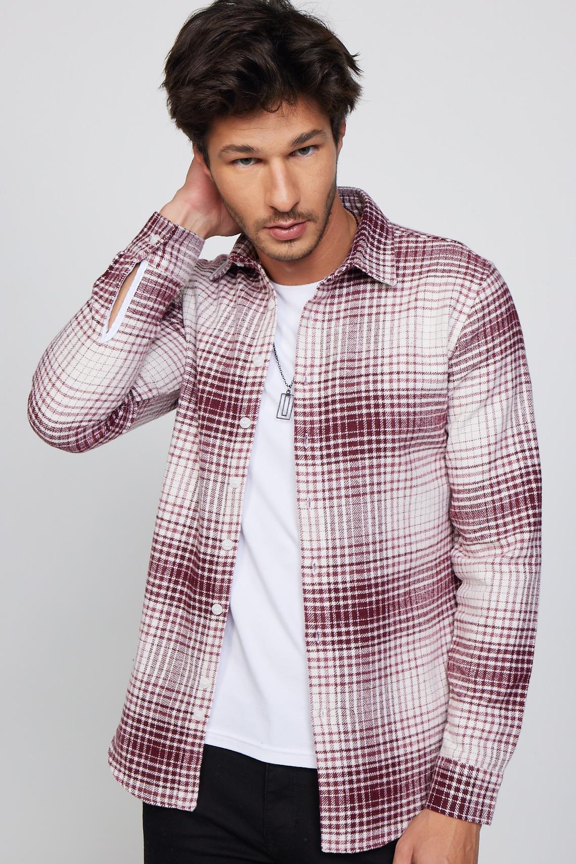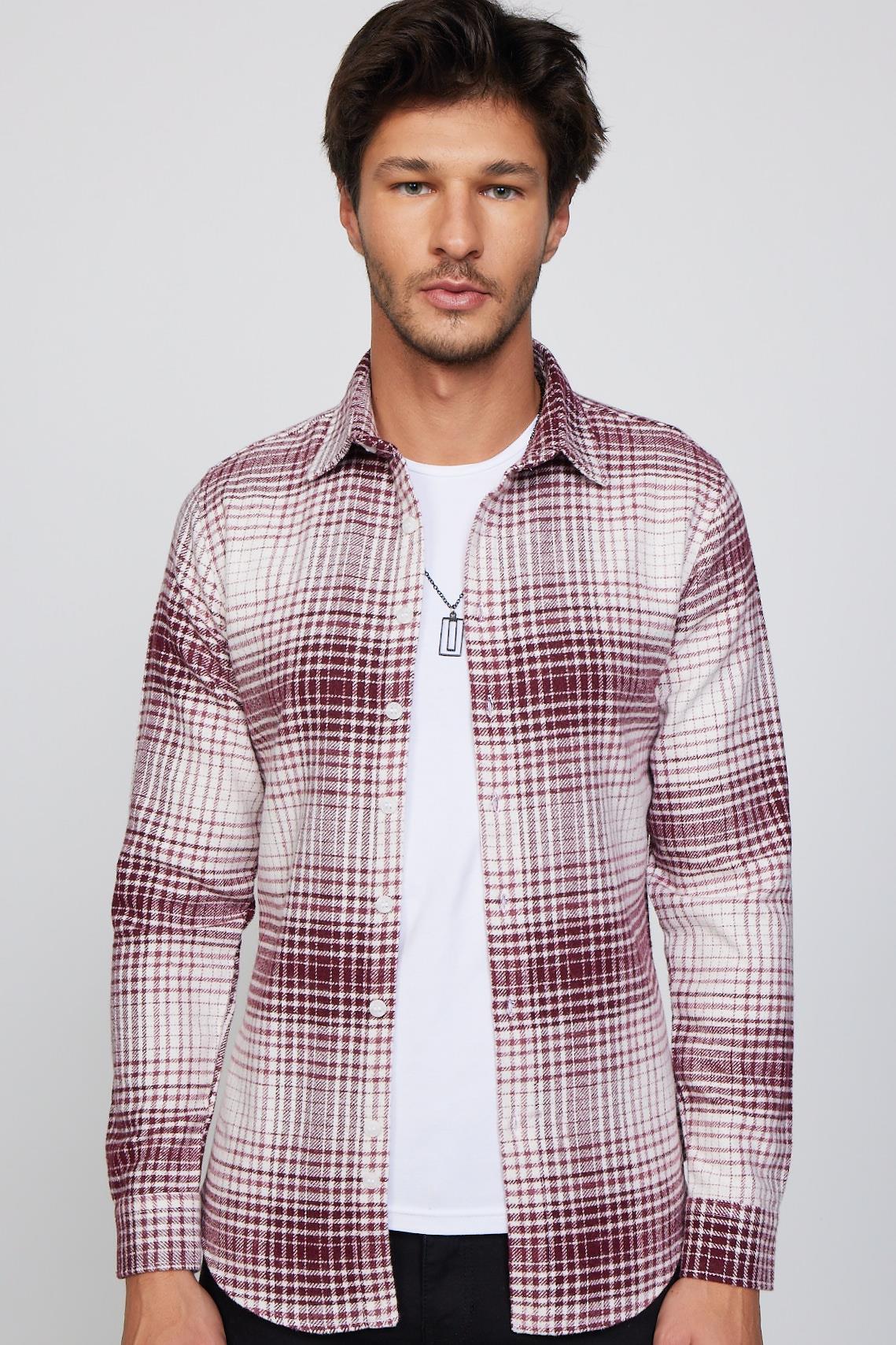 Erkek Slim Fit Dar Kesim Uzun Kollu Kareli Kışlık Oduncu Gömlek (DR240045-700)