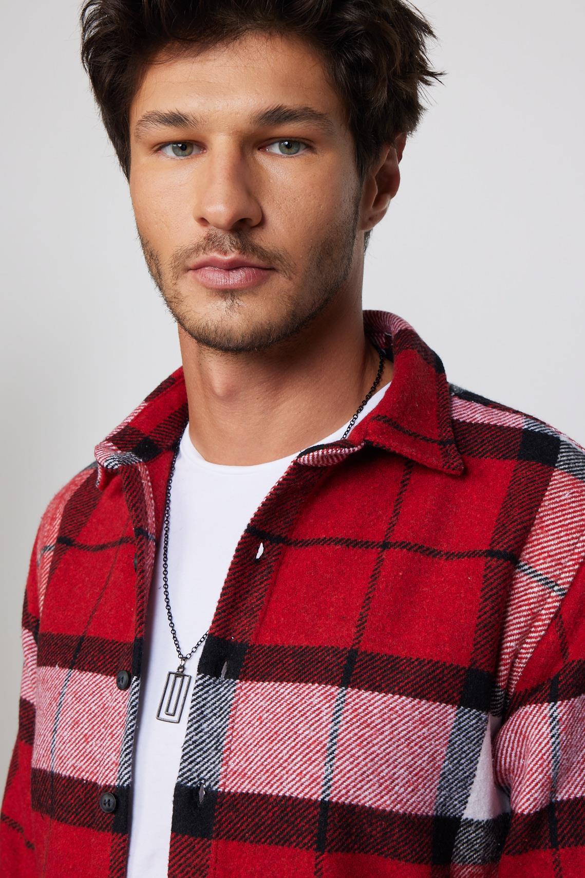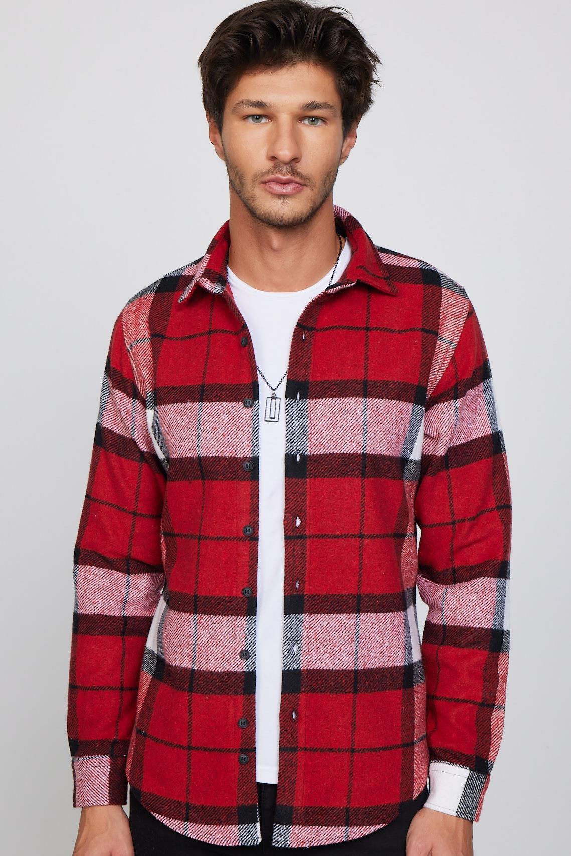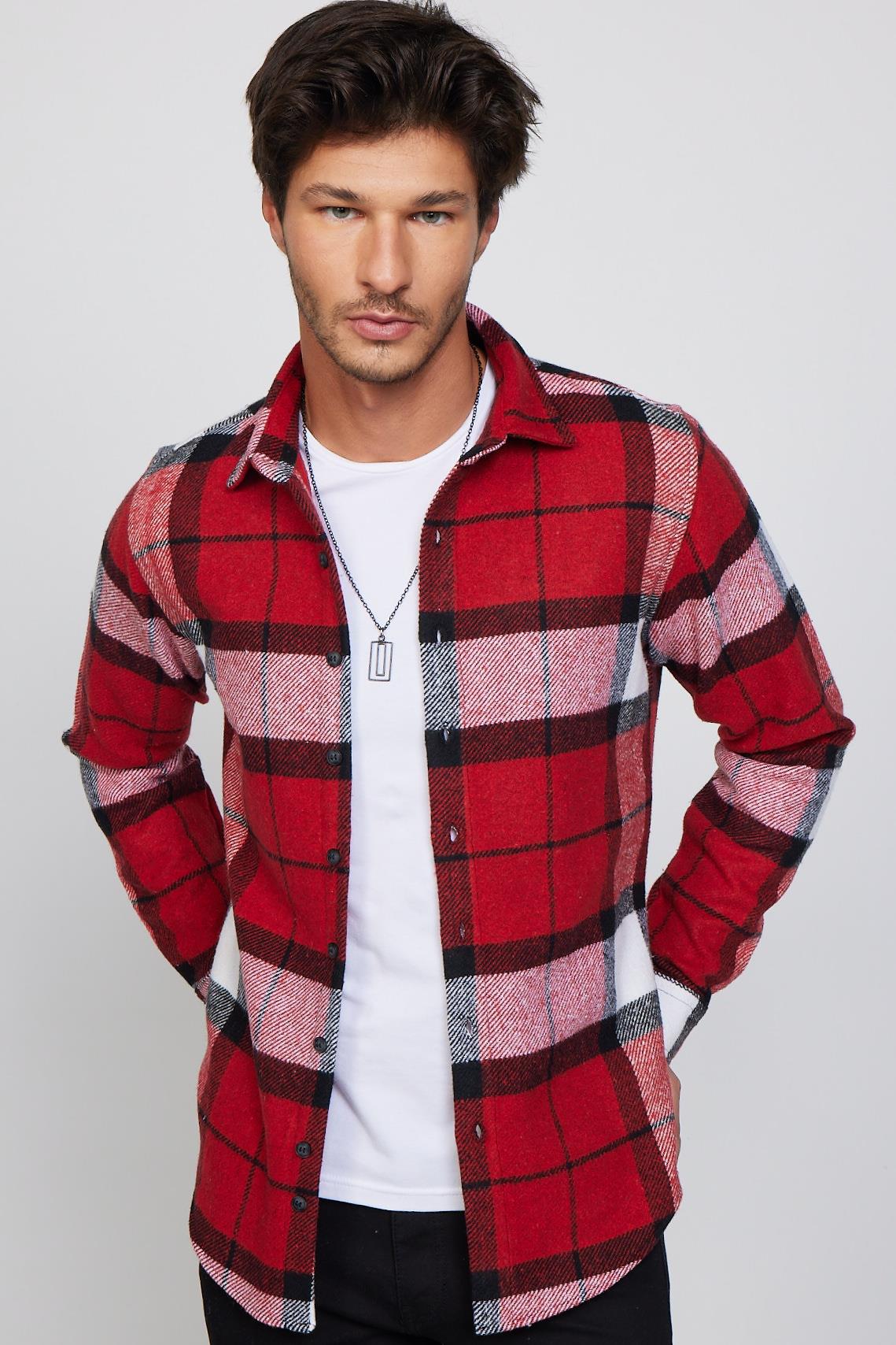 Erkek Slim Fit Dar Kesim Uzun Kollu Kareli Kışlık Oduncu Gömlek (DR240045-3106)