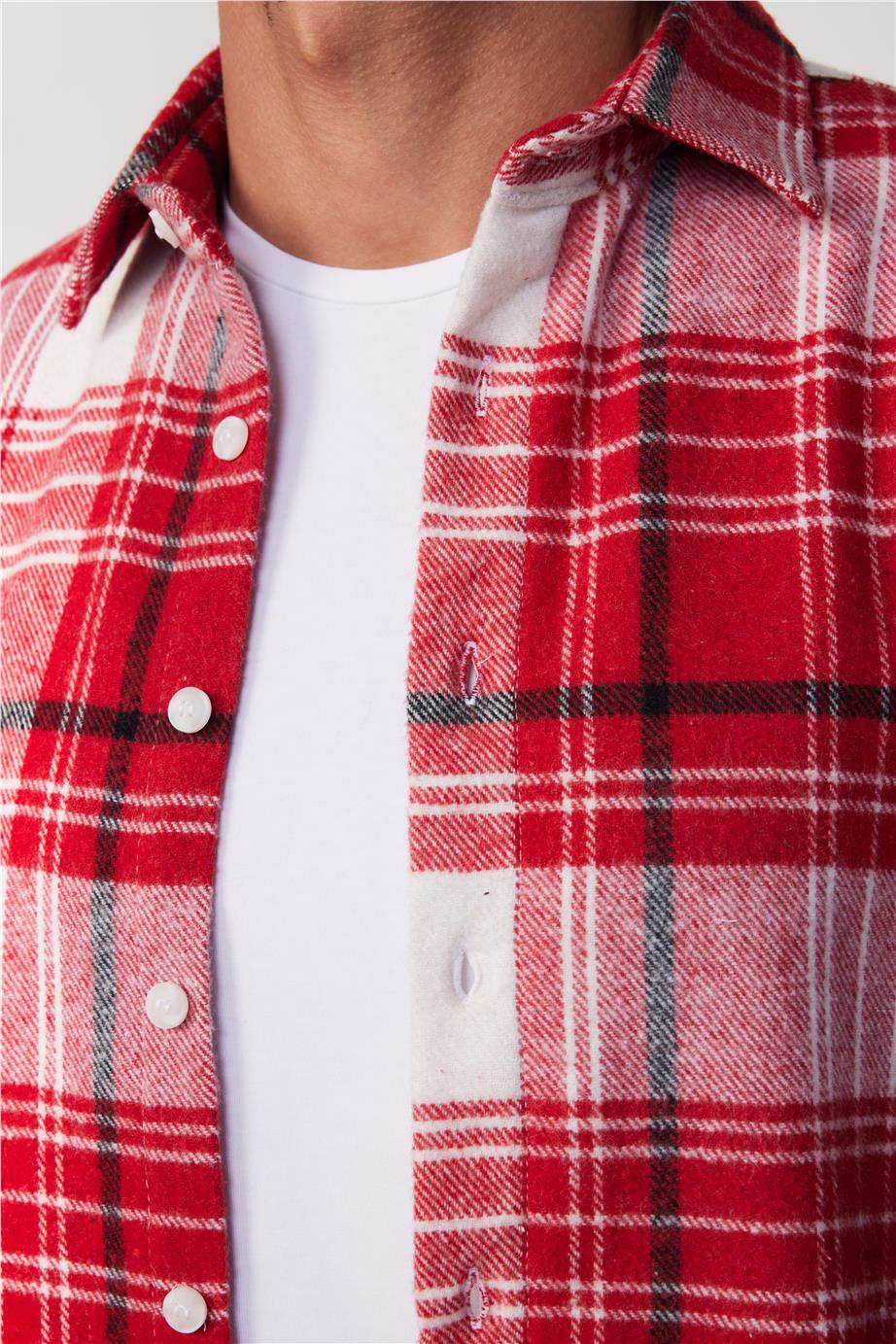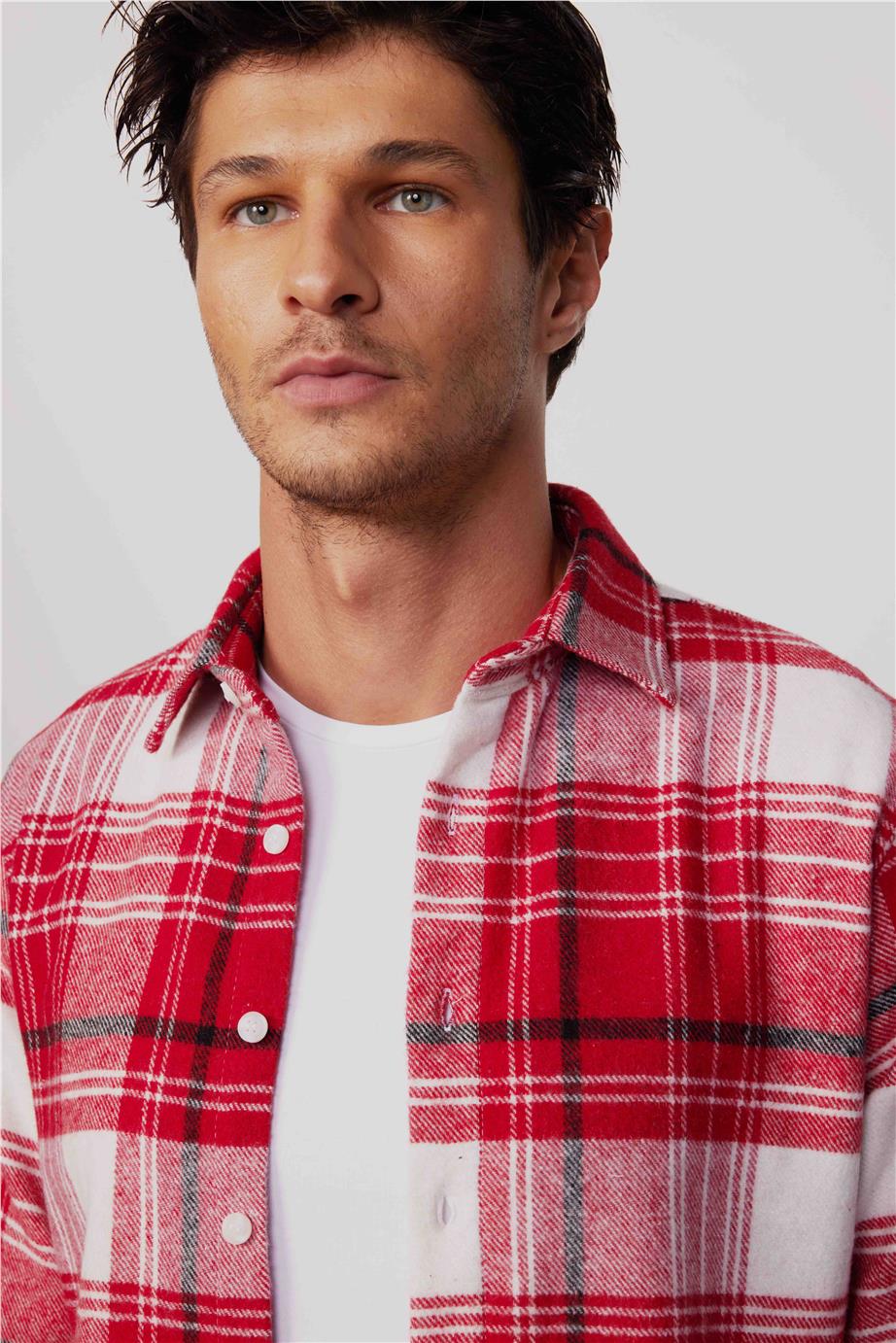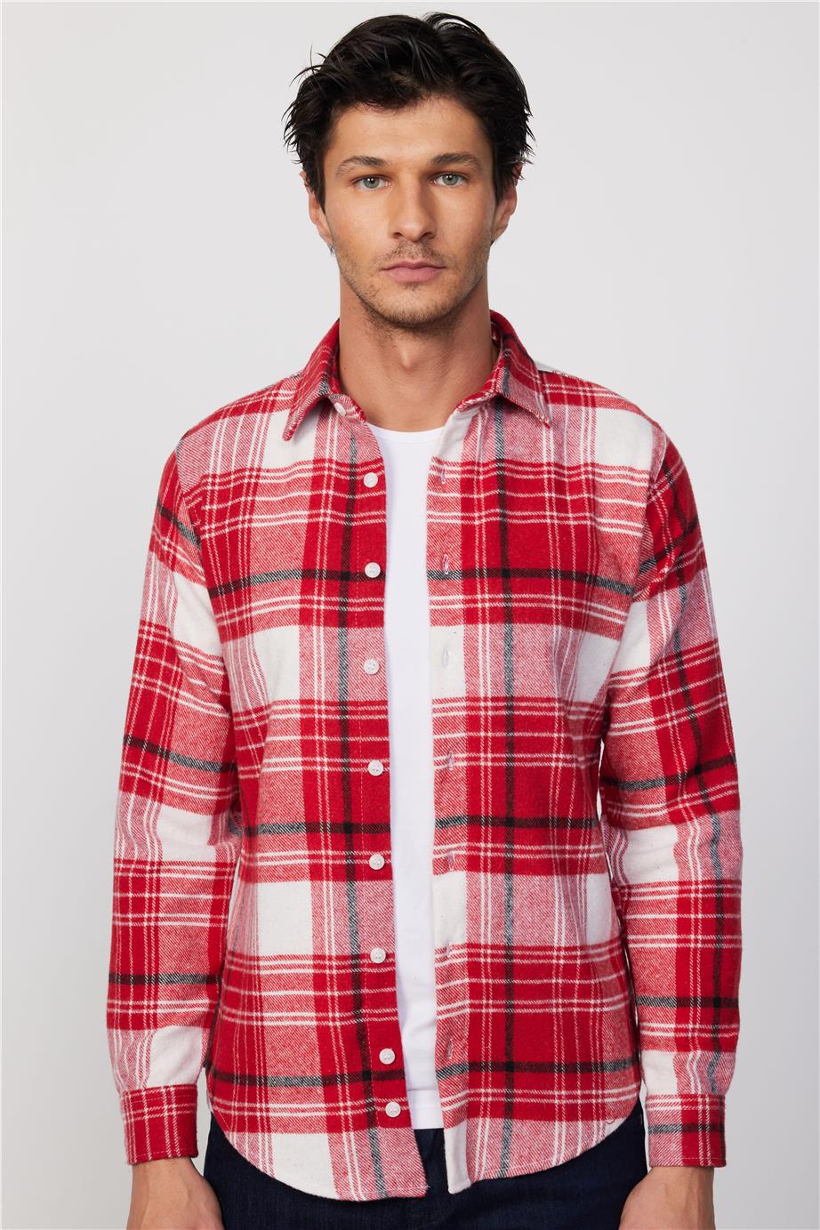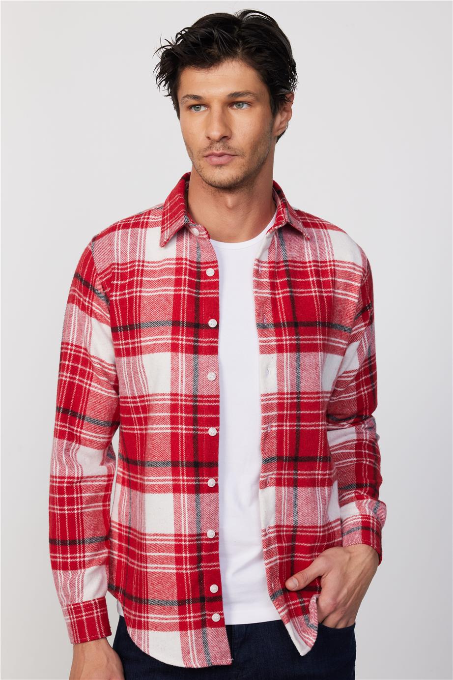 Erkek Slim Fit Dar Kesim Uzun Kollu Kareli Kışlık Oduncu Gömlek (DR240045-3102)