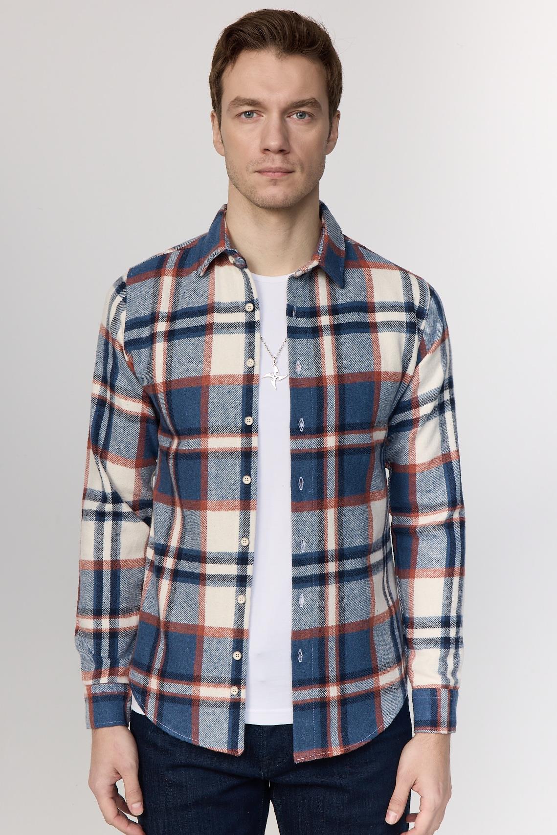Erkek Slim Fit Dar Kesim Uzun Kollu Kareli Kışlık Oduncu Gömlek (DR240045-3210)