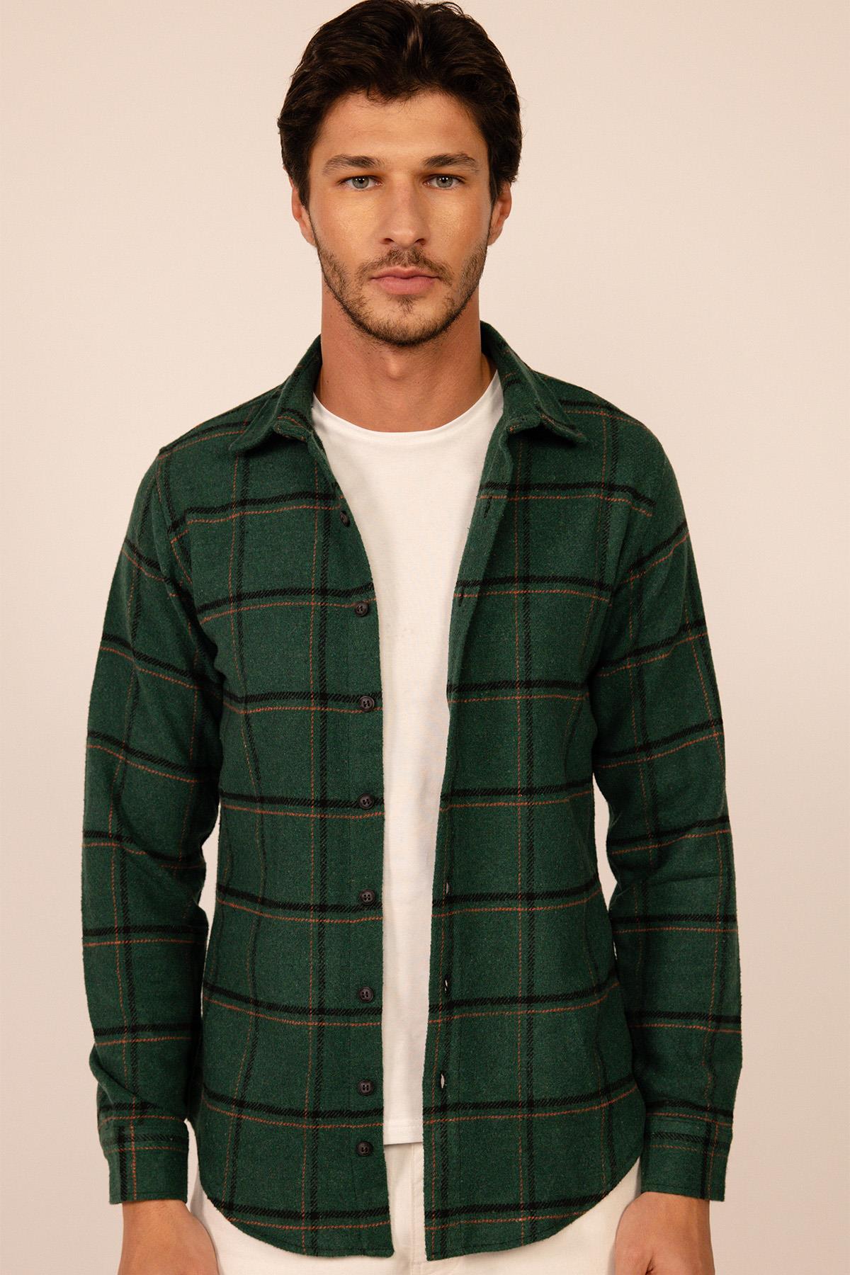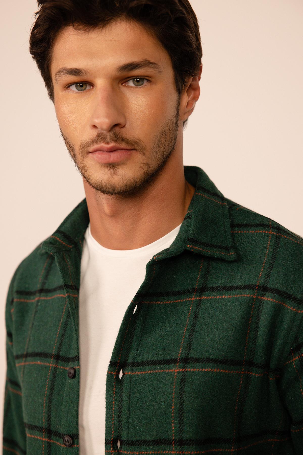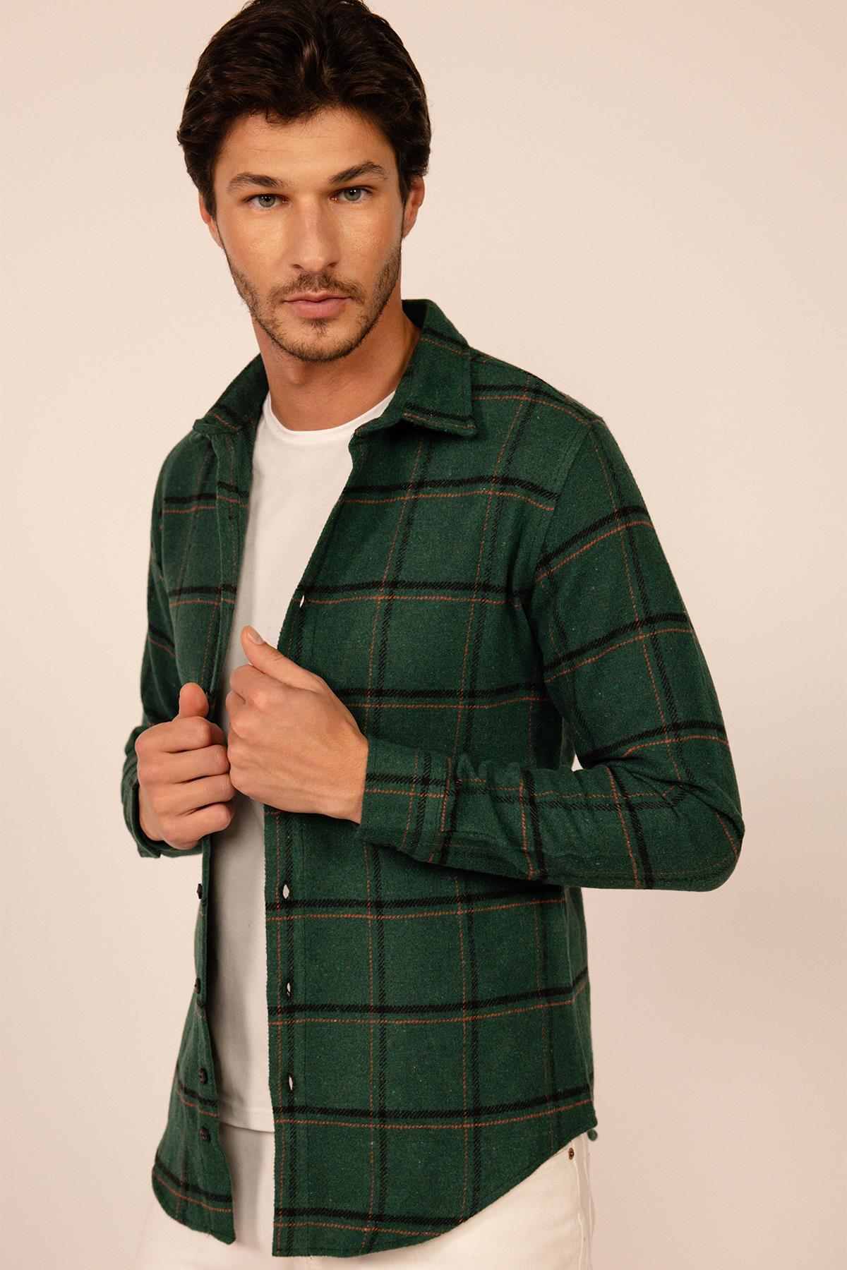Erkek Slim Fit Dar Kesim Uzun Kollu Kareli Kışlık Oduncu Gömlek (DR240045-710)