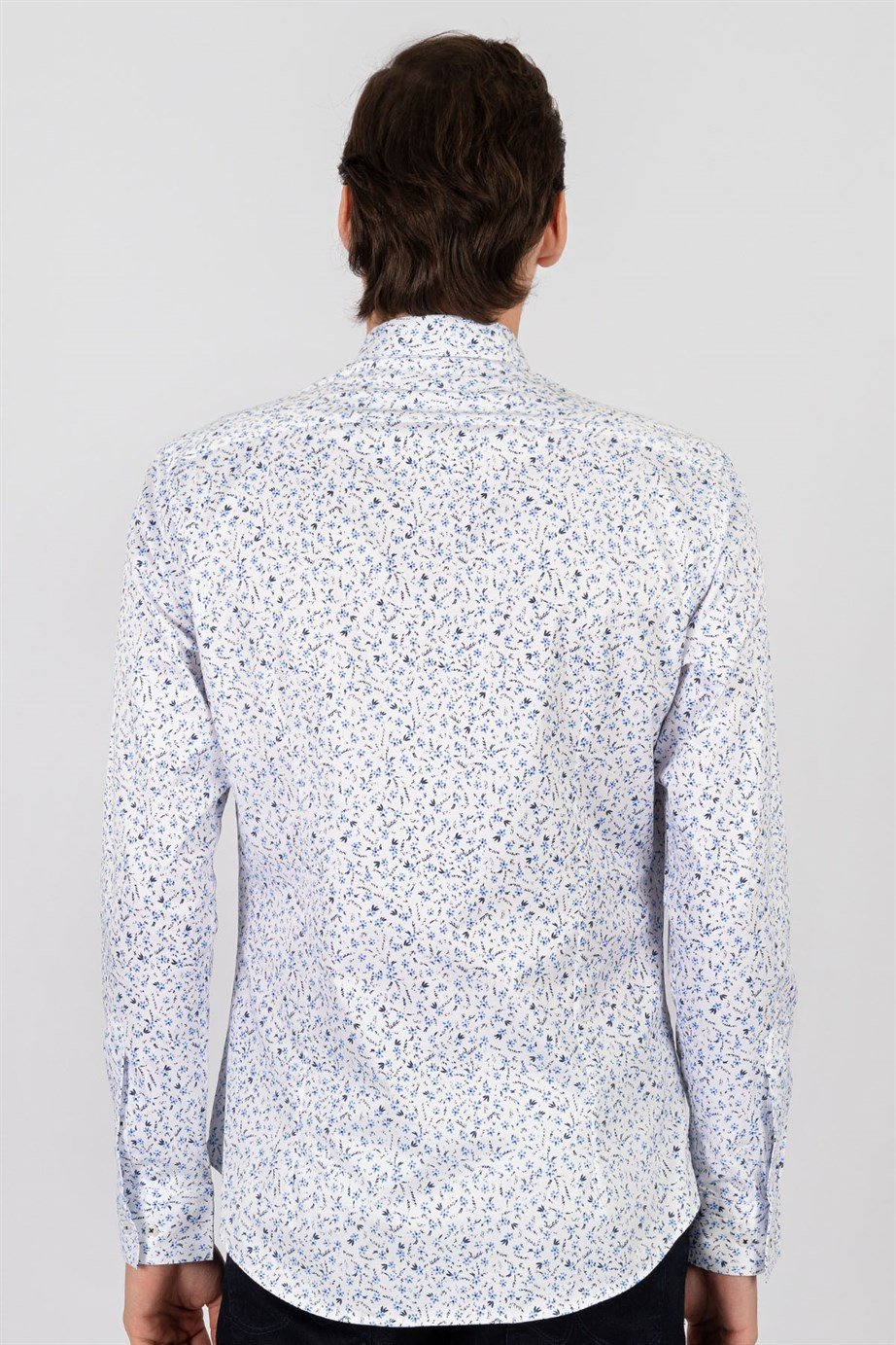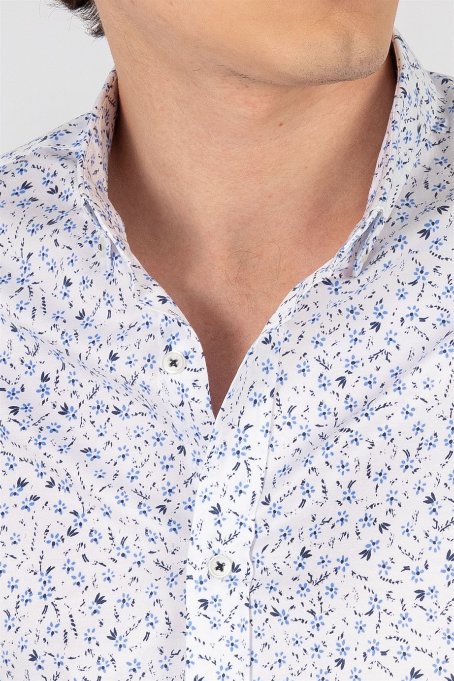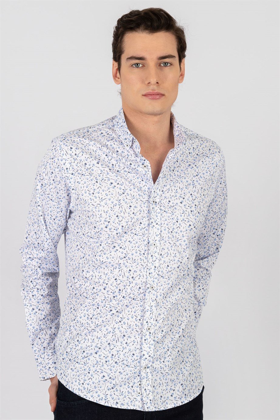 Süper Slim Fit Uzun Kollu Düğmeli Yaka Likralı Desenli Erkek Gömlek (DR200138-401)