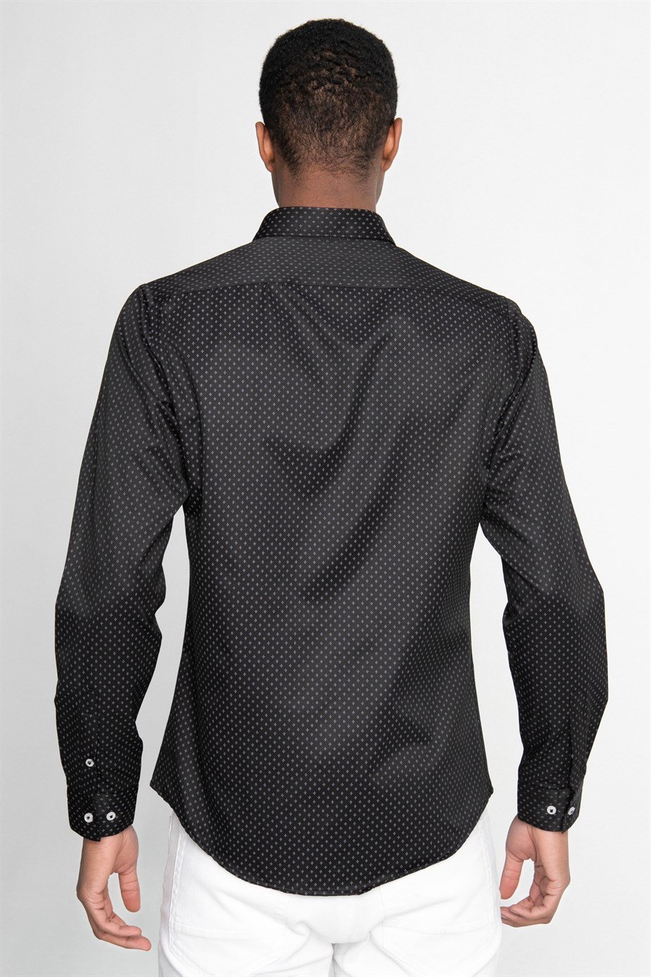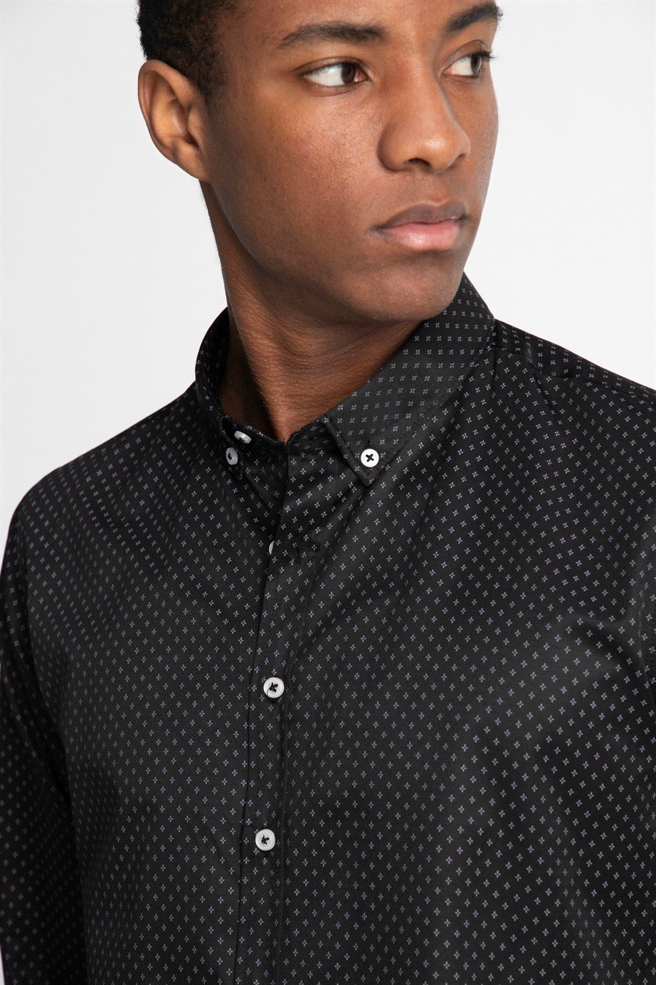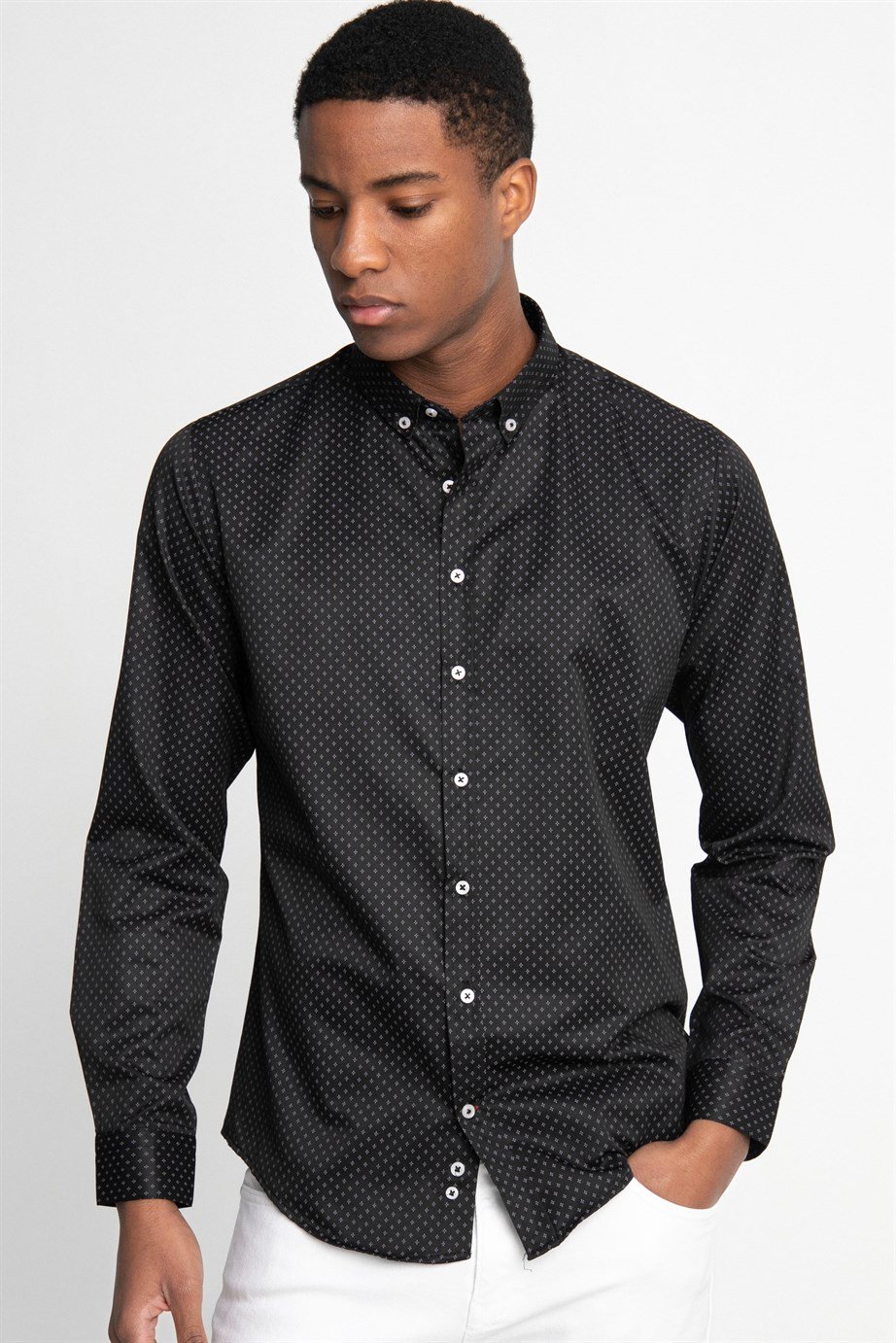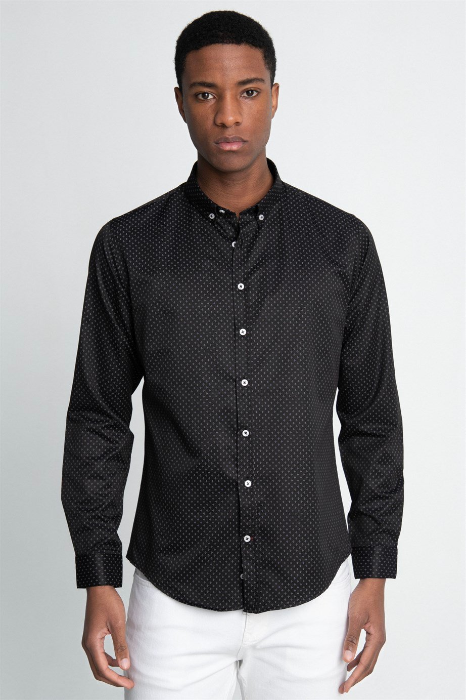Slim Fit Uzun Kollu Düğmeli Yaka Pamuklu Kolay Ütü Desenli Erkek Gömlek