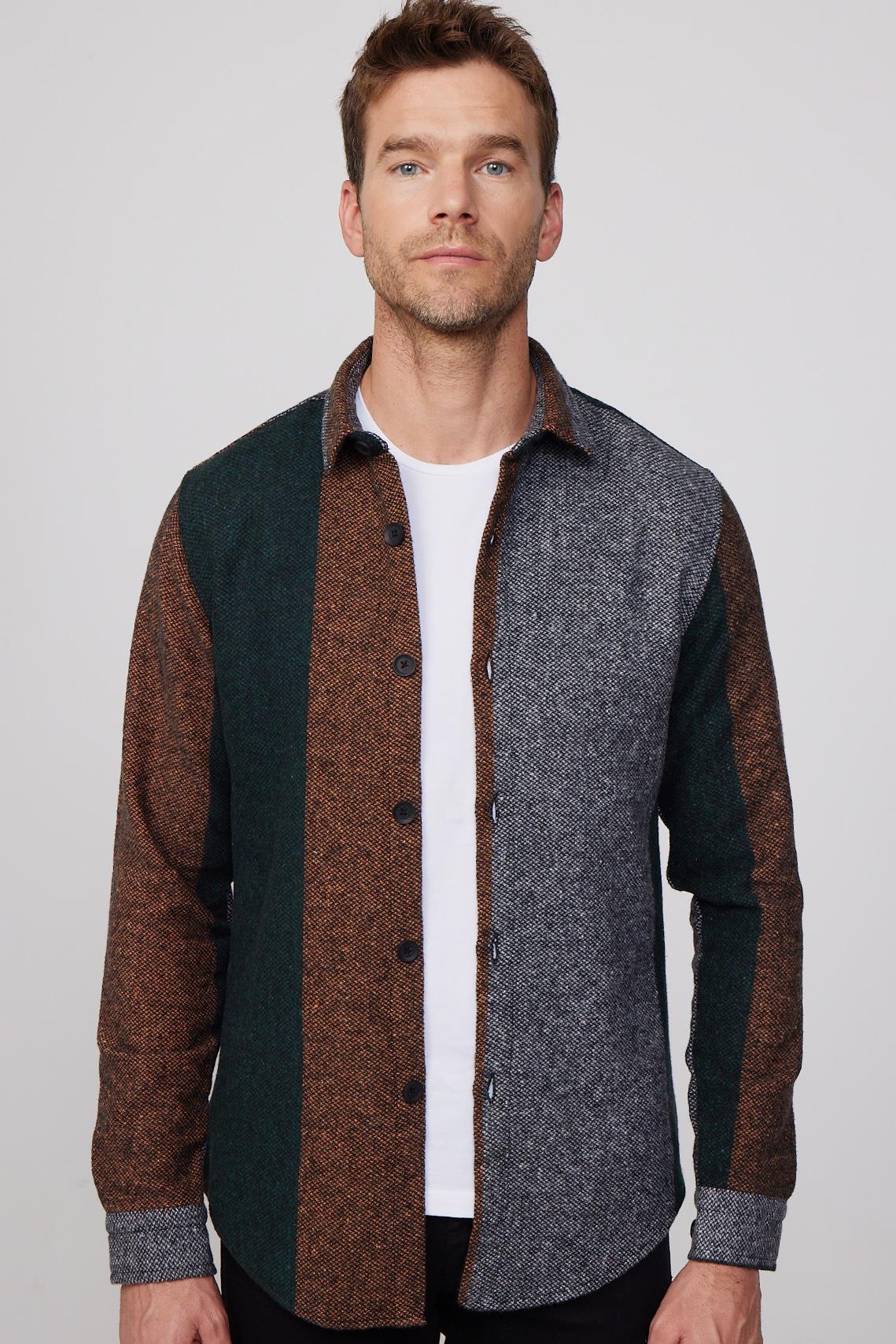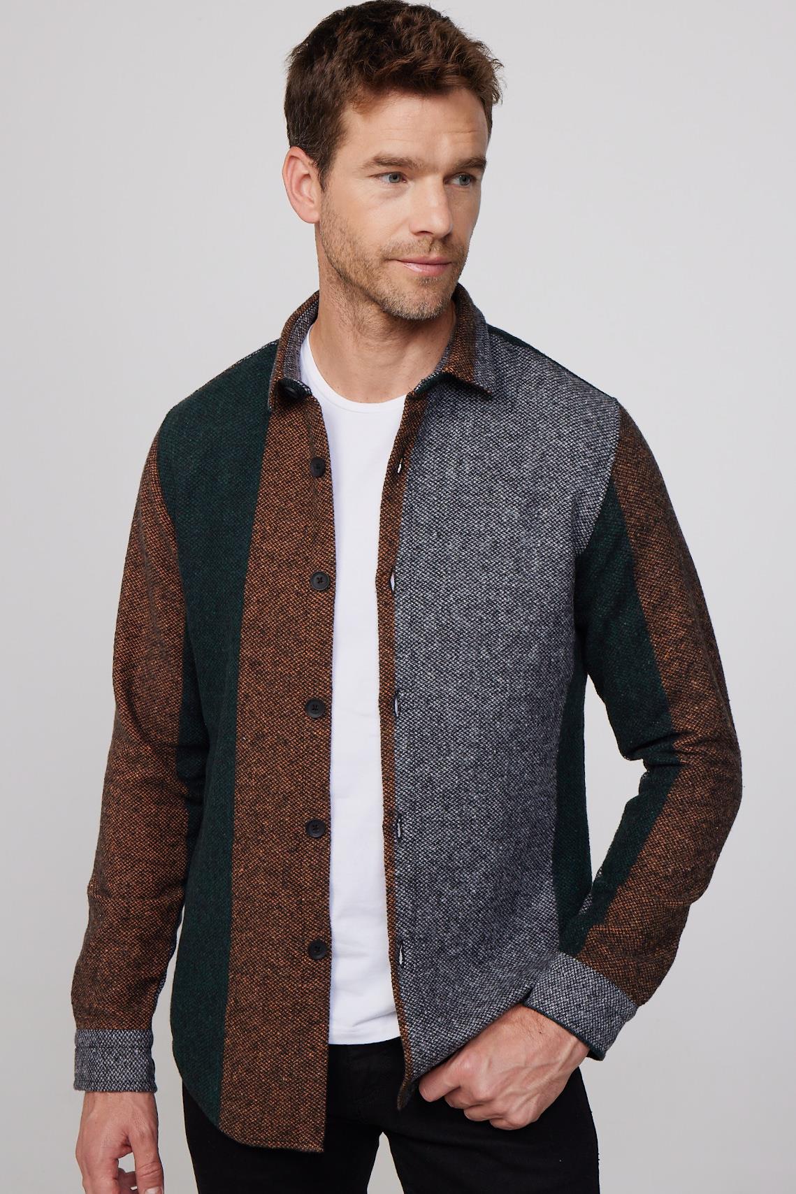 Erkek Slim Fit Dar Kesim Uzun Kollu Çizgili Kışlık Oduncu Gömlek (DR240006-763)