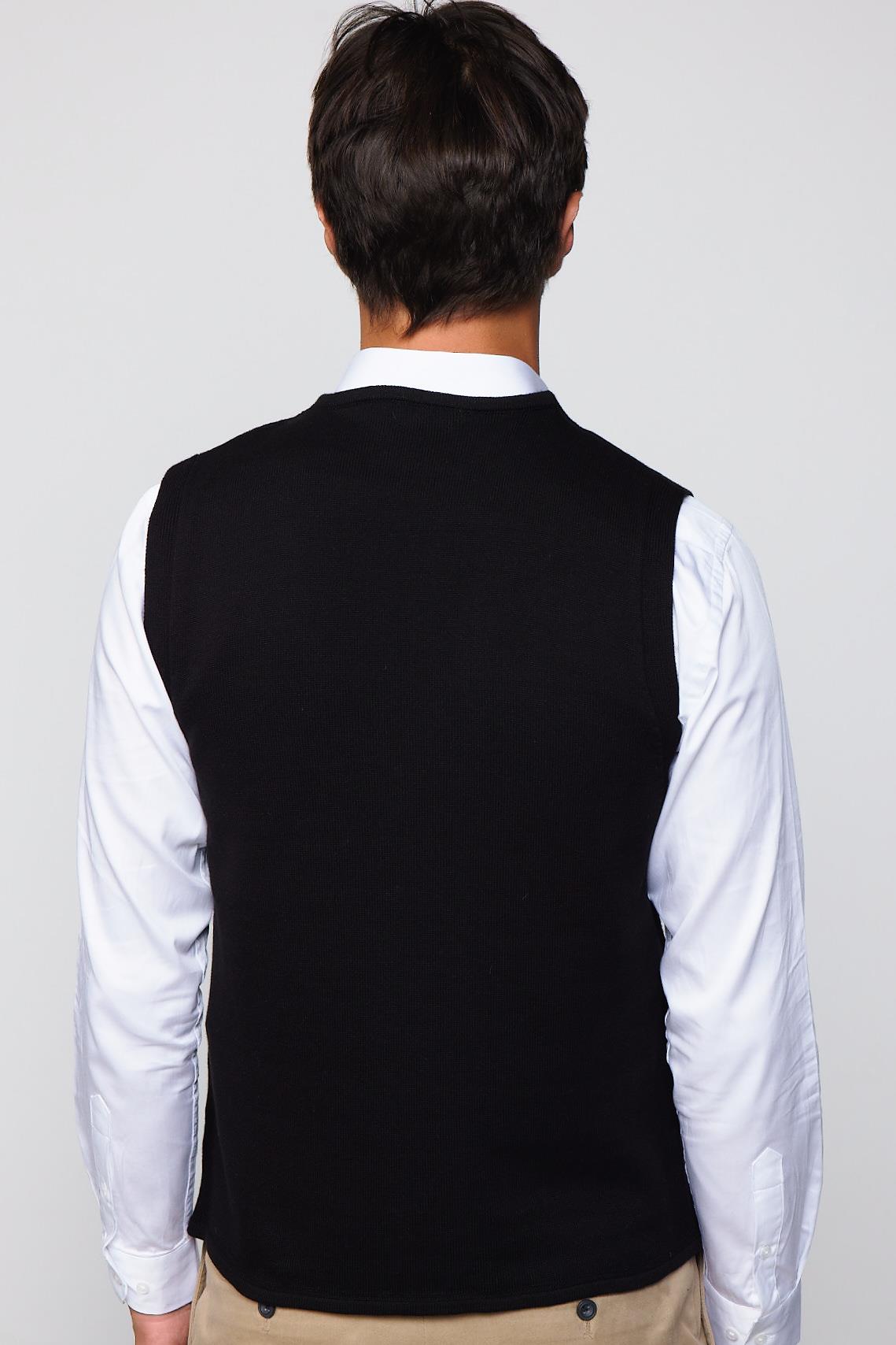 Slim Fit Kare Desenli Siyah Erkek Yelek