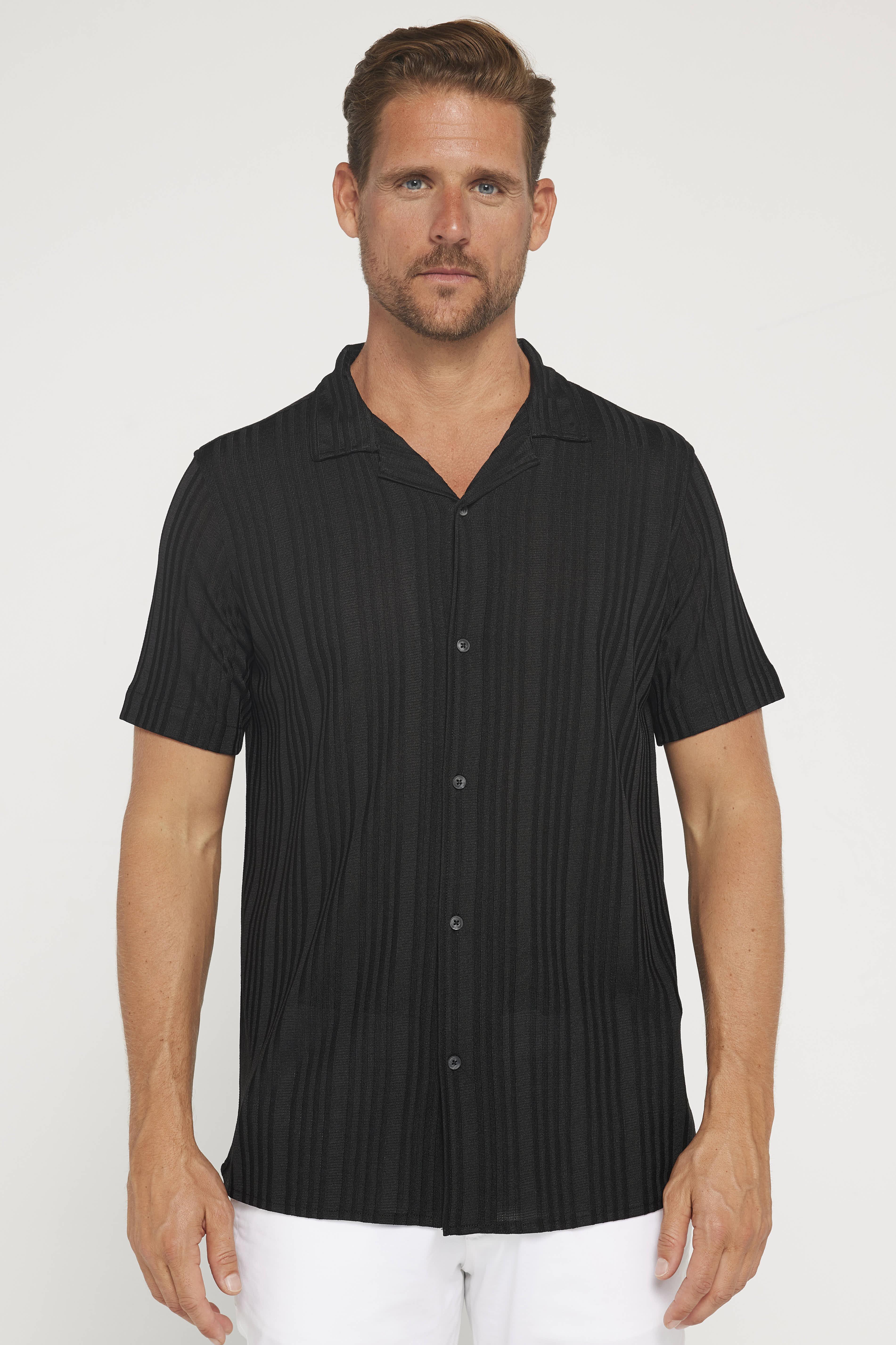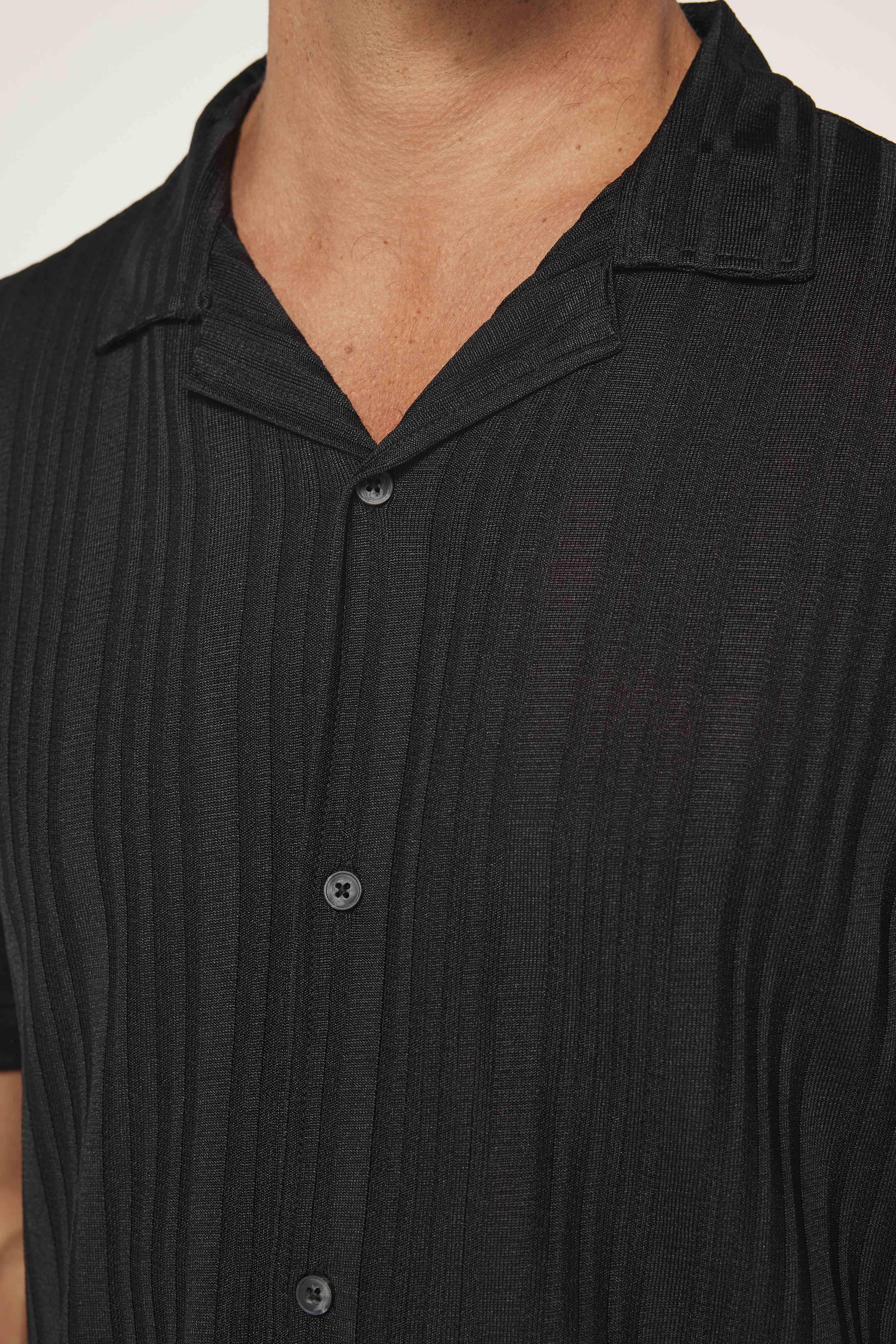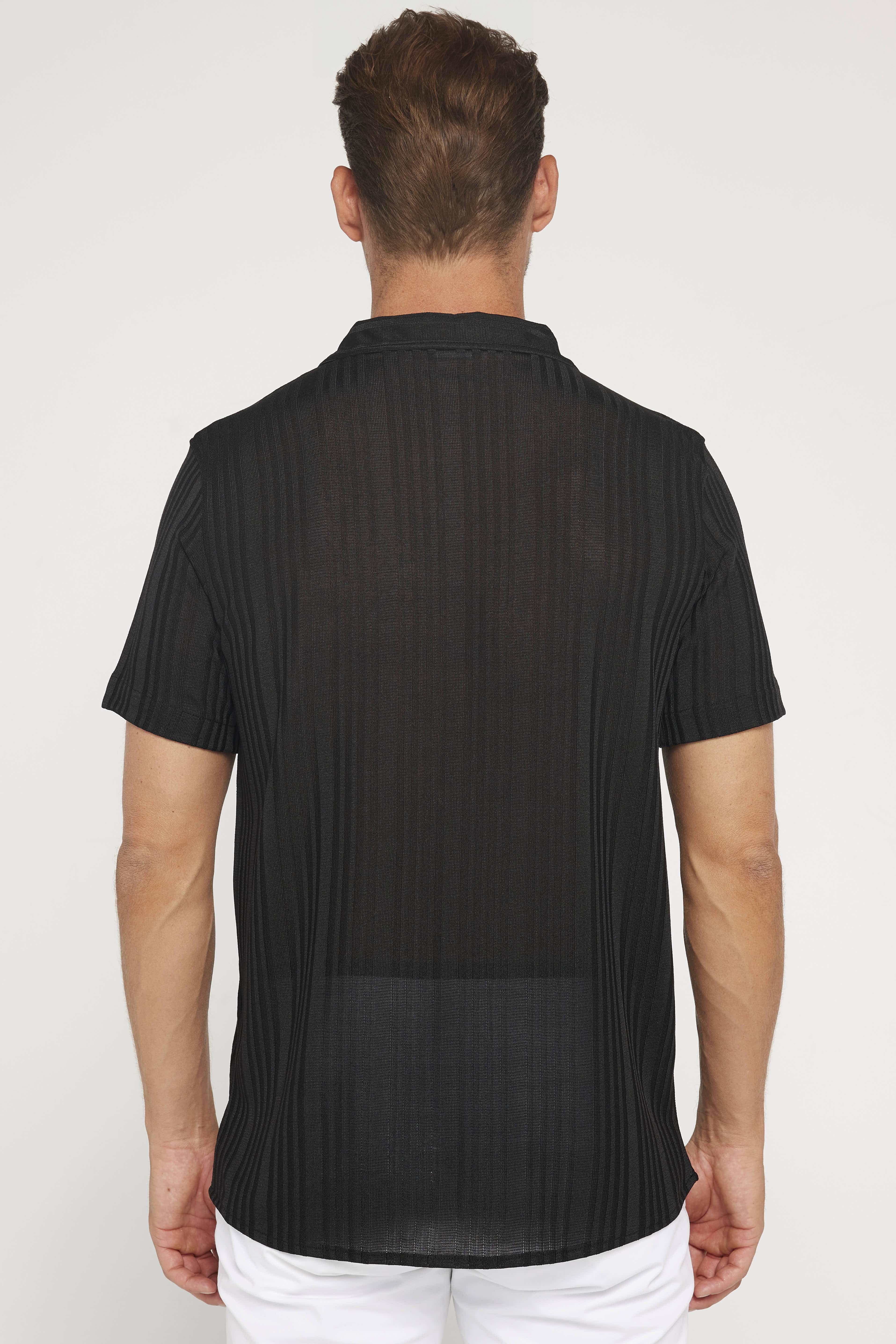 Erkek Slim Fit Dar Kesim Kısa Kollu Örme Kumaş Siyah Apaş Yaka Gömlek (DR240064-5204)