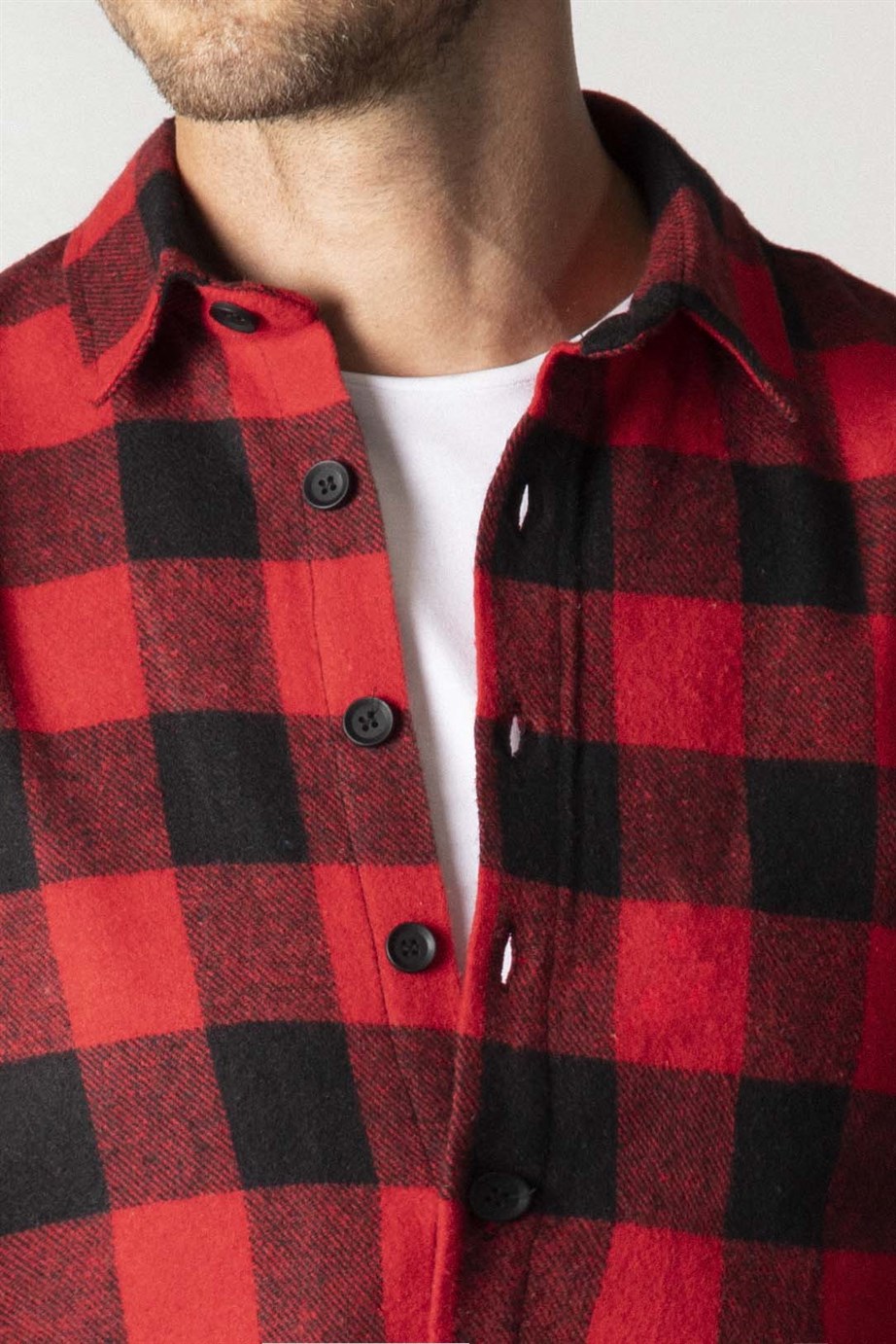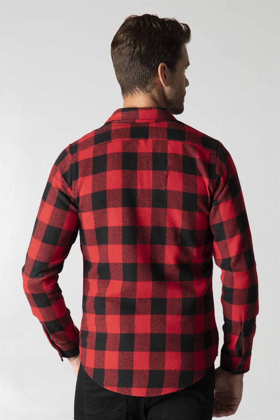 Slim Fit Uzun Kollu Kışlık Oduncu Kareli Erkek Kırmızı Gömlek