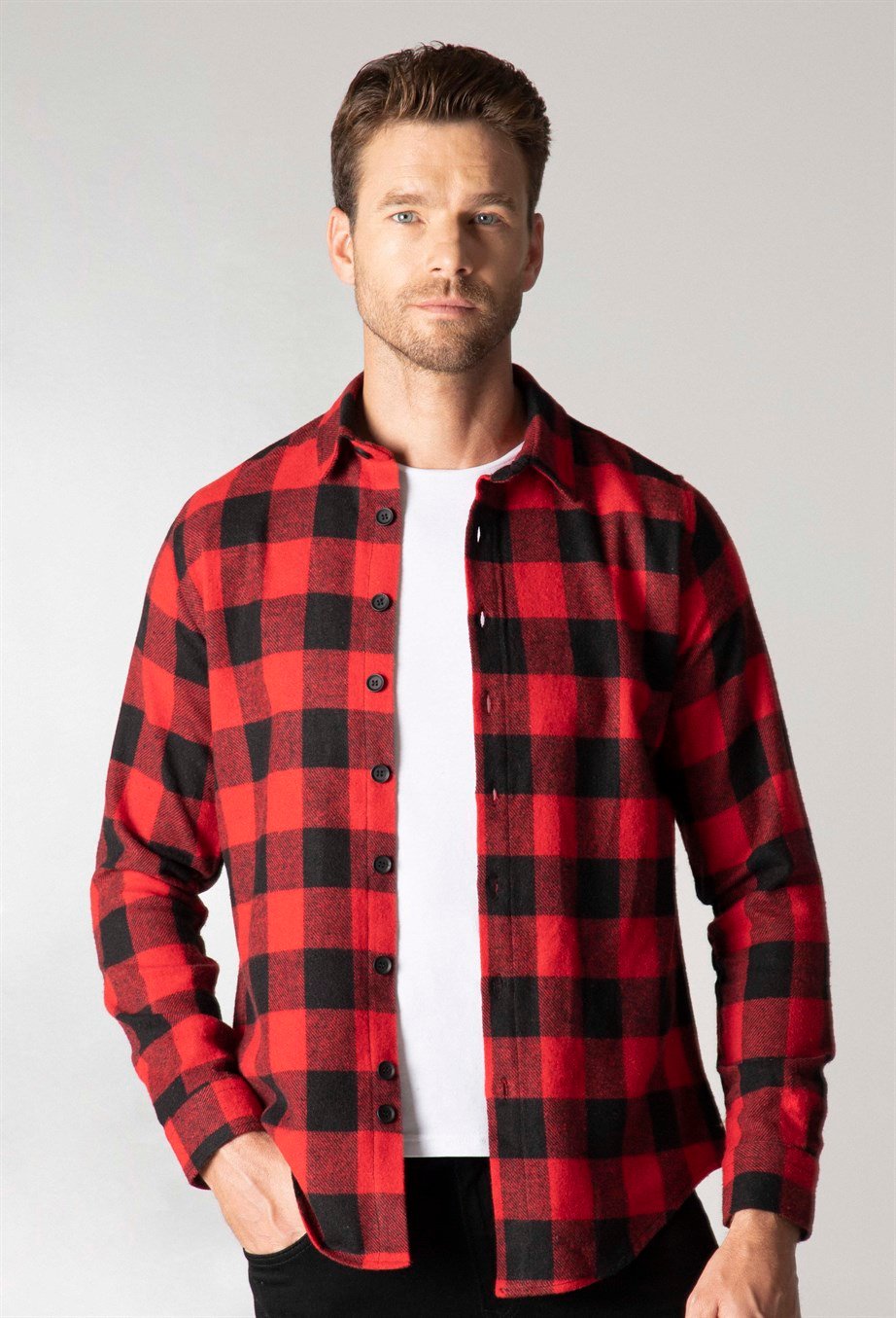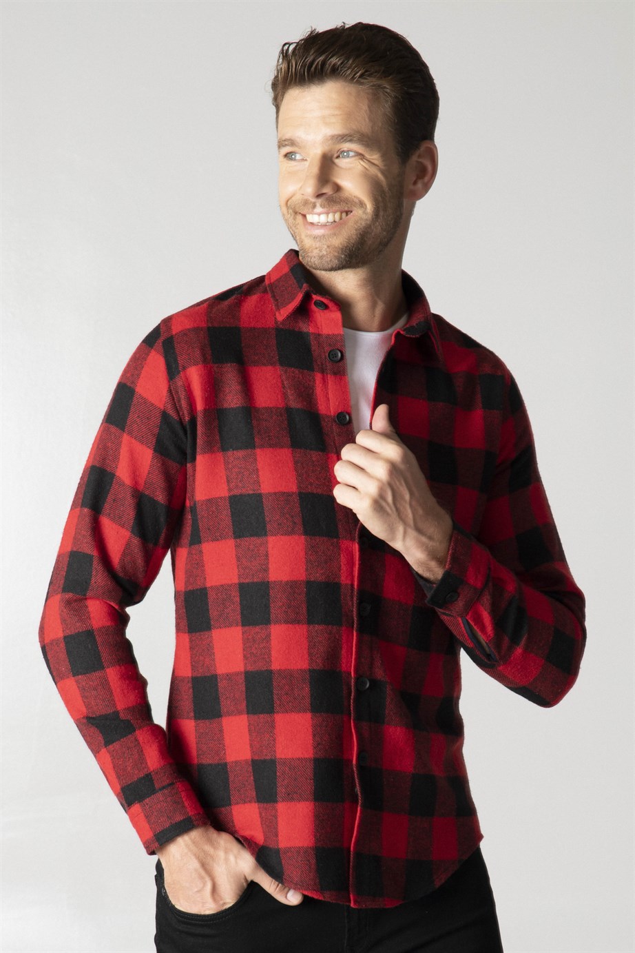 Slim Fit Uzun Kollu Kışlık Oduncu Kareli Erkek Kırmızı Gömlek (DR230009-400)