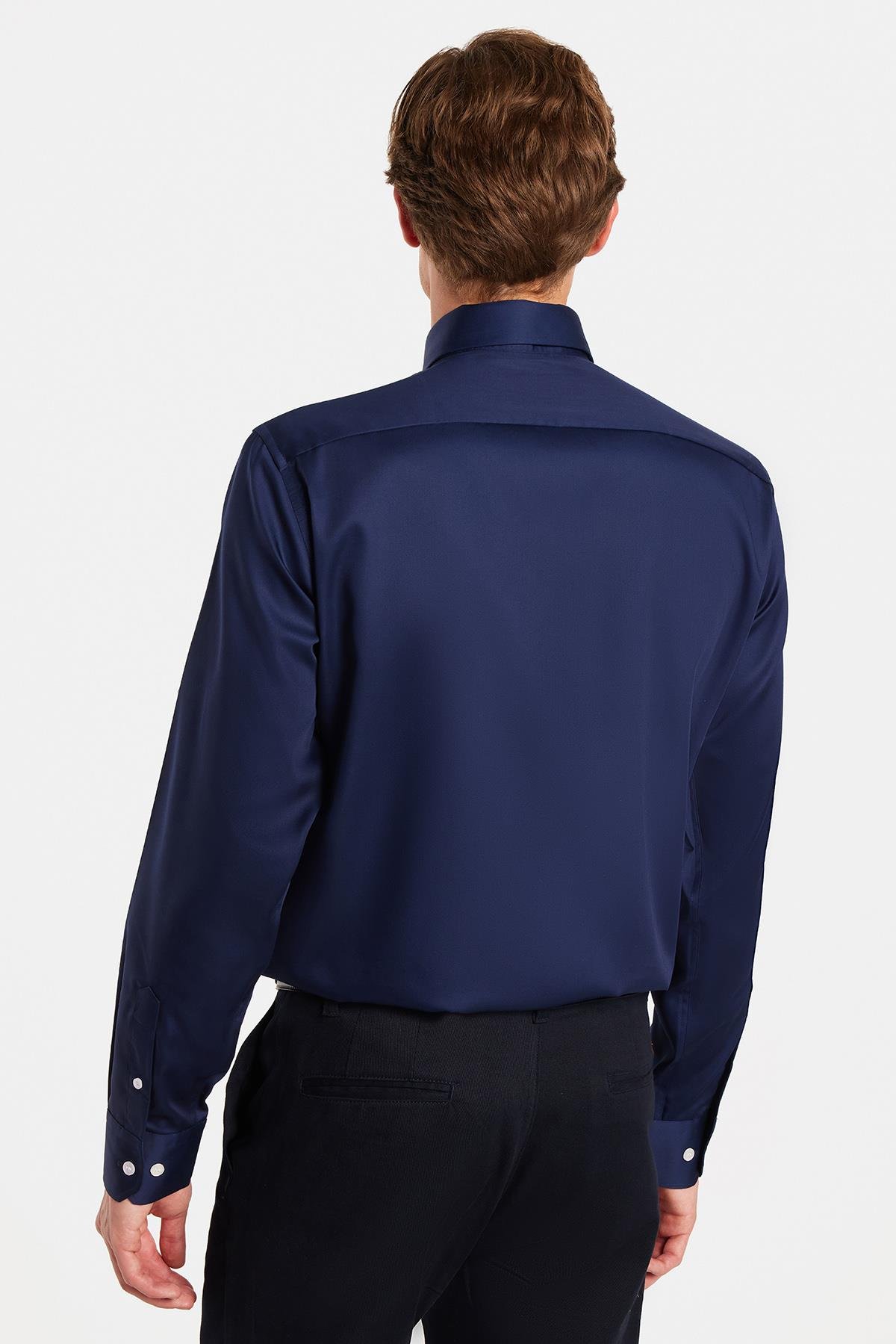 Slim Fit Lacivert Non-Iron %100 Pamuk Doğa Dostu Ekoteks Belgeli Ütü Gerektirmez Gömlek (DR240038-47)