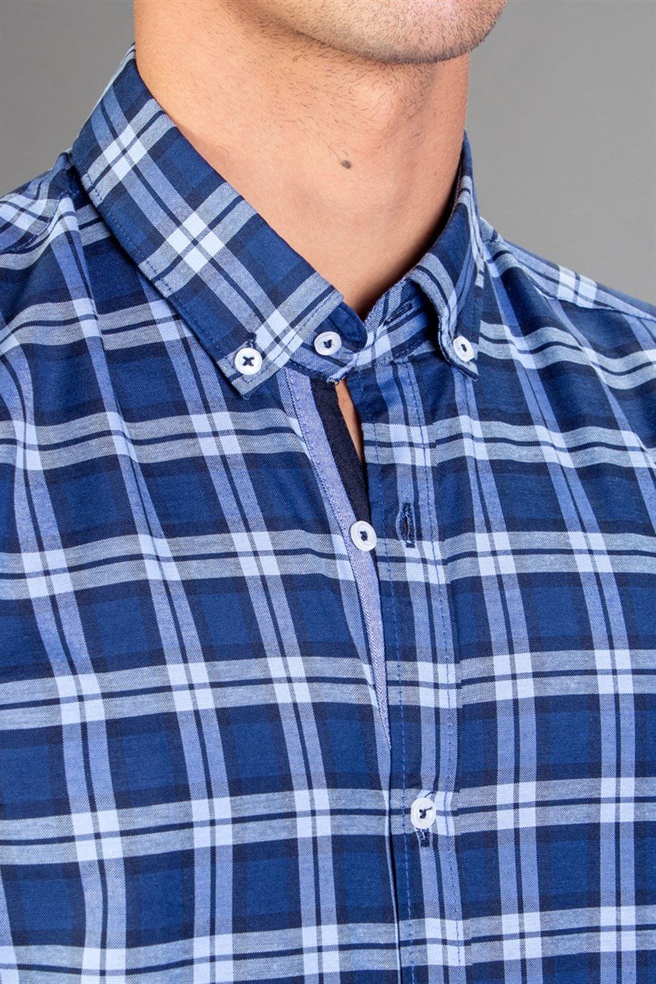 Slim Fit Uzun Kollu Düğmeli Yaka Kareli Pamuklu Kolay Ütü Erkek Gömlek (DR190028-142)