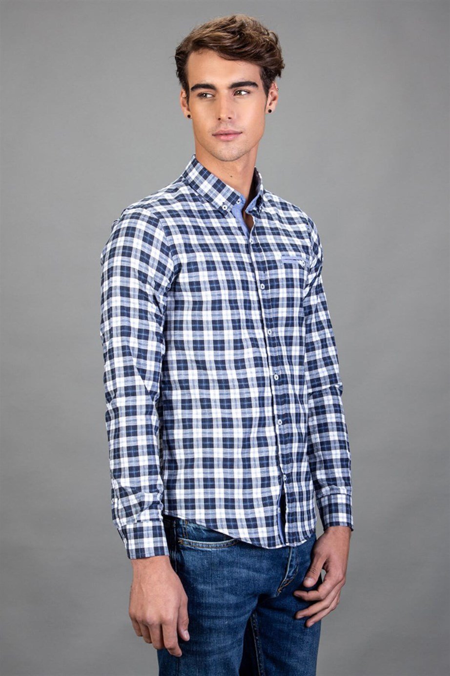 Slim Fit Uzun Kollu Kareli Pamuklu Kolay Ütü Erkek Renkli Beyaz Gömlek