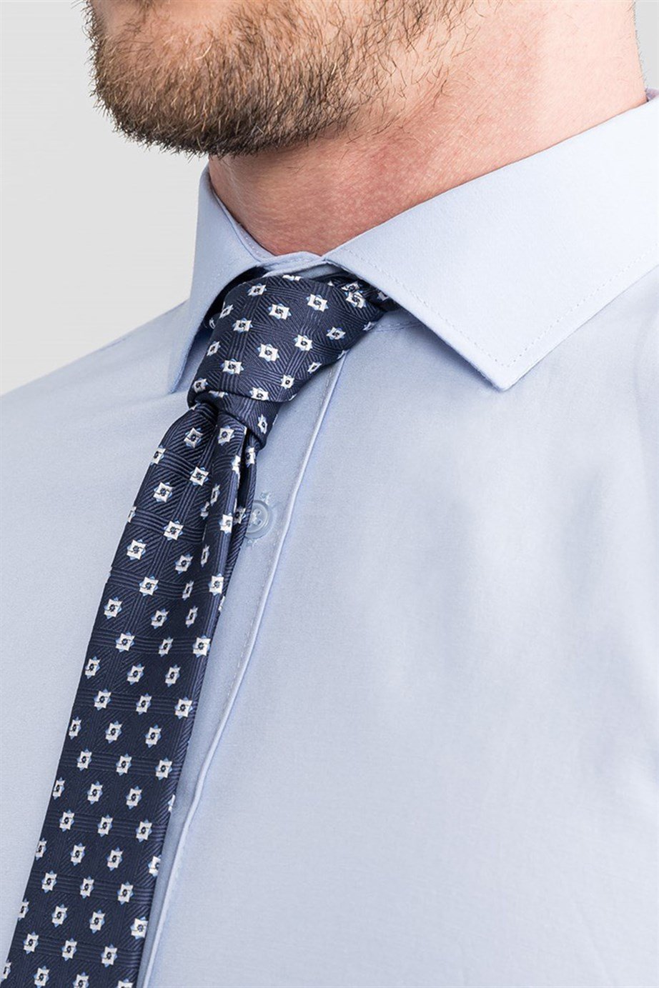 Slim Fit Pamuklu Kolay Ütü Erkek Mavi Gömlek
