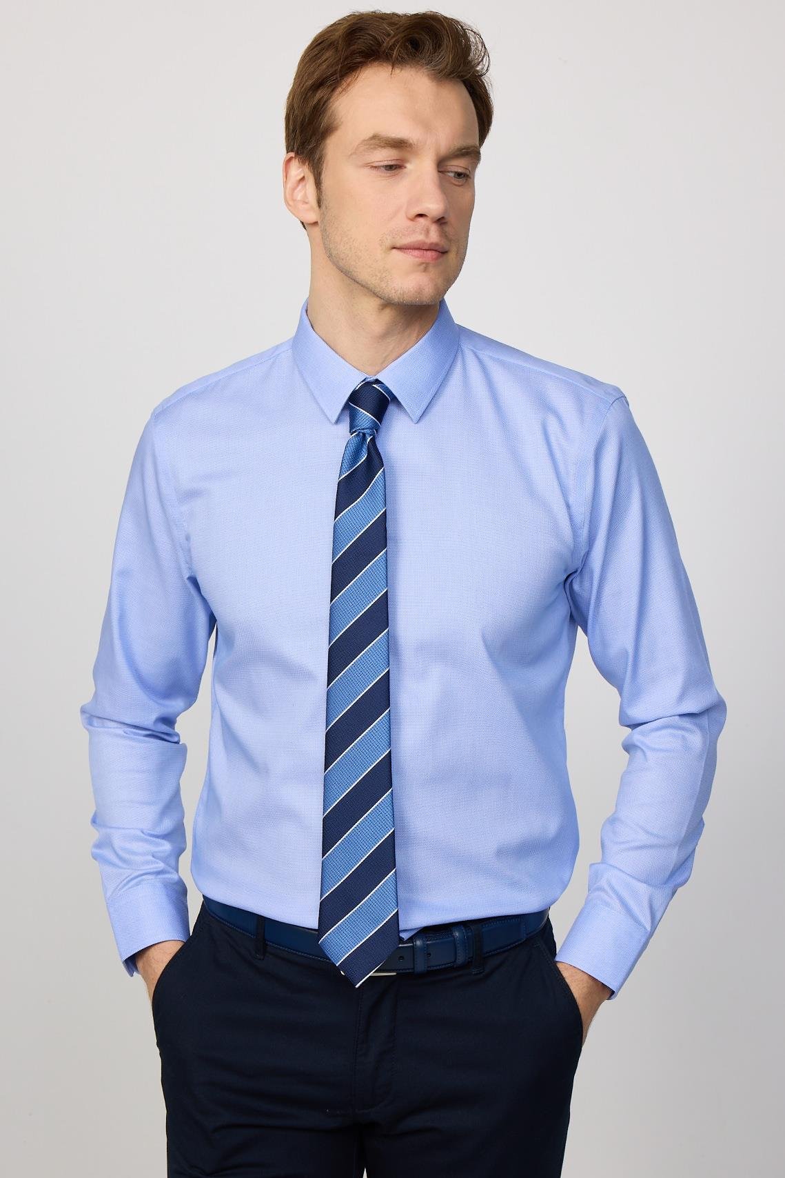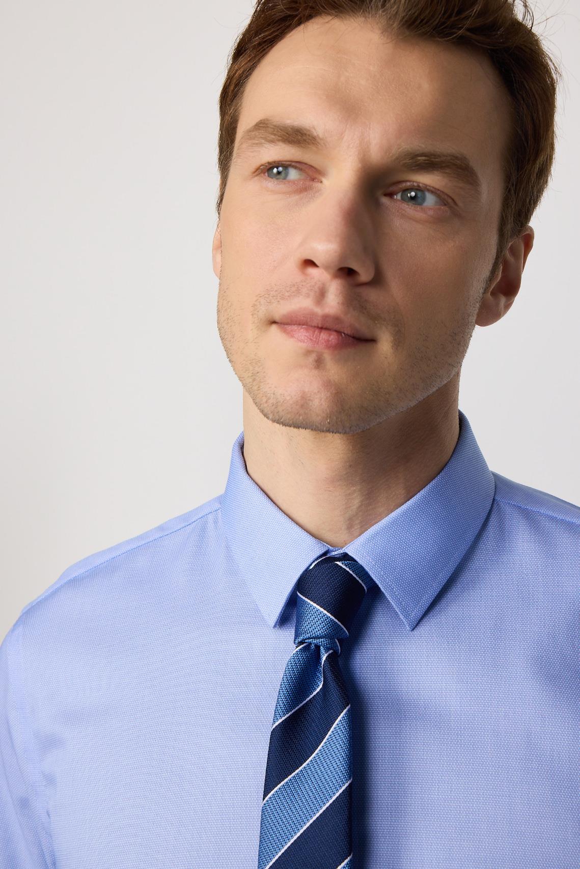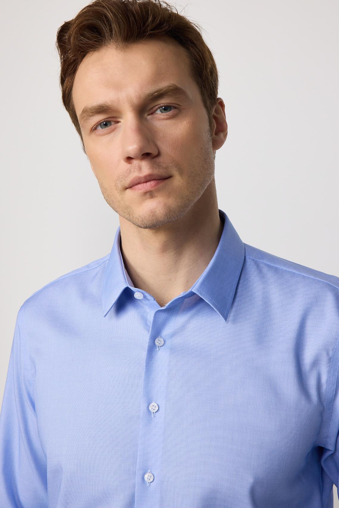 Slim Fit Mavi Non-Iron %100 Pamuk Doğa Dostu Ekoteks Belgeli Ütü Gerektirmez Gömlek