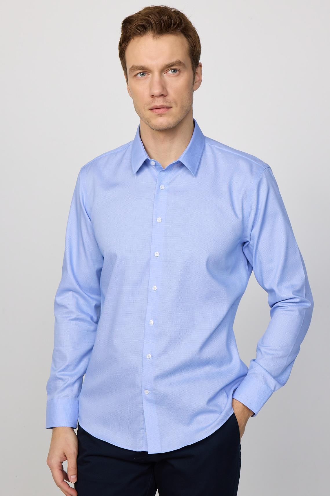 Slim Fit Mavi Non-Iron %100 Pamuk Doğa Dostu Ekoteks Belgeli Ütü Gerektirmez Gömlek (DR240054-22)