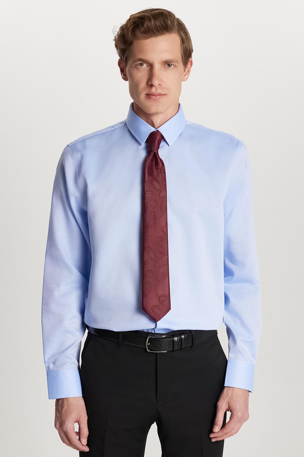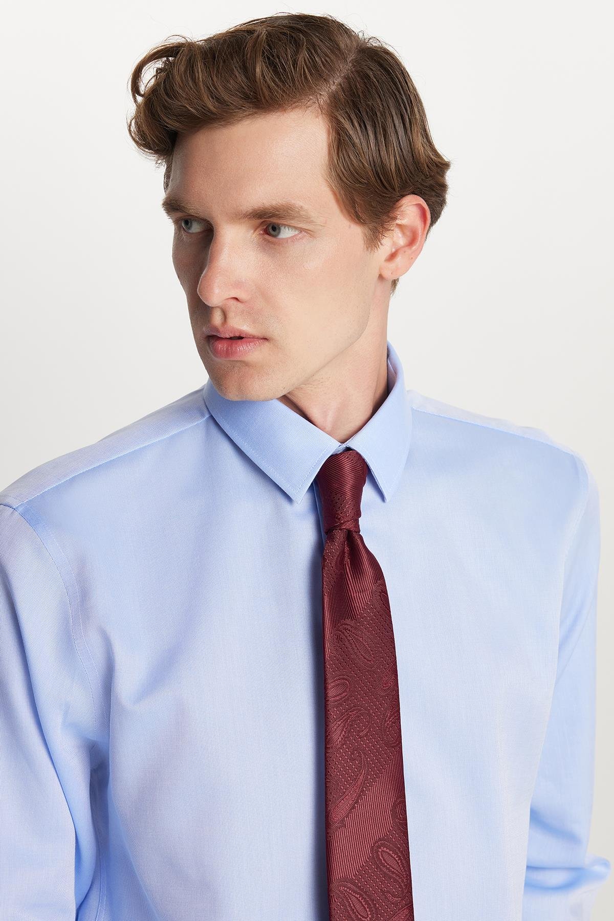 Slim Fit Mavi Non-Iron %100 Pamuk Doğa Dostu Ekoteks Belgeli Ütü Gerektirmez Gömlek (DR240054-505)