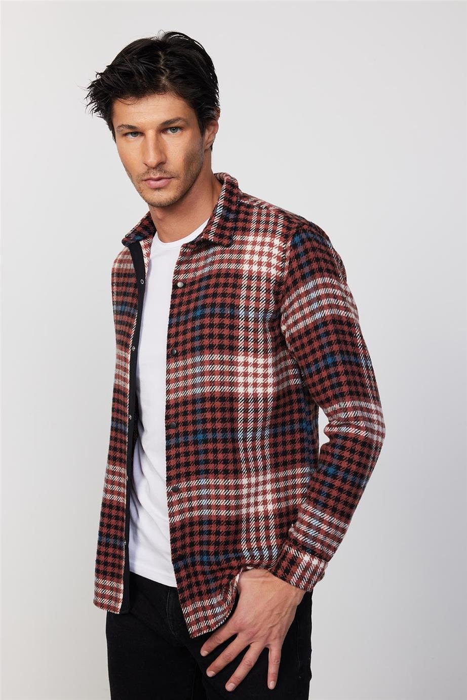 Erkek Slim Fit Dar Kesim Uzun Kollu Kareli Kışlık Oduncu Gömlek (DR240005-730)