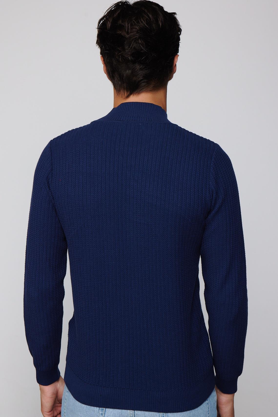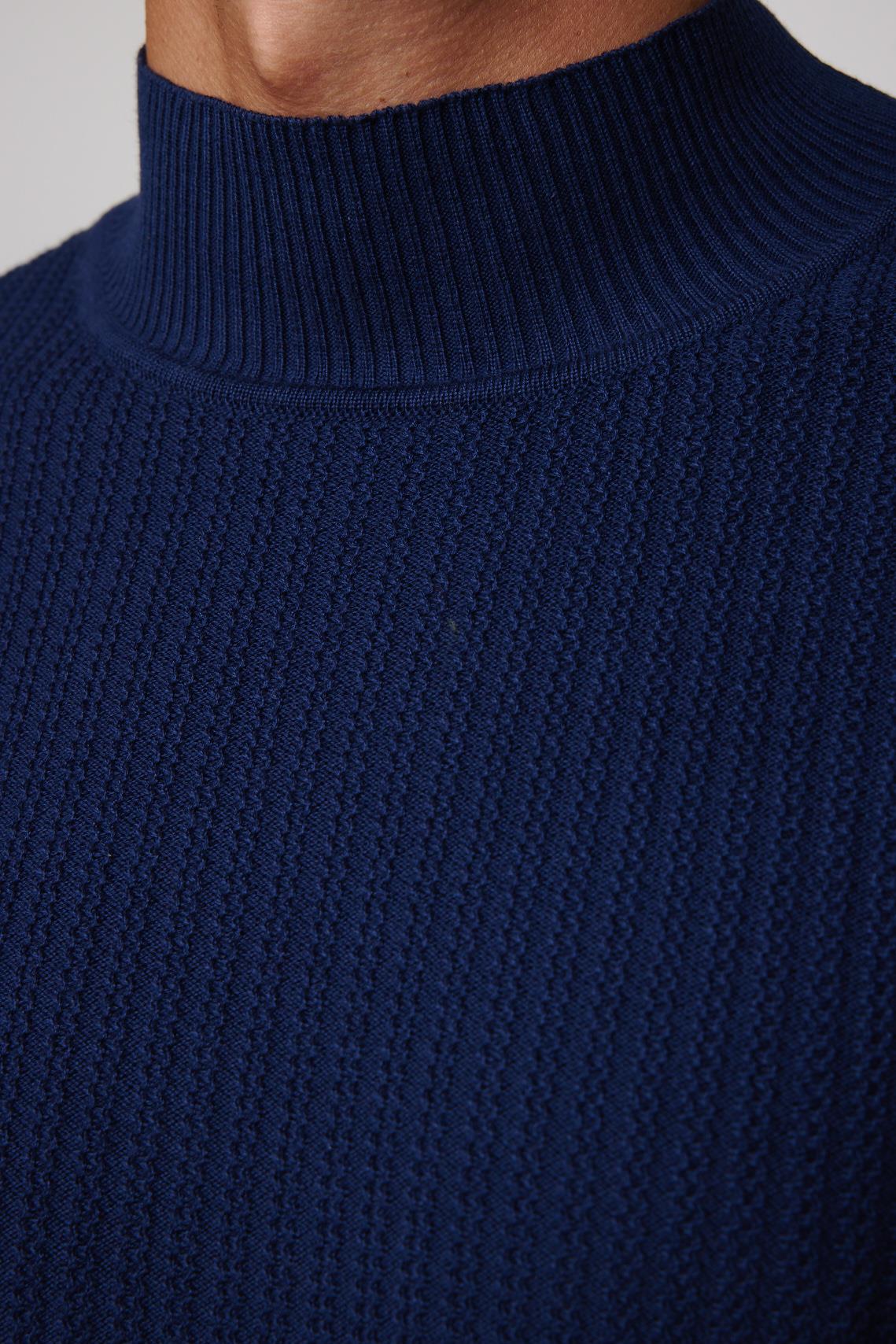 Slim Fit Yarım Balıkçı Yaka Tüylenme Yapmayan Lacivert Erkek Triko Kazak