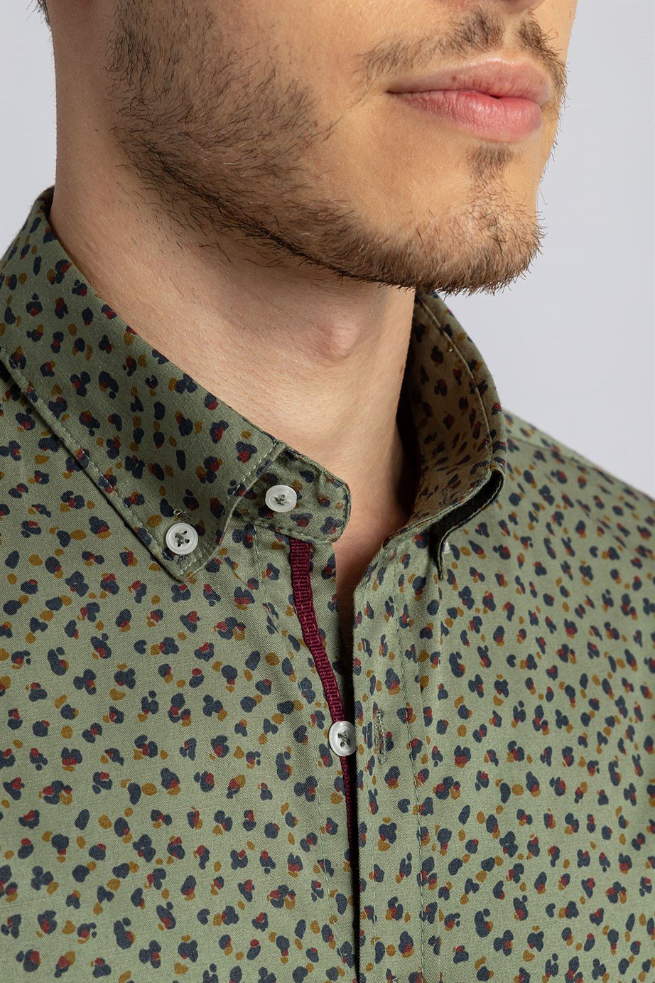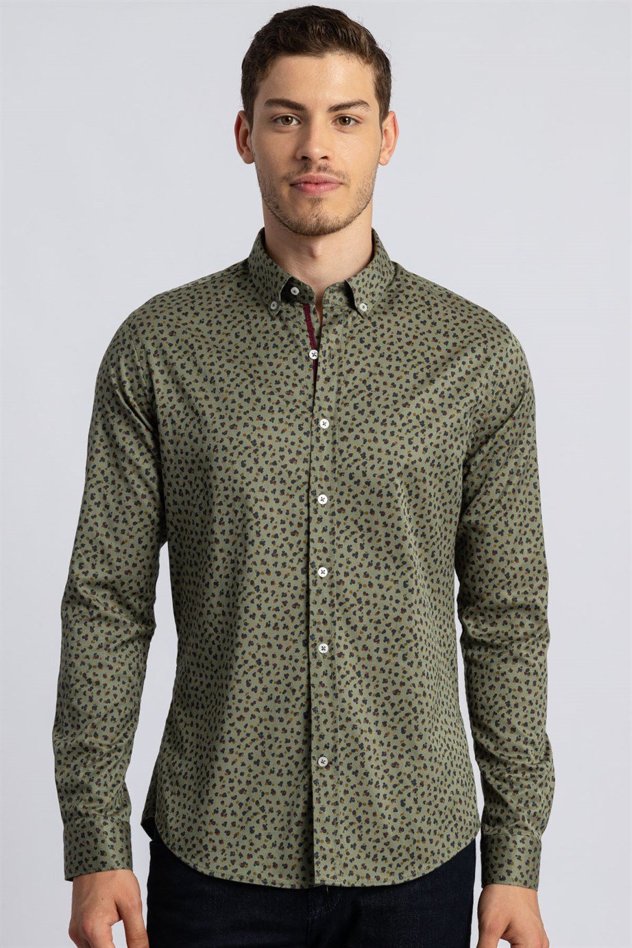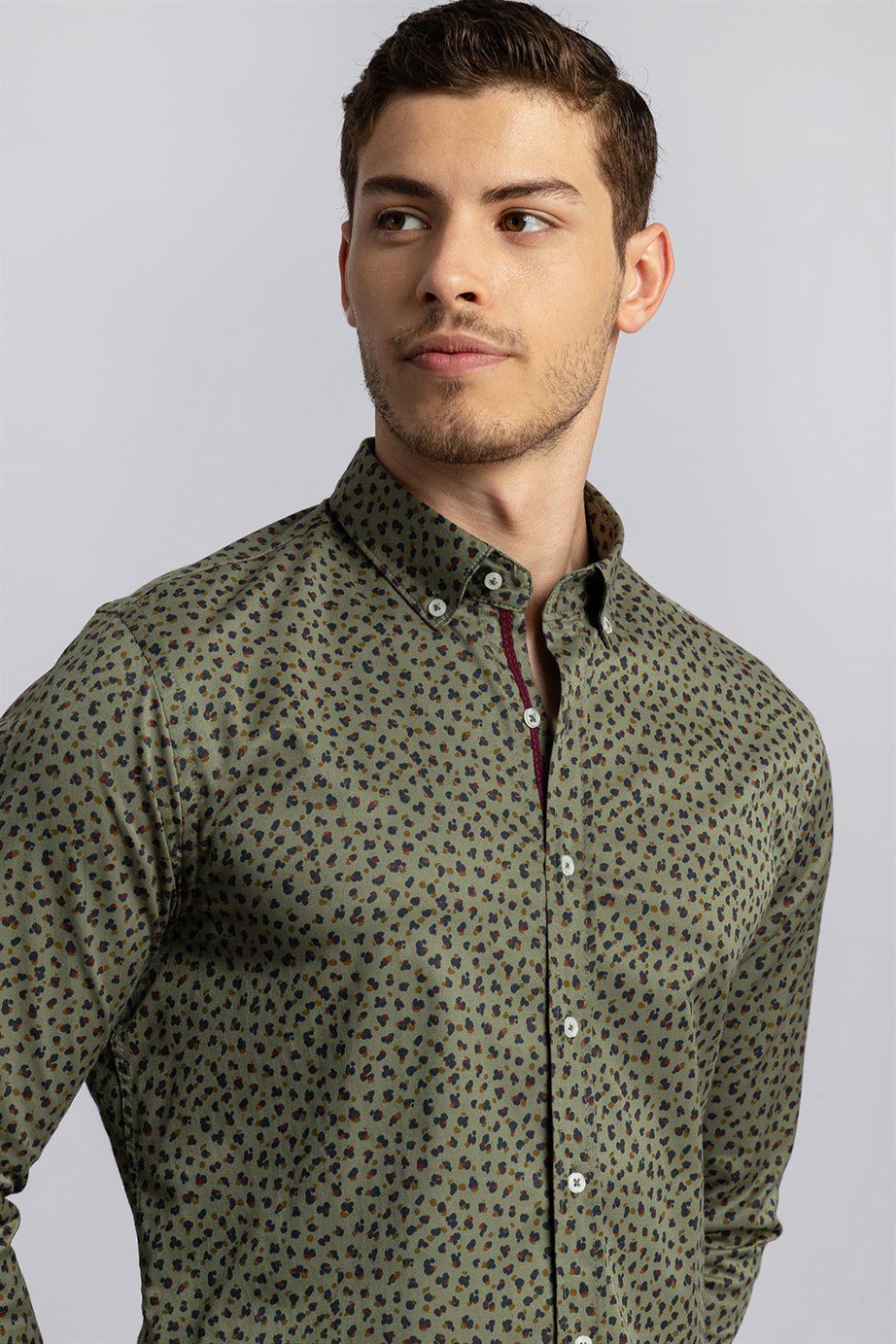 Süper Slim Fit Uzun Kollu Düğmeli Yaka Pamuklu Likralı Desenli Spor Erkek Gömlek (SSF21002-371)