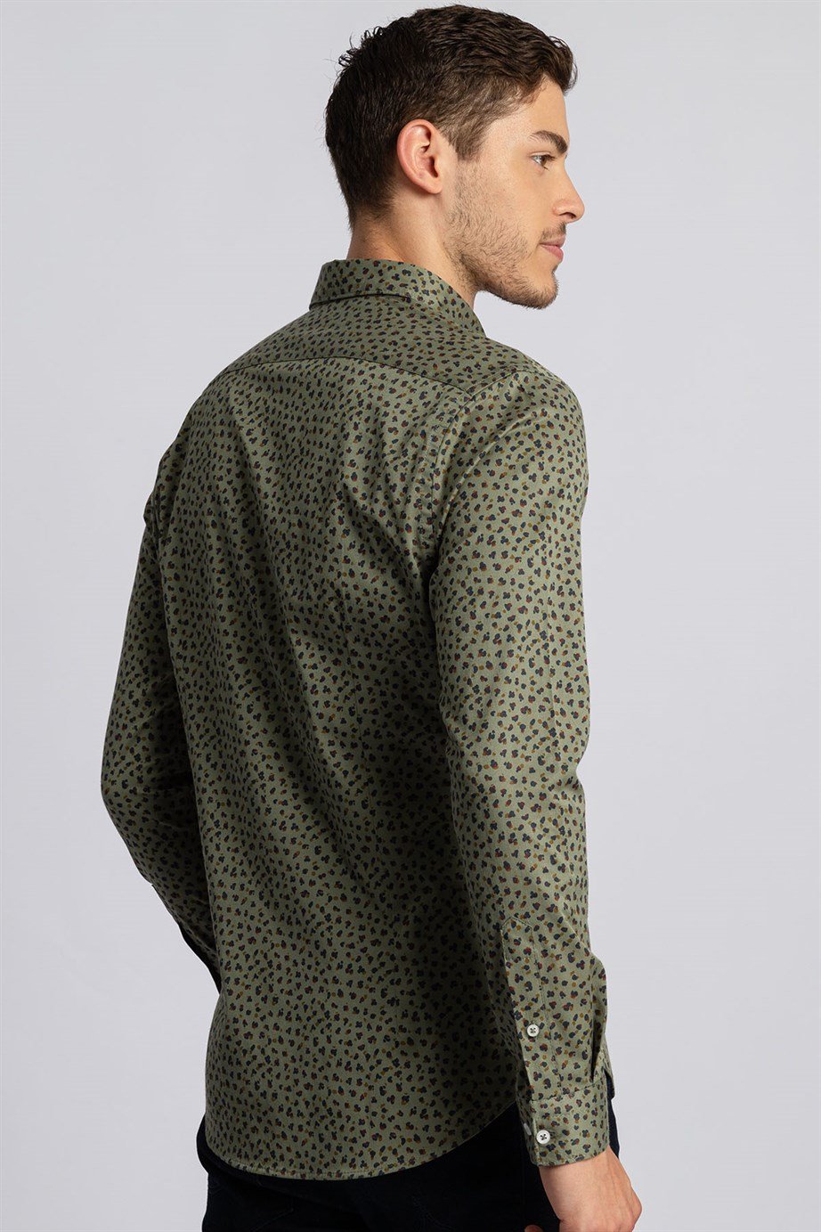 Süper Slim Fit Uzun Kollu Düğmeli Yaka Pamuklu Likralı Desenli Spor Erkek Gömlek