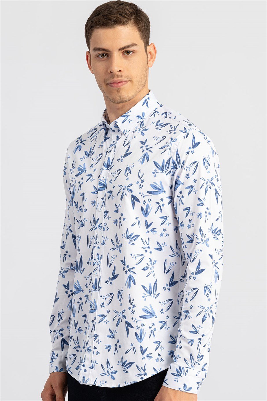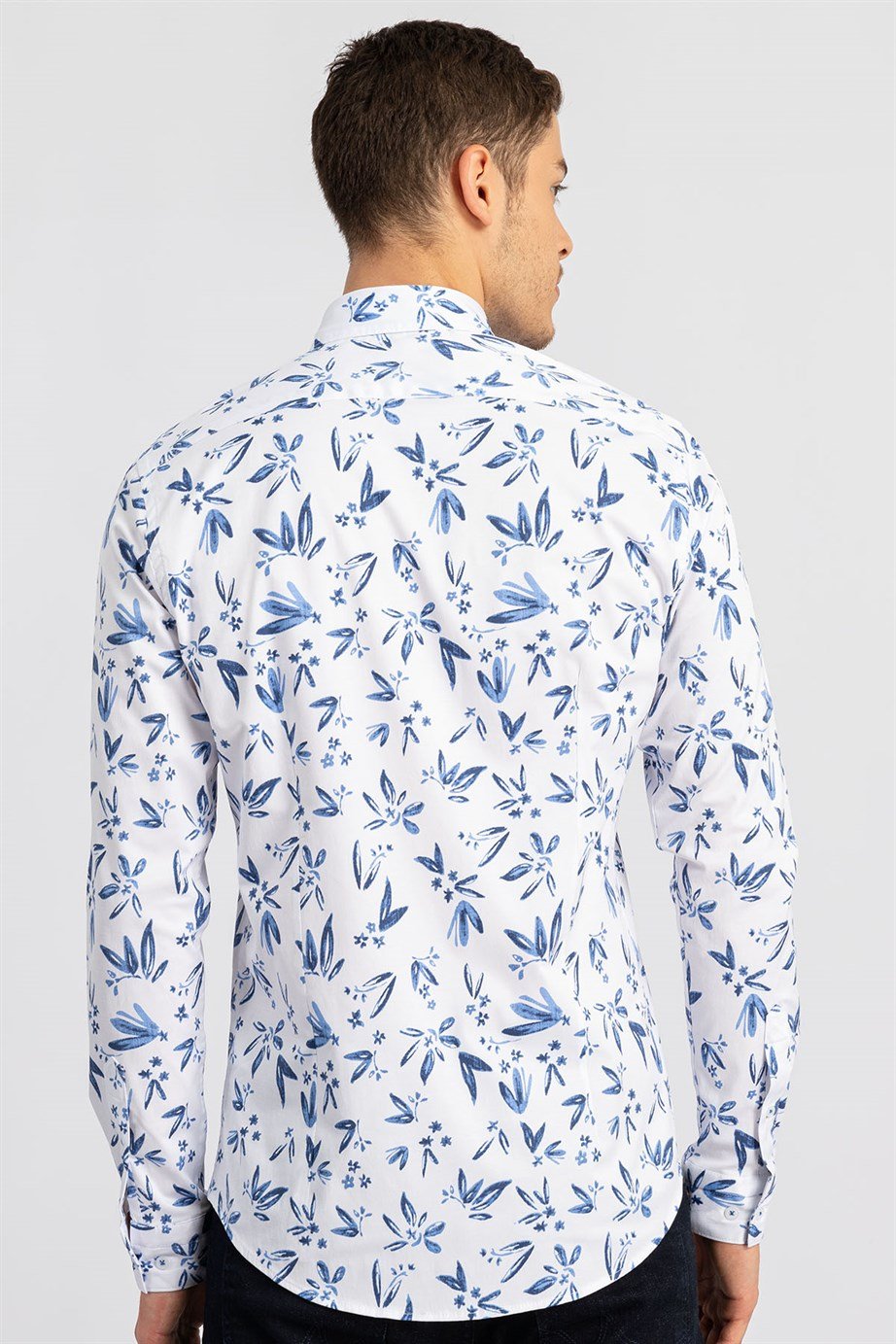 Super Slim Fit Uzun Kollu Likralı Desenli Spor Erkek Beyaz Gömlek