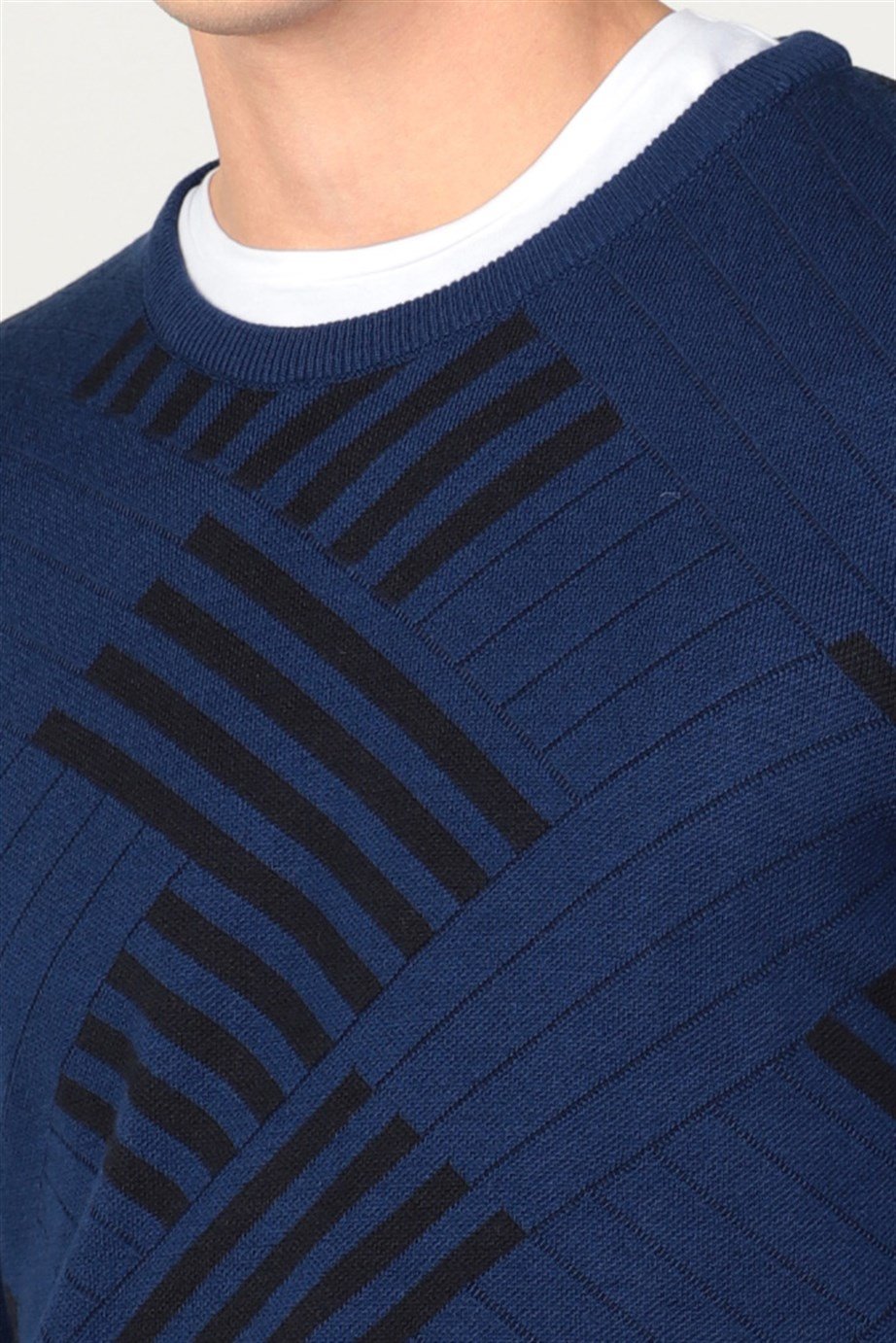 Erkek Slim Fit Bisiklet Yaka Desenli Lacivert Triko Kazak