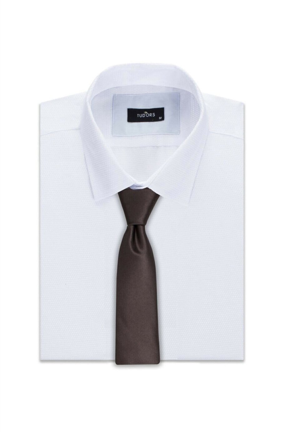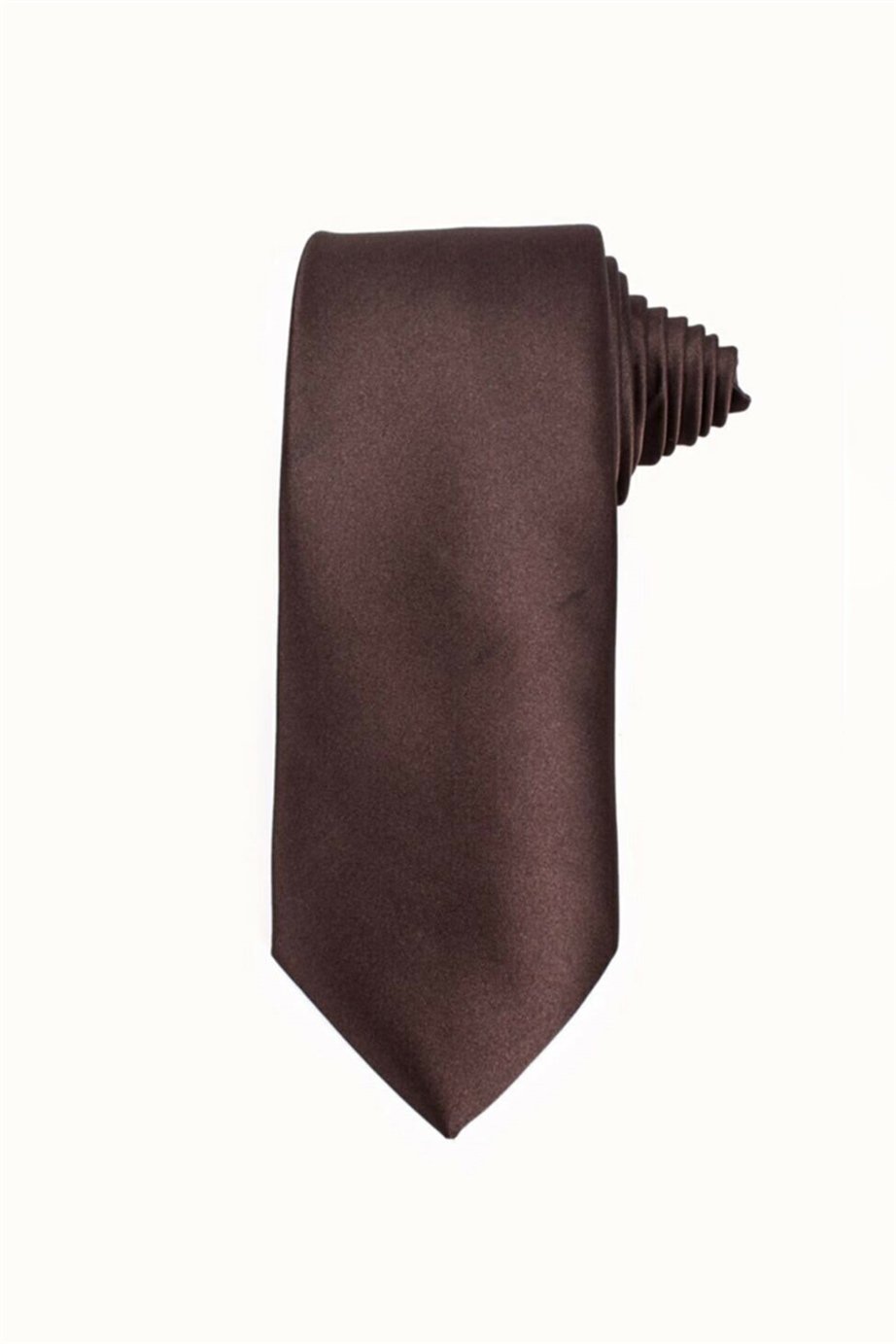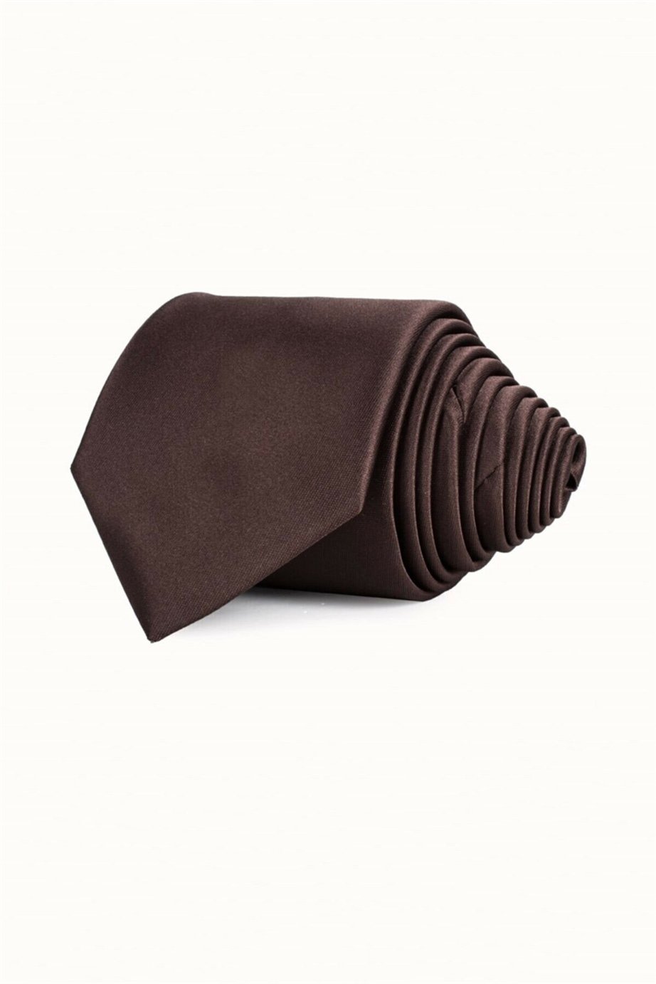 Düz Klasik Cep Mendilli Kahverengi Erkek Kravat