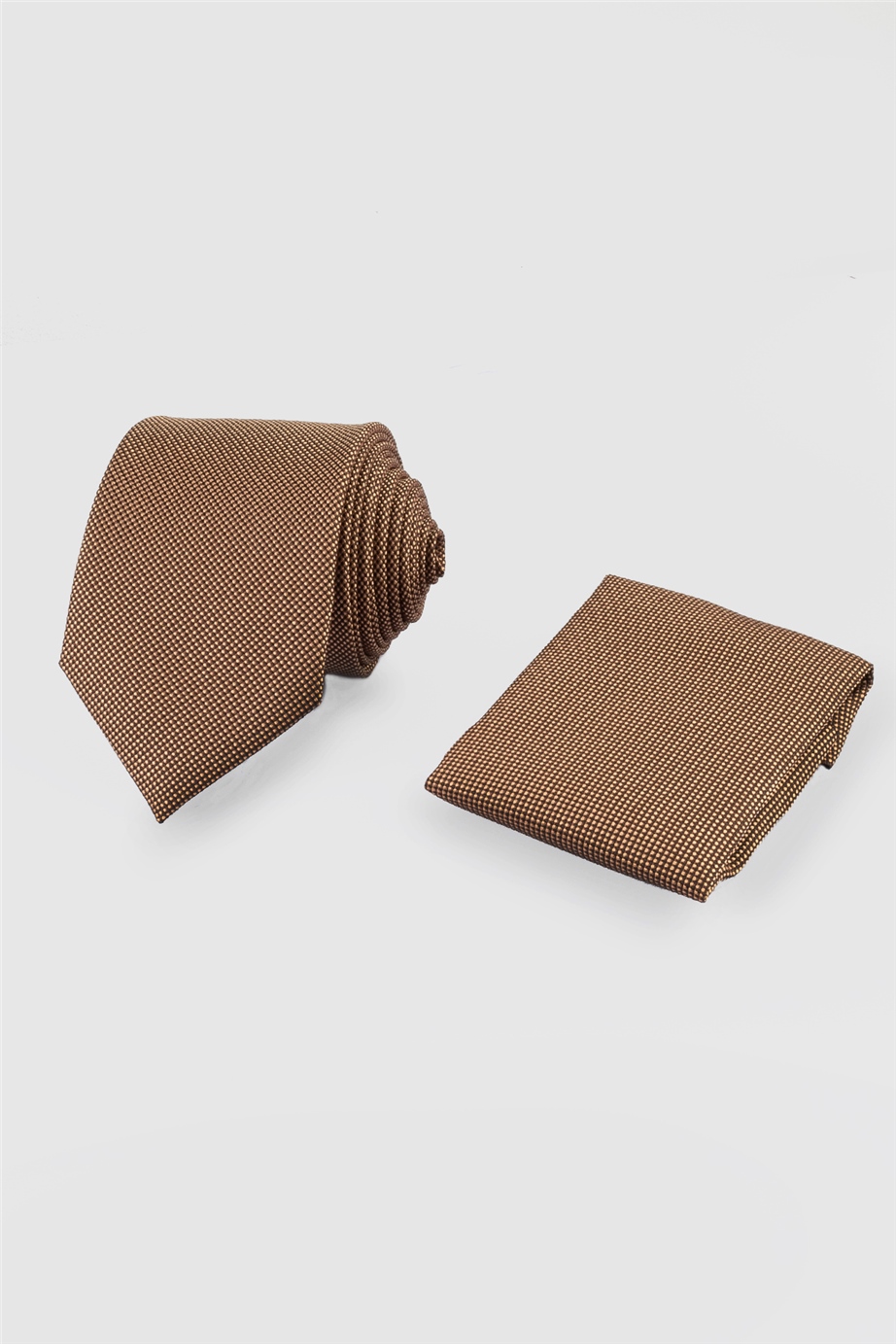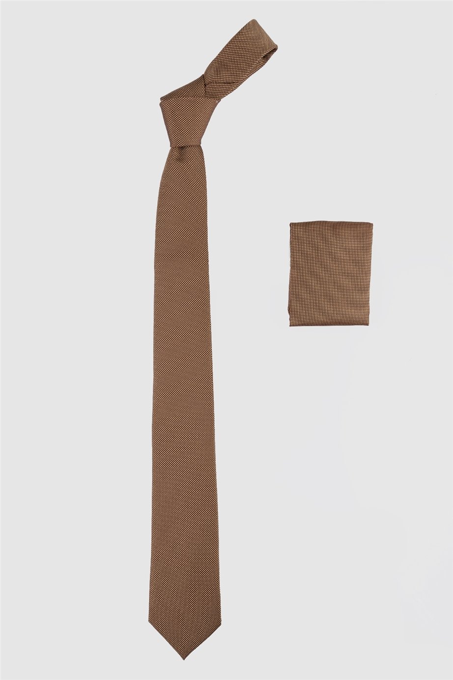 Düz Cep Mendilli Kahverengi Erkek Kravat (KR210002-10006)