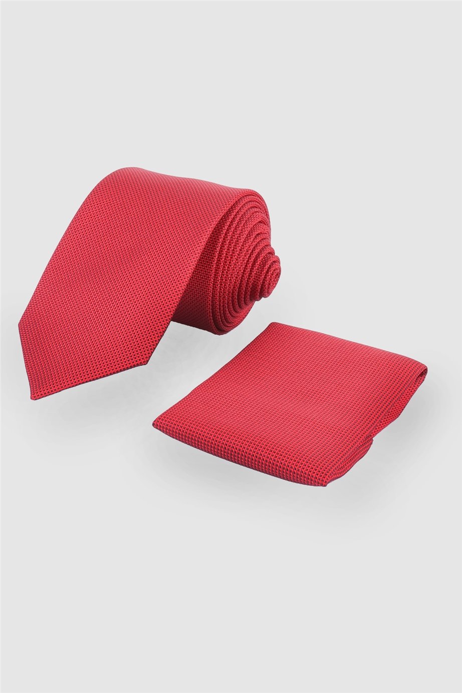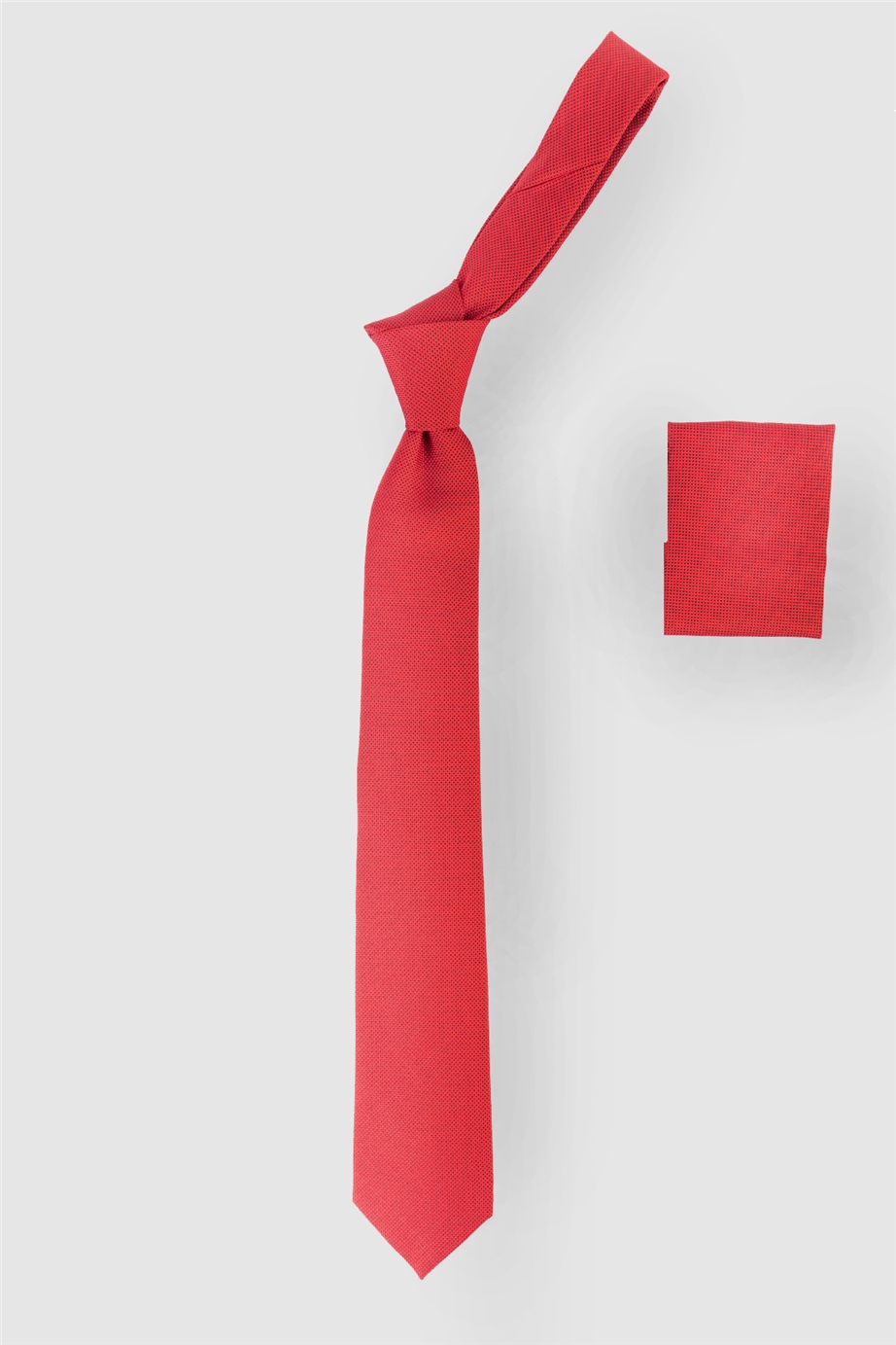 Düz Cep Mendilli Kırmızı Erkek Kravat (KR210002-10014)