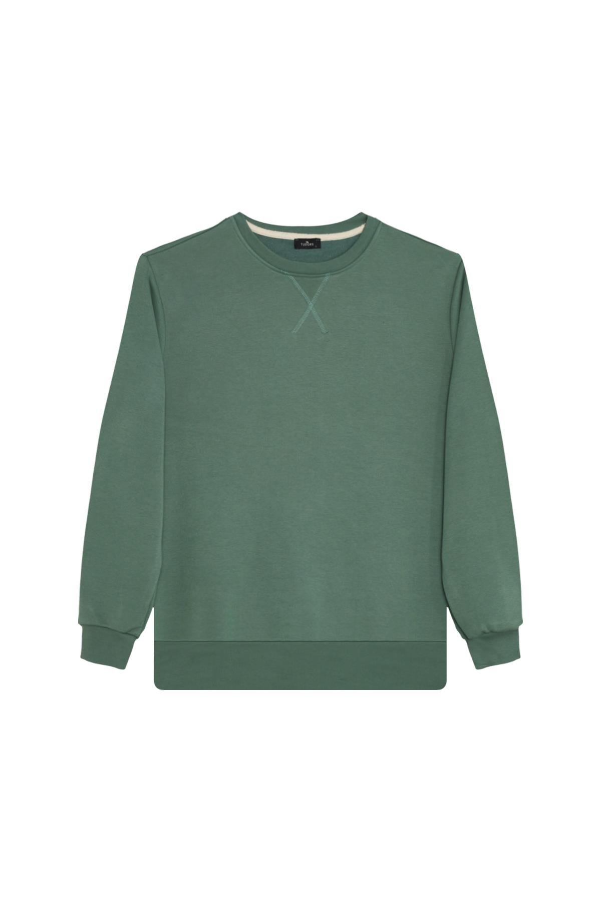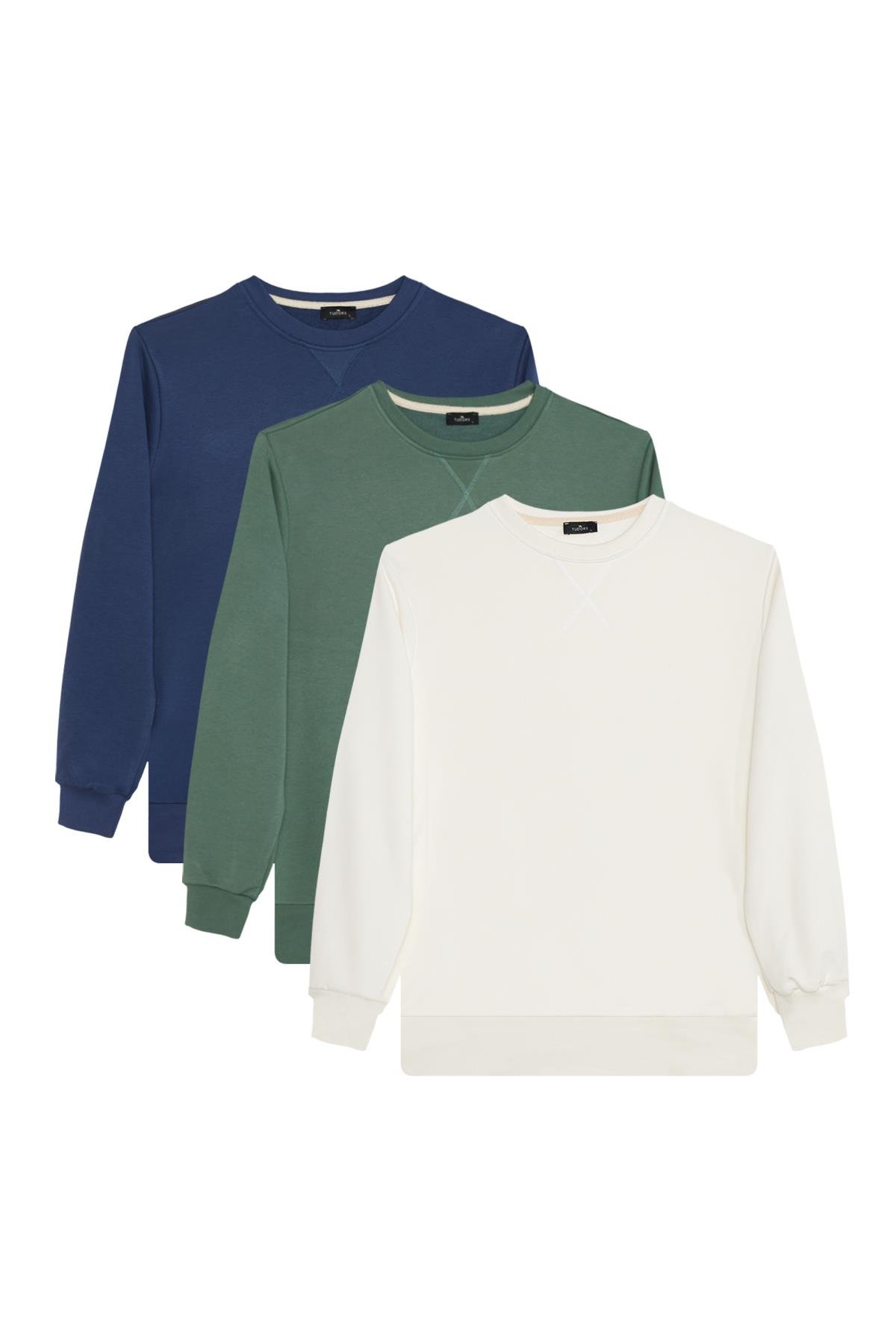 Unisex 3'lü Paket Beyaz-Yeşil-Mavi Relax Fit %100 Pamuk Bisiklet Yaka Sweatshirt