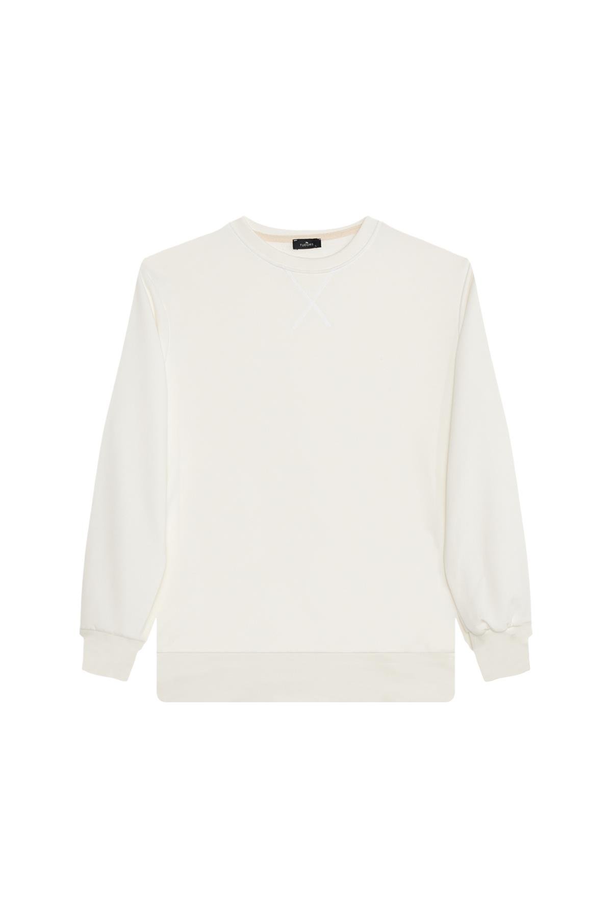 Unisex 3'lü Paket Beyaz-Yeşil-Mavi Relax Fit %100 Pamuk Bisiklet Yaka Sweatshirt (SW250040-4500)