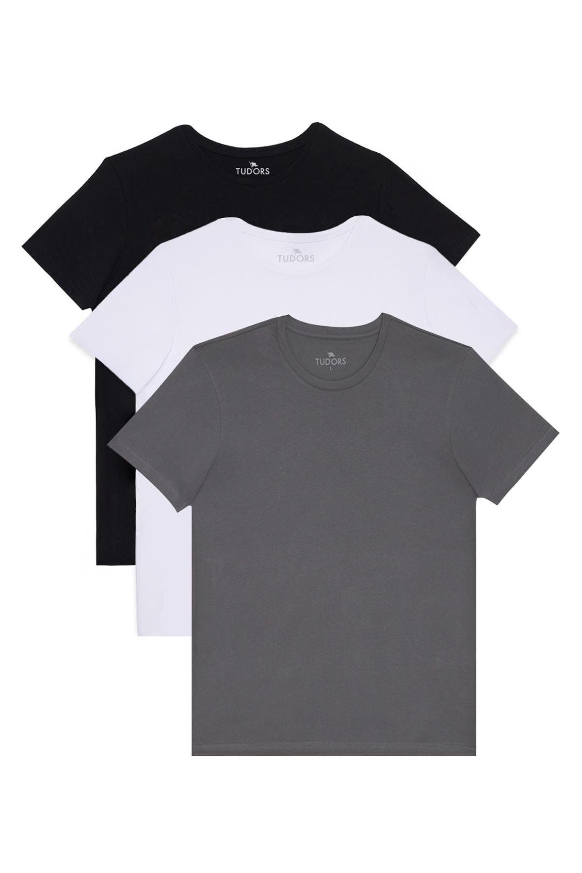 Unisex 3'lü Paket Siyah-Beyaz-K. Gri Slim Fit Dar Kesim %100 Pamuk Bisiklet Yaka Tişört