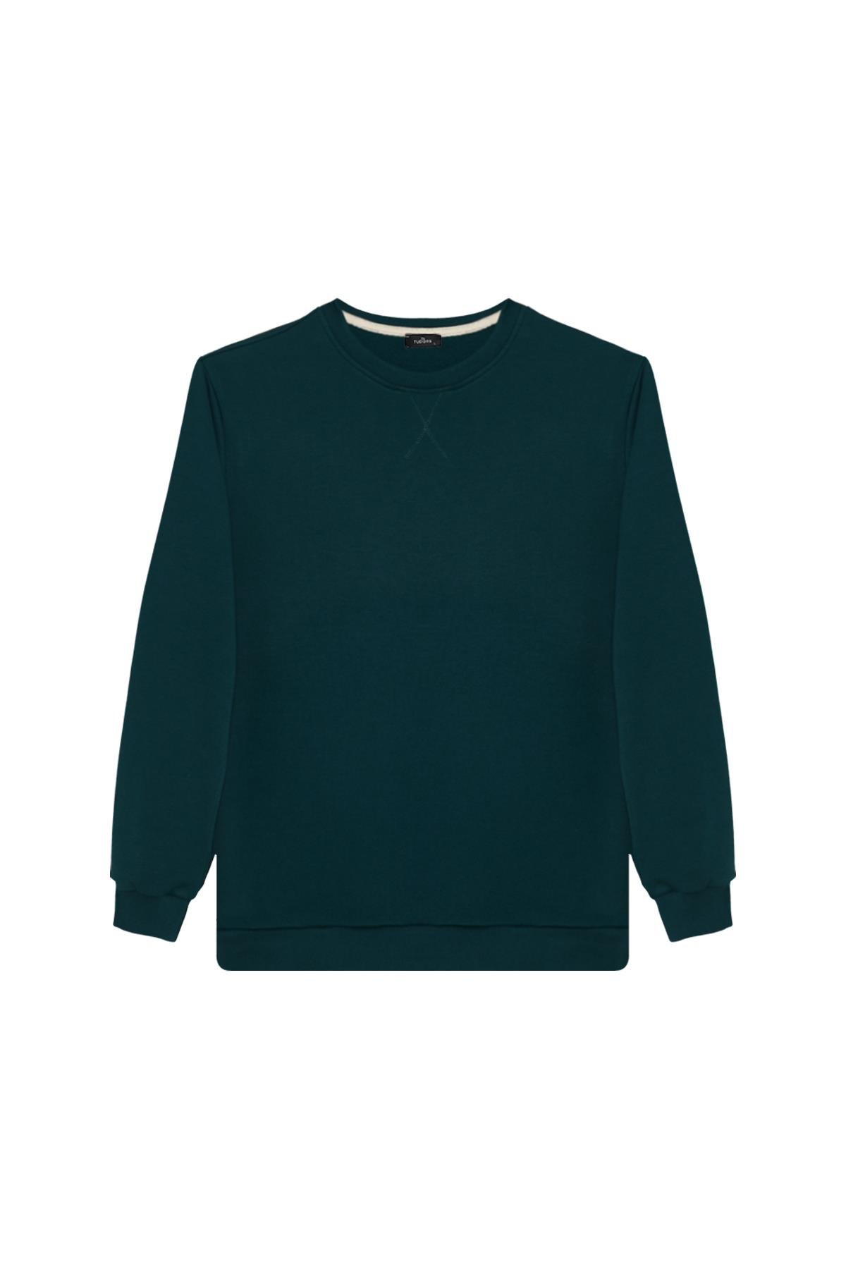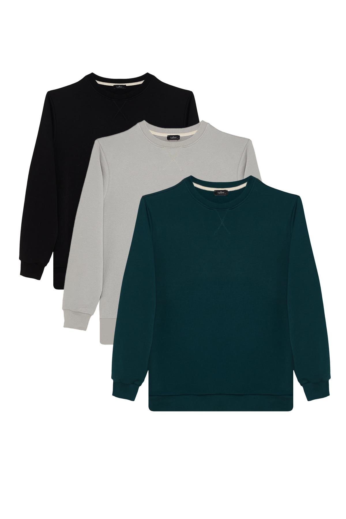 Unisex 3'lü Paket Siyah-Yeşil-Taş Relax Fit %100 Pamuk Bisiklet Yaka Sweatshirt