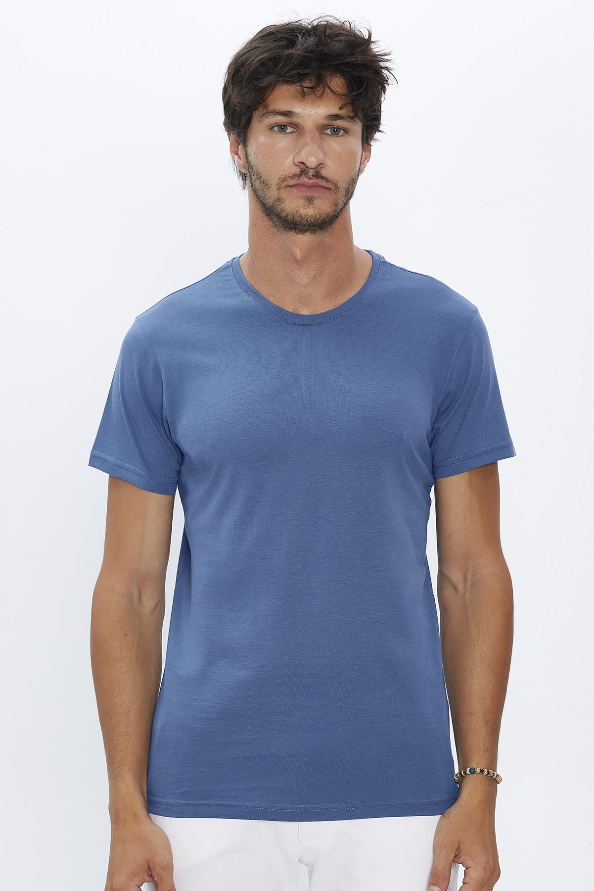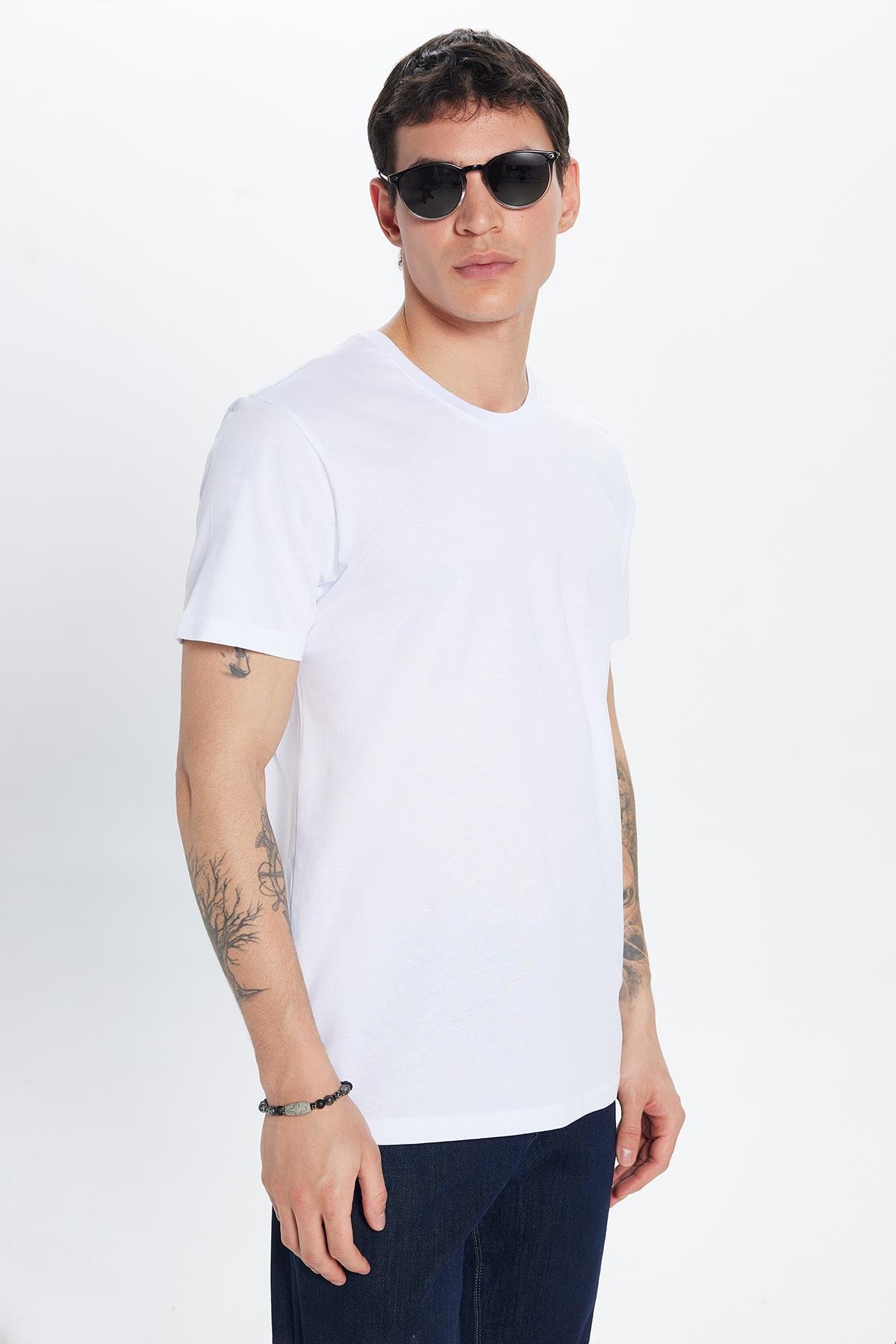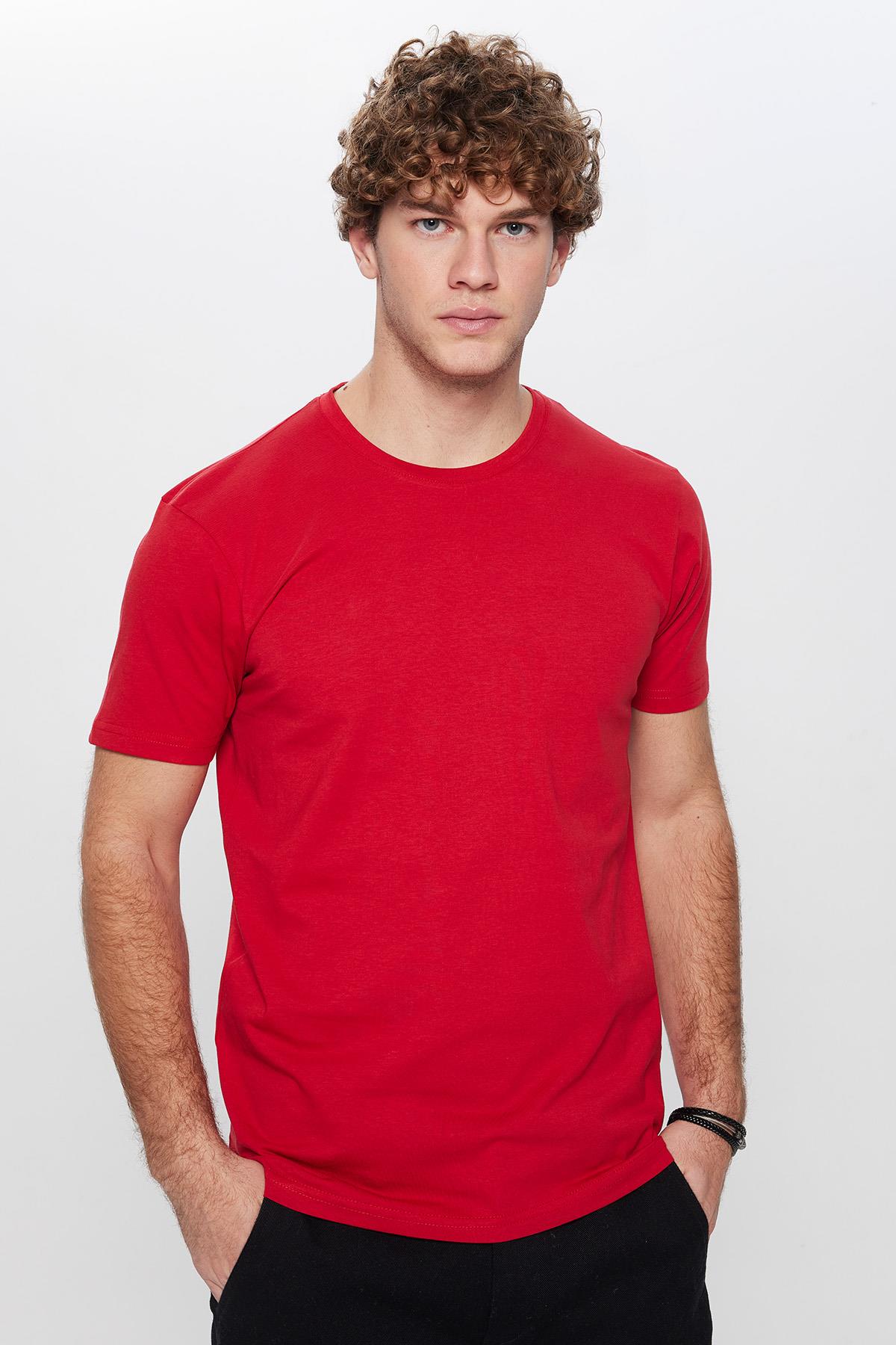 Unisex 5'li Paket Siyah-Beyaz-Taş-Kırmızı-Mavi Slim Fit Dar Kesim %100 Pamuk Bisiklet Yaka Tişört (ST240002-890)