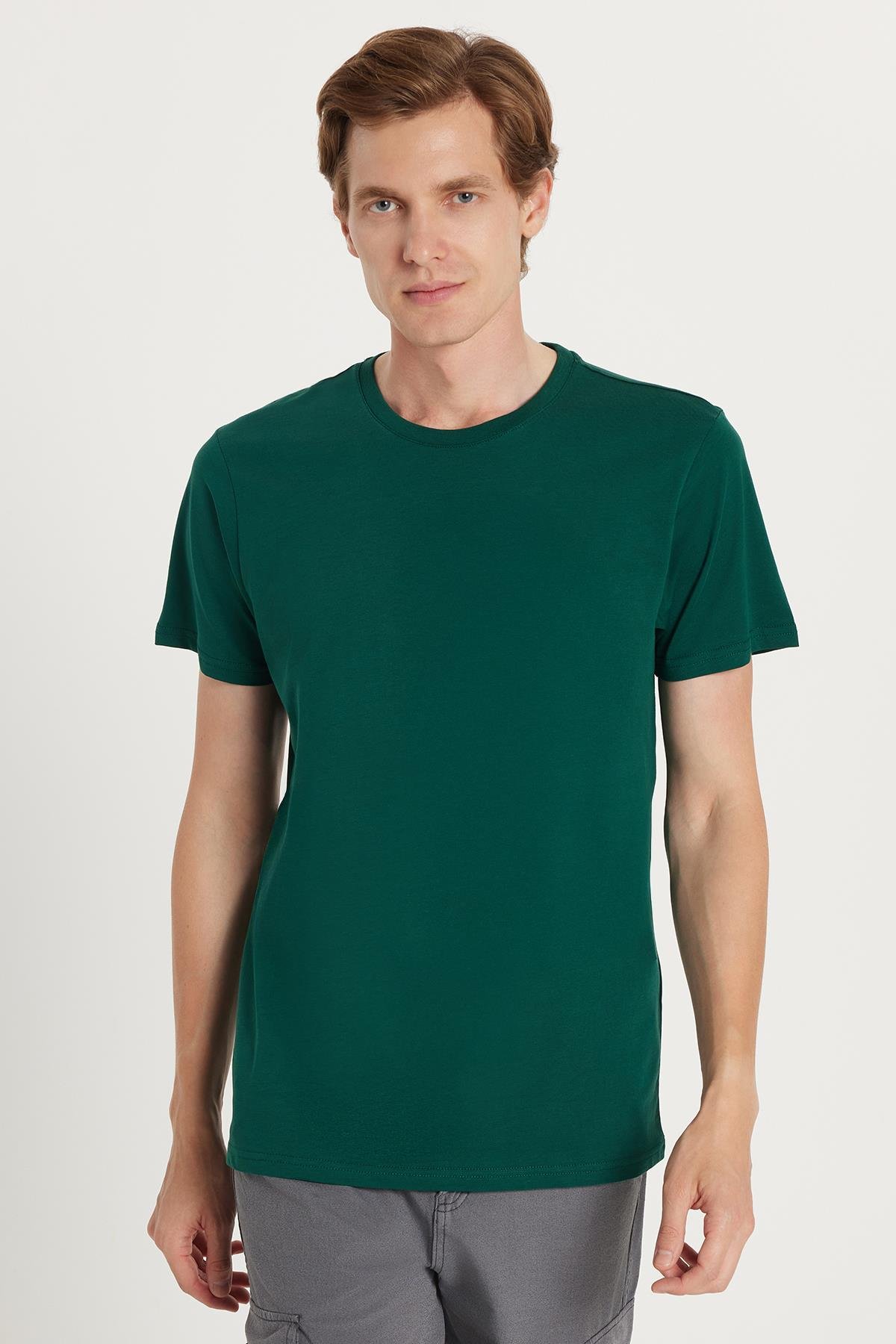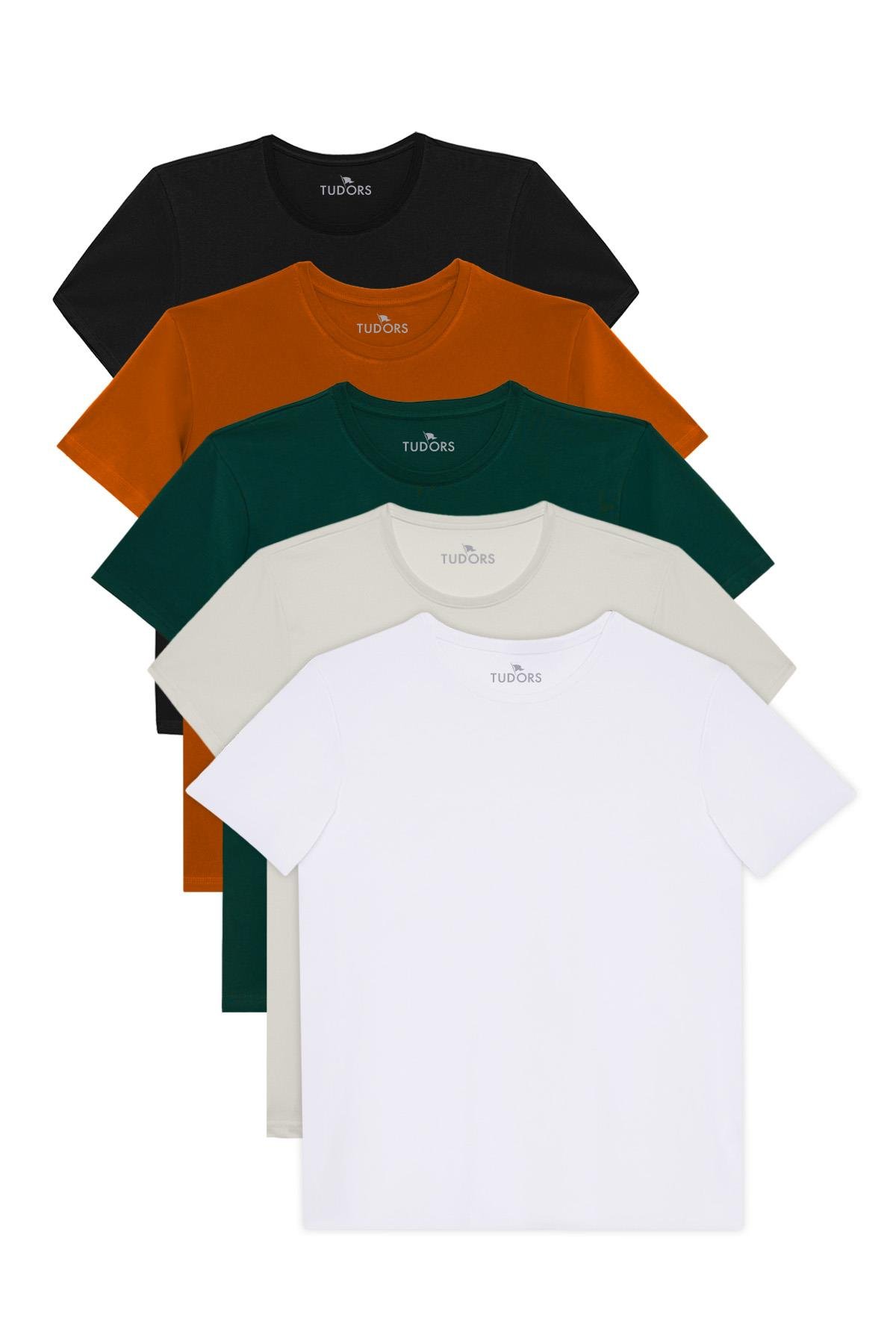 Unisex 5'li Paket Siyah-Beyaz-Taş-Tarçın-Z.Yeşil Slim Fit Dar Kesim %100 Pamuk Bisiklet Yaka Tişört​​​​​​​ (ST240002-900)