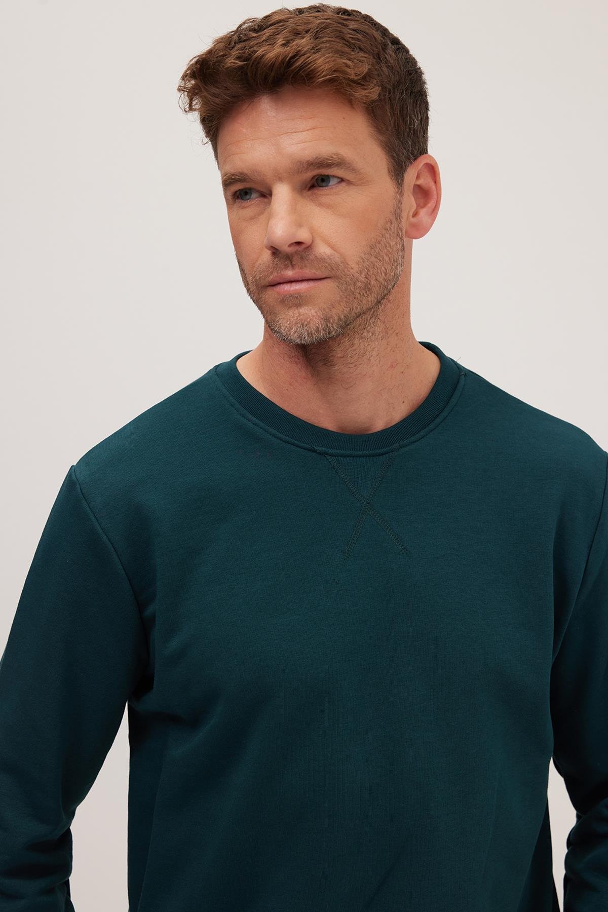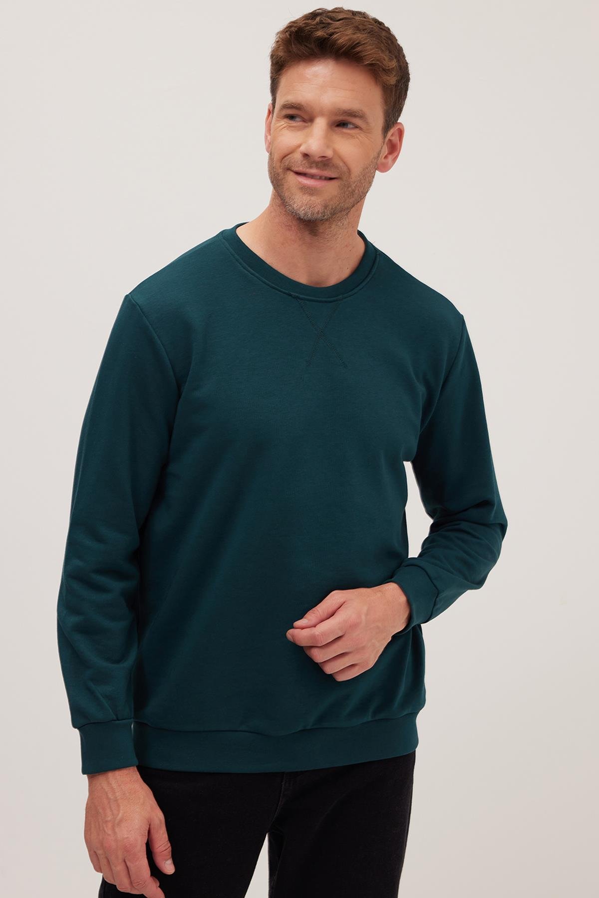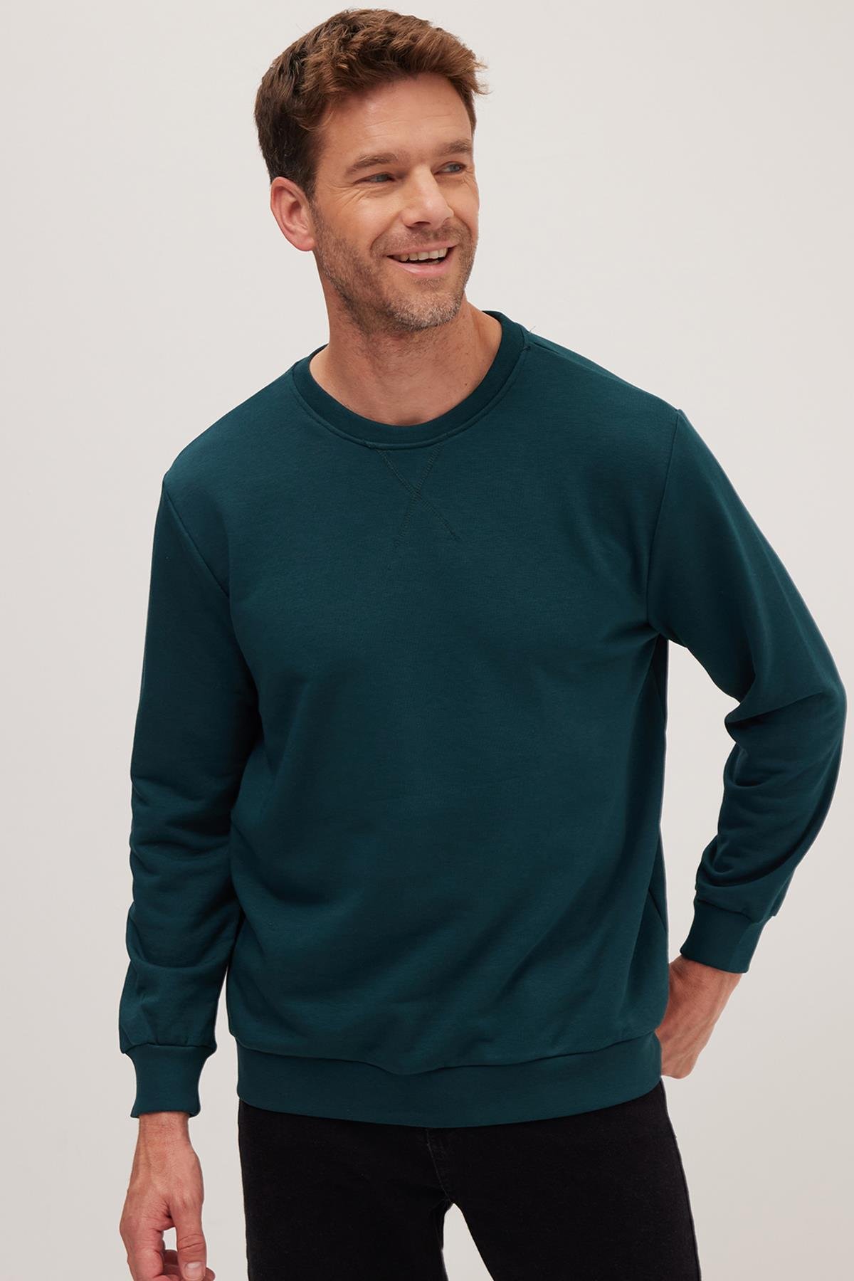 Unisex Relax Fit Rahat Kesim %100 Pamuk Basic Yeşil Bisiklet Yaka Sweatshirt (SW230001-DKS)