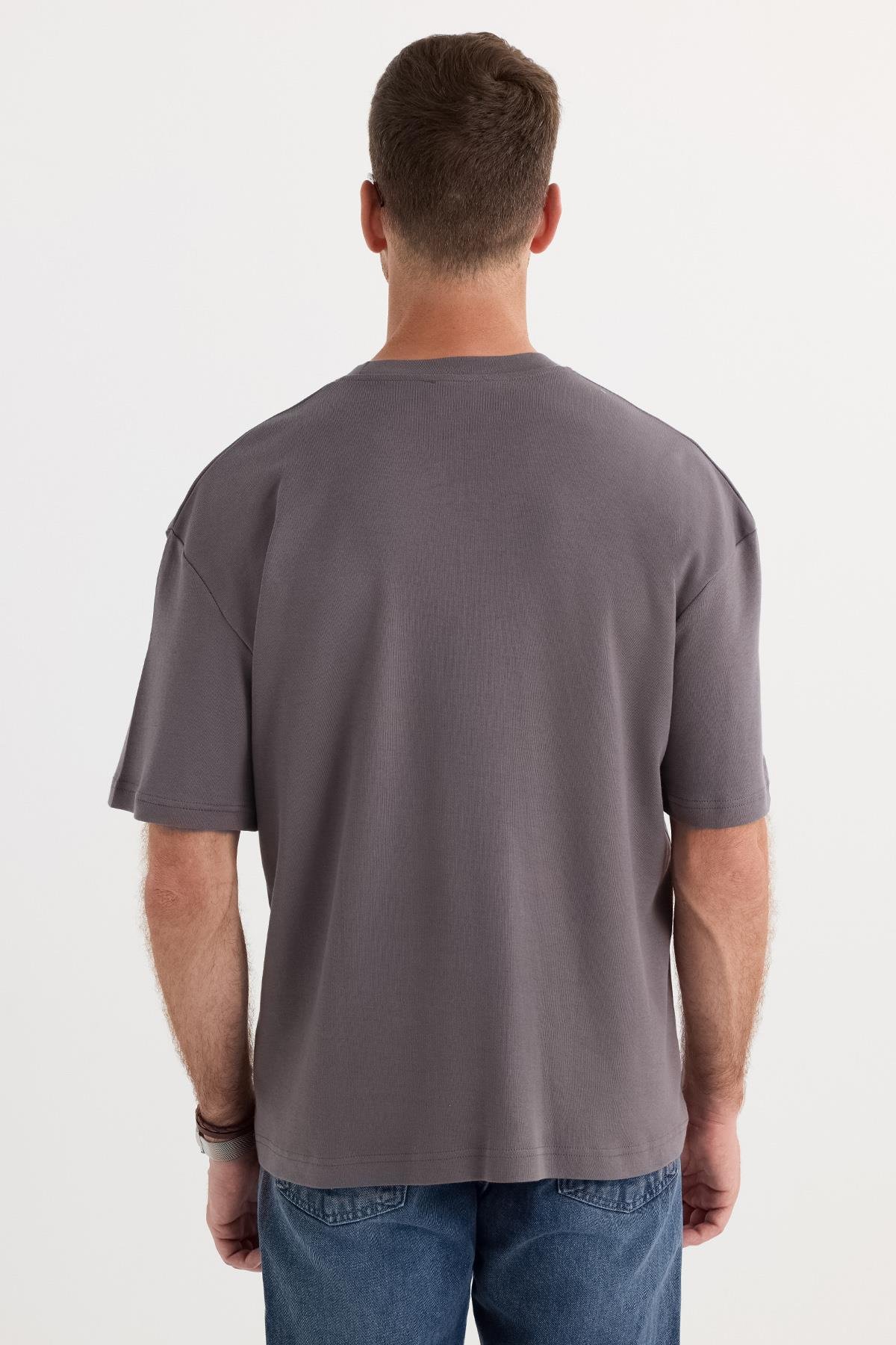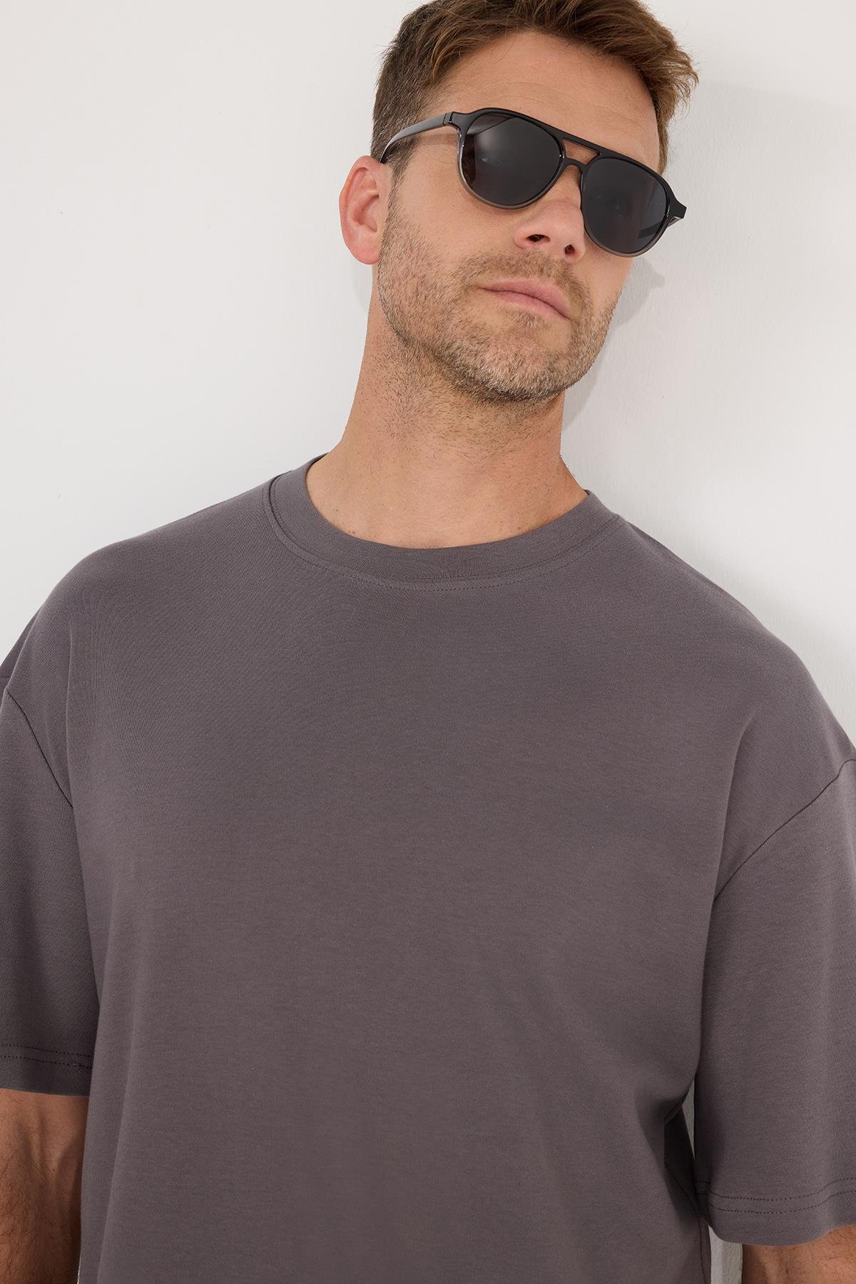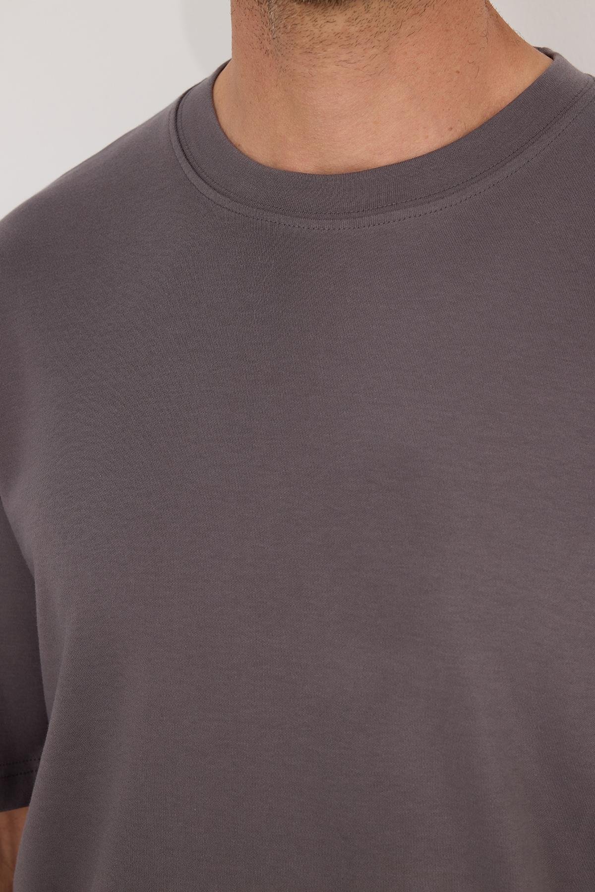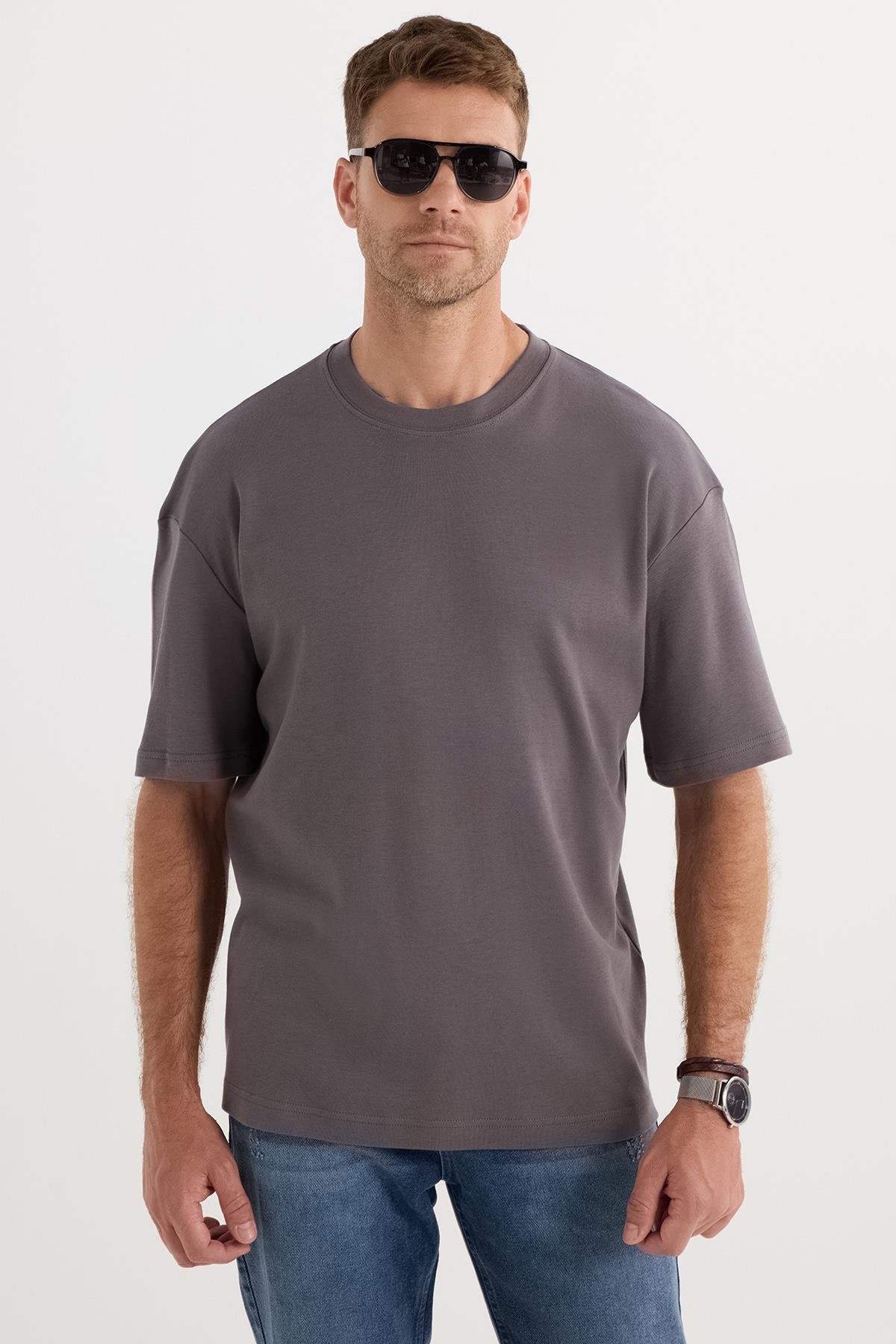 Unisex Oversize Geniş Kesim %100 Pamuk Yumuşak Dokulu Basic Bisiklet Yaka Füme Tişört