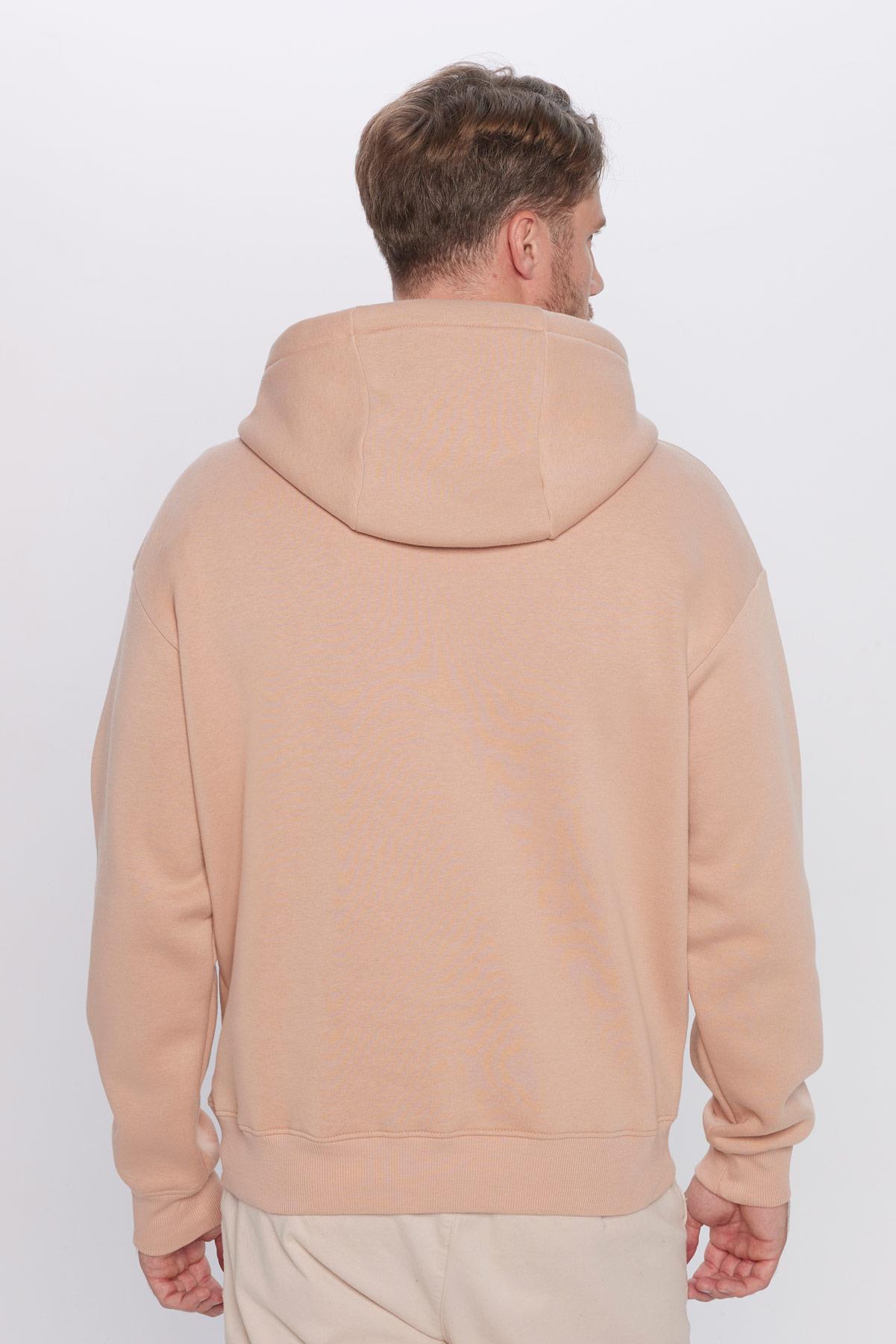 Unisex Oversize Geniş Kesim Pamuklu Yumuşak Dokulu İçi Polarlı Basic Vizon Renk Kapüşonlu Sweatshirt