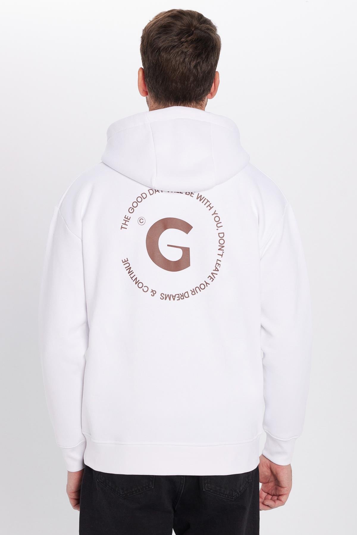 Unisex Oversize Geniş Kesim Pamuklu Yumuşak Dokulu İçi Polarlı Baskılı Beyaz Kapüşonlu Sweatshirt (SW240012-7300)