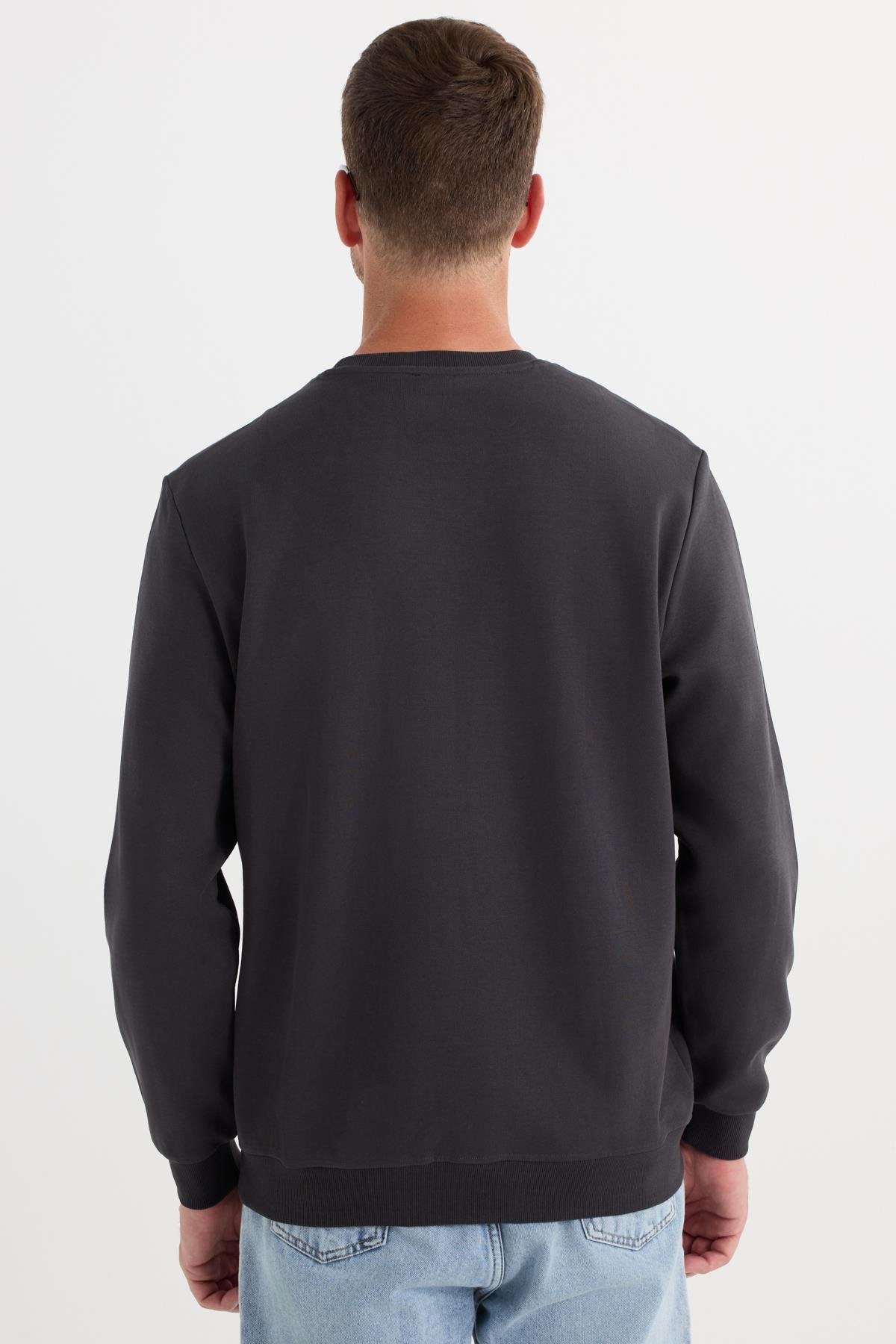 Unisex Relax Fit Pamuklu Yumuşak Dokulu Bisiklet Yaka İçİ Polarlı Baskılı Antrasit Sweatshirt​​​​​​​ (SW250005-ANHCT)