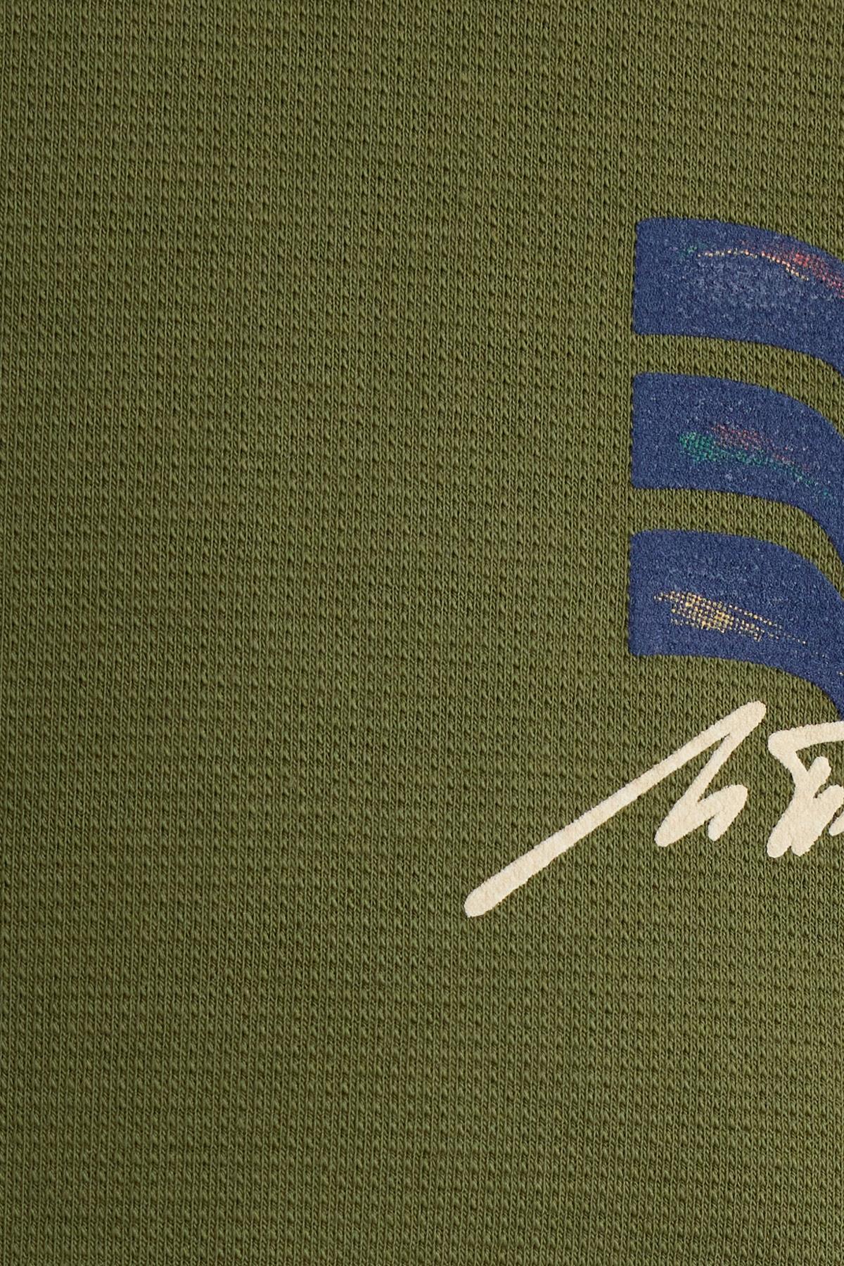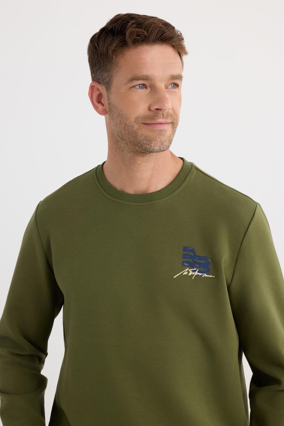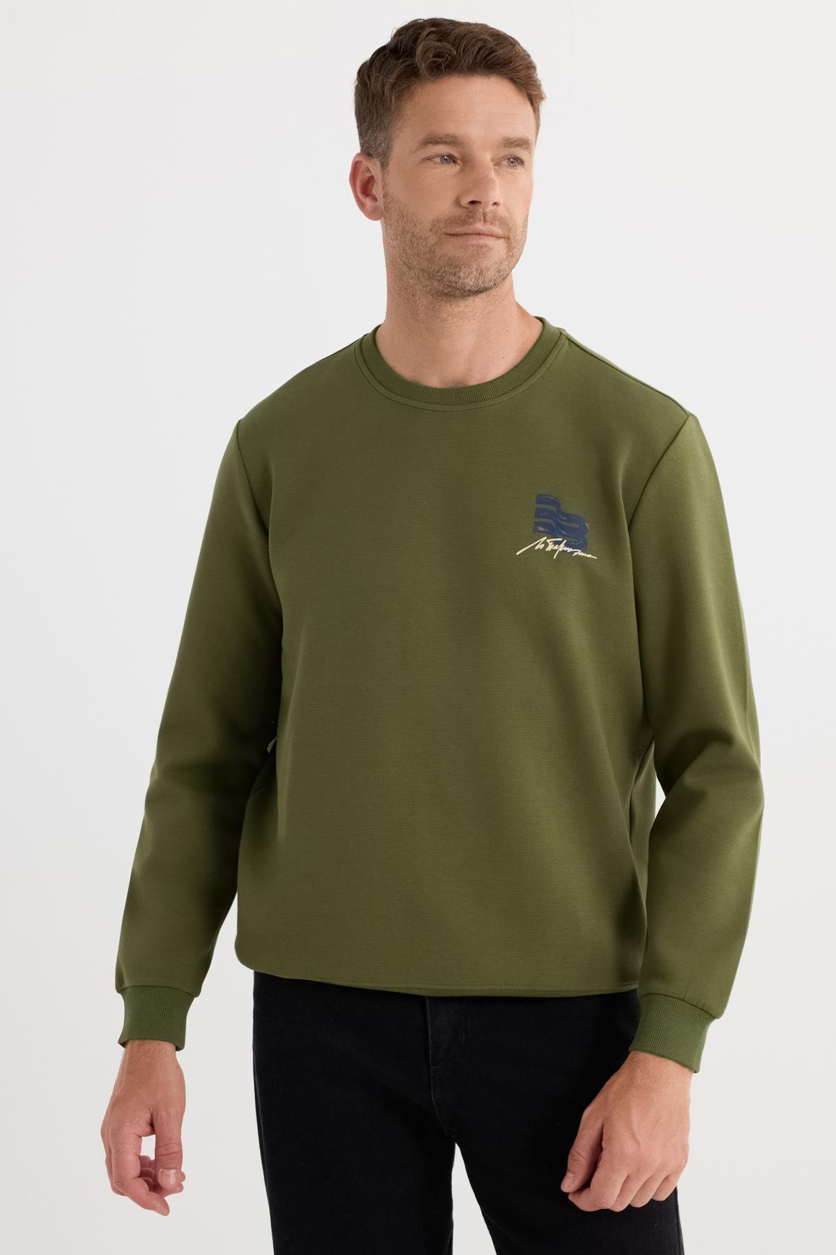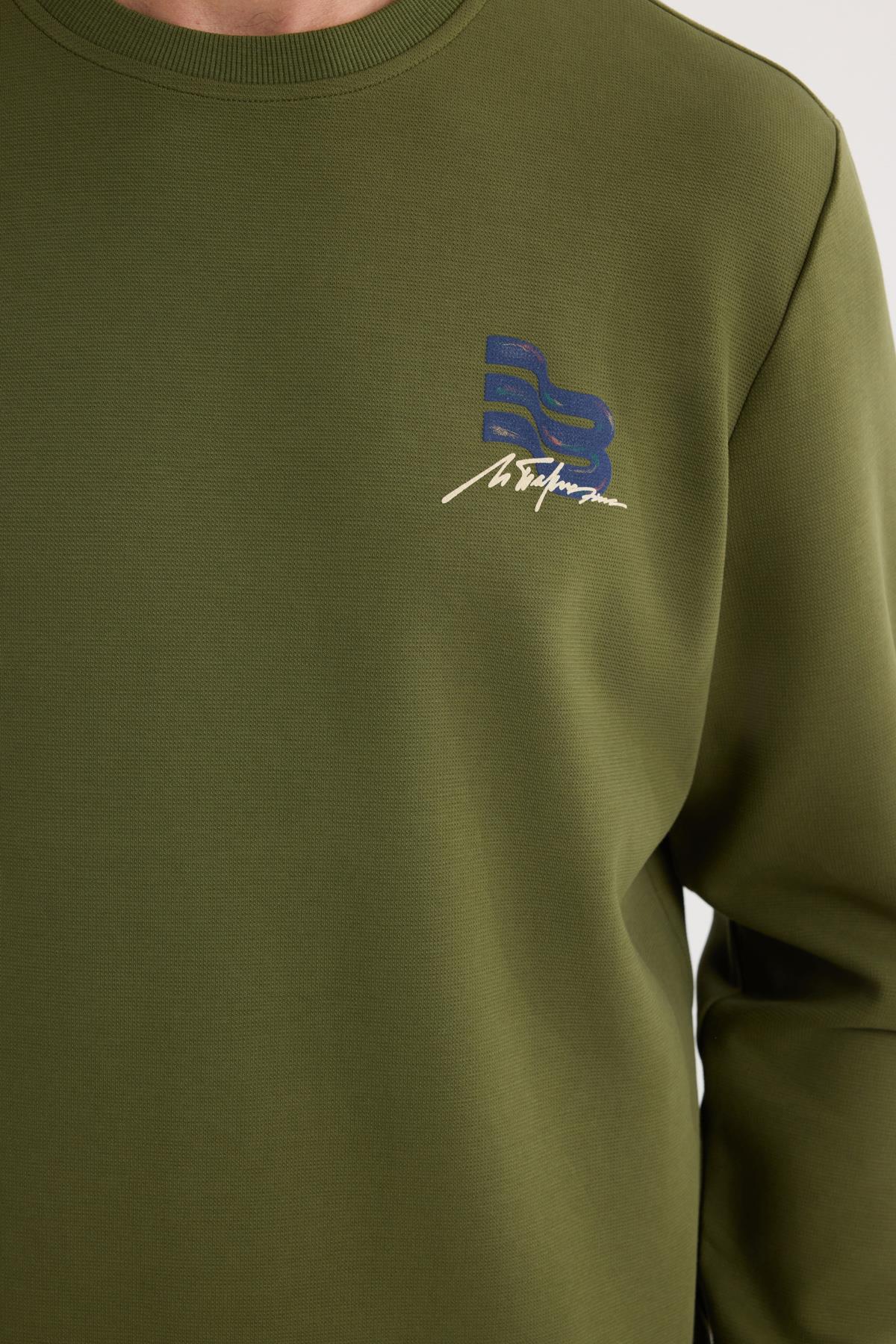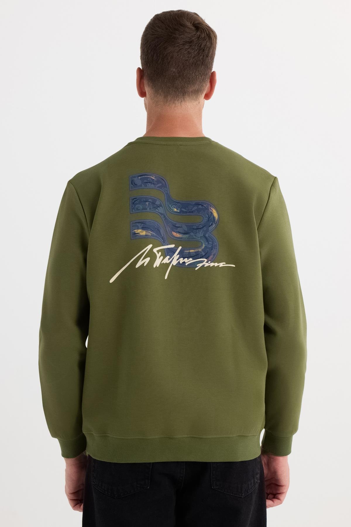 Unisex Relax Fit Pamuklu Yumuşak Dokulu Bisiklet Yaka İçi Polarlı Baskılı Yeşil Sweatshirt