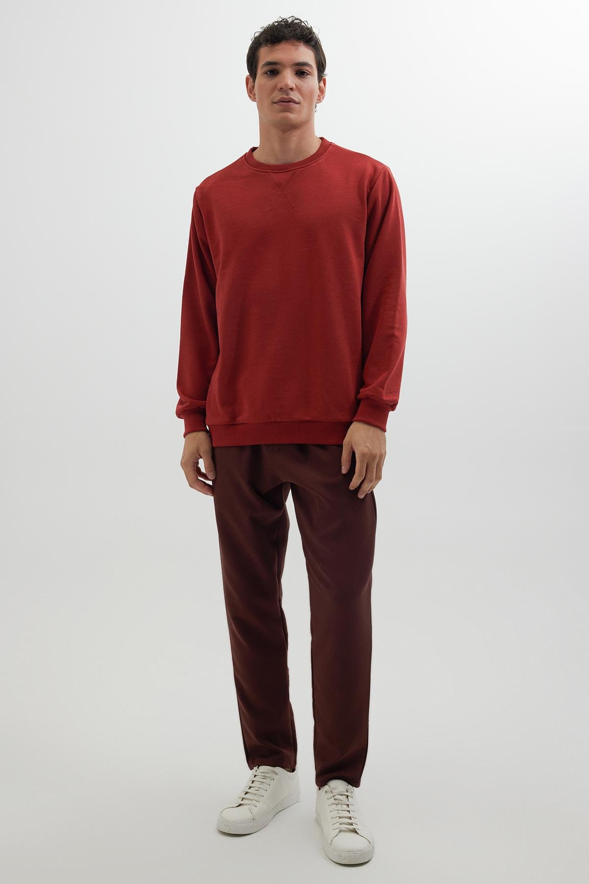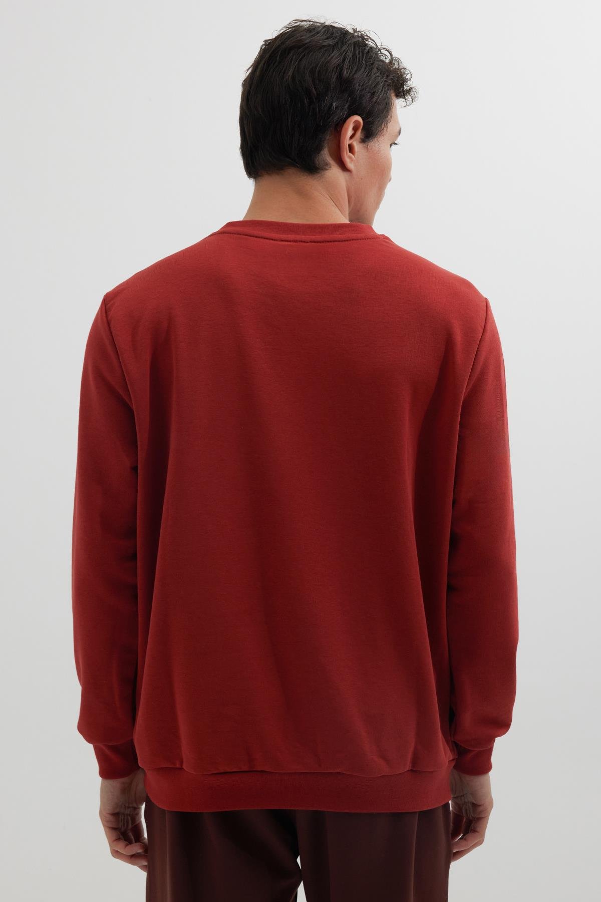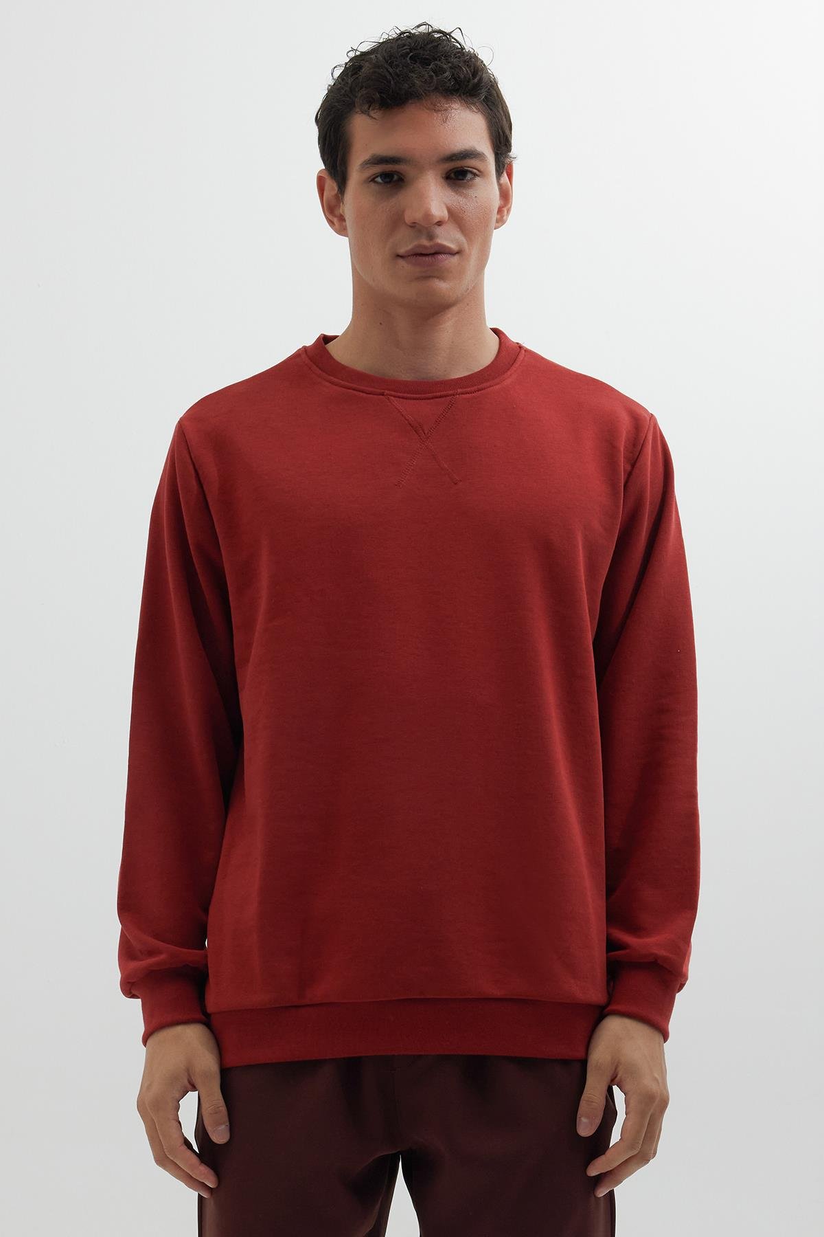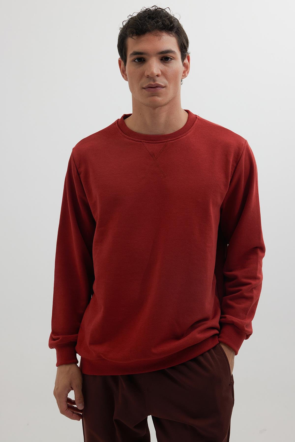 Unisex Relax Fit Rahat Kesim %100 Pamuk Basic Kiremit Bisiklet Yaka Sweatshirt (SW230001-RO)