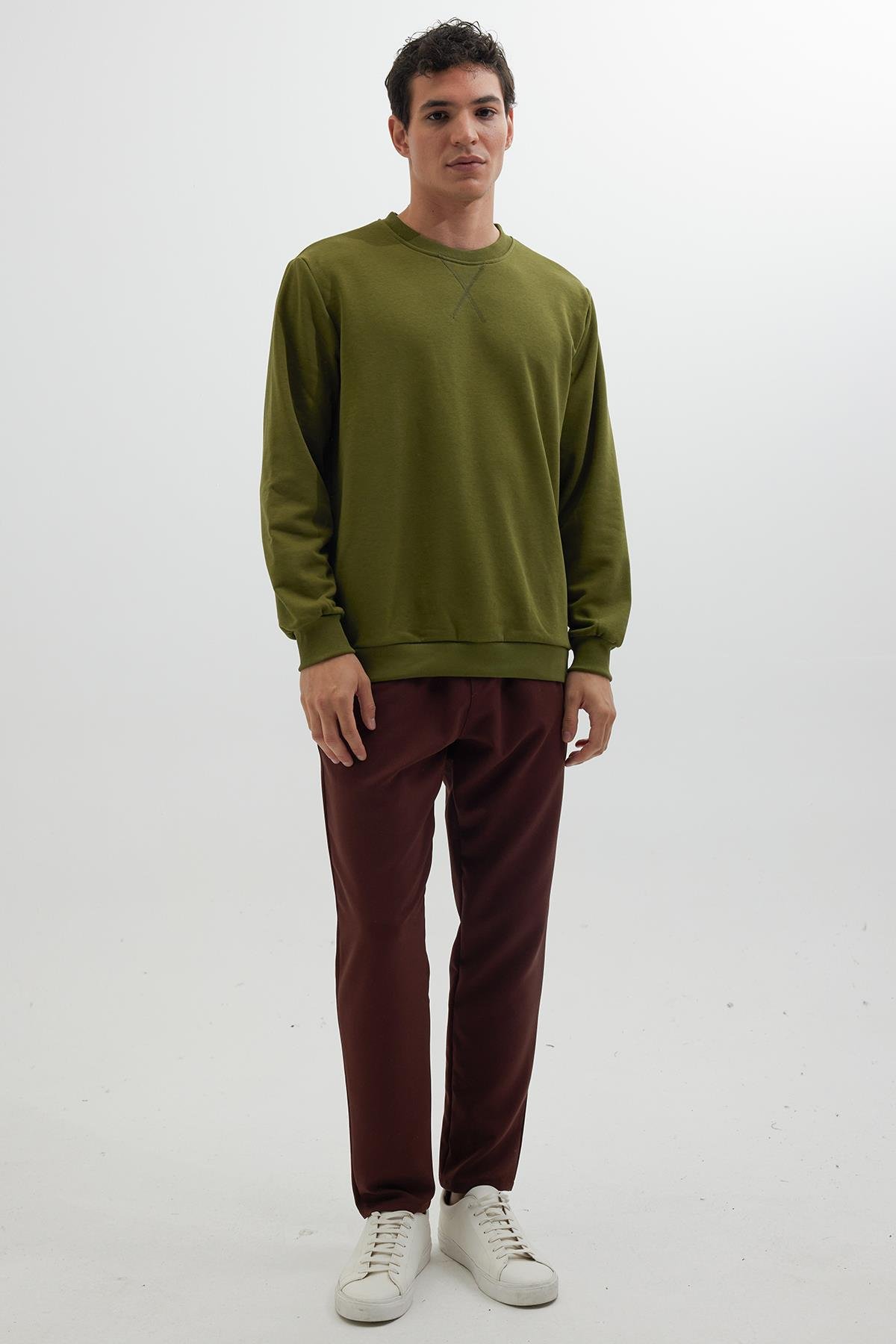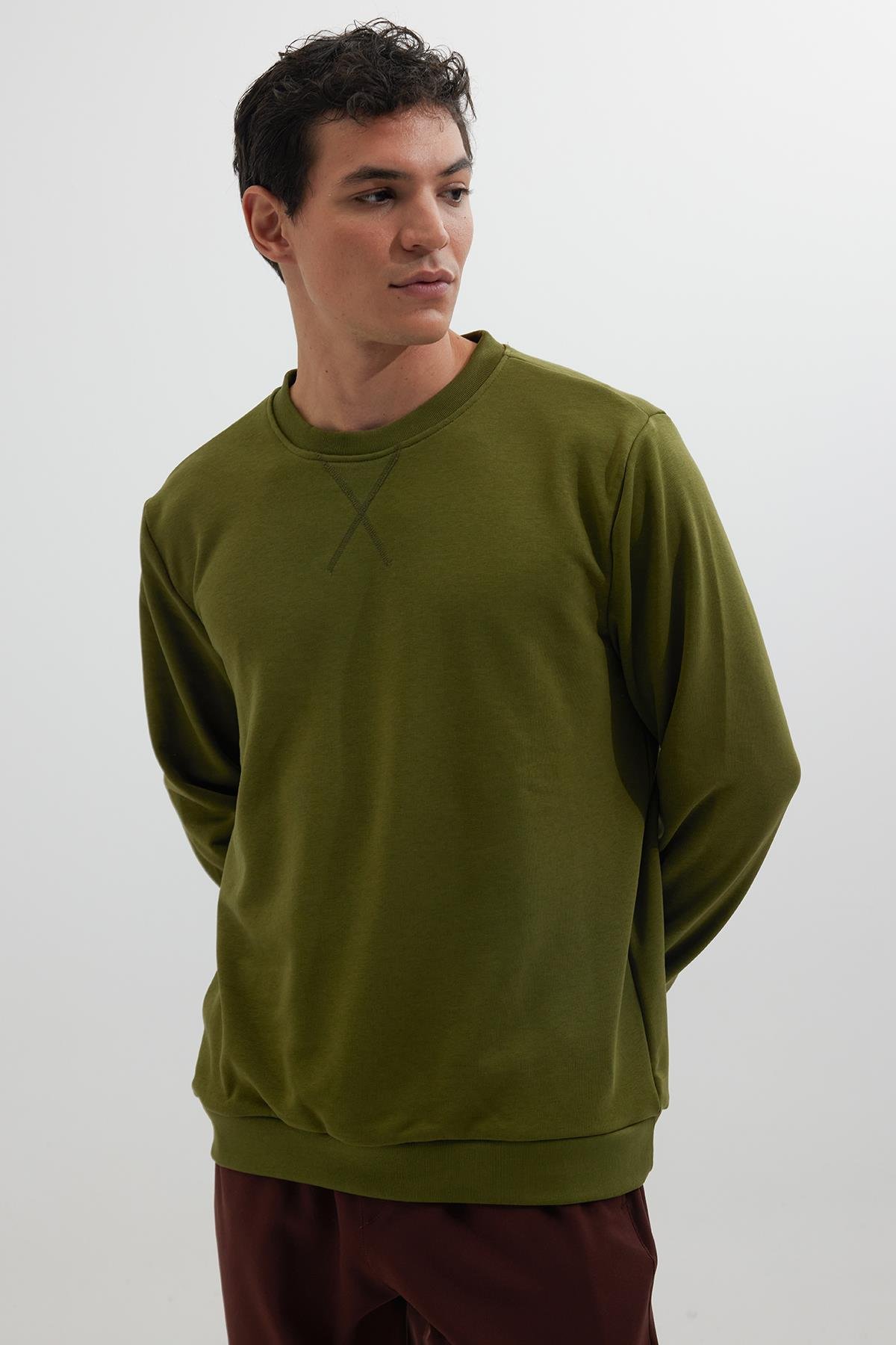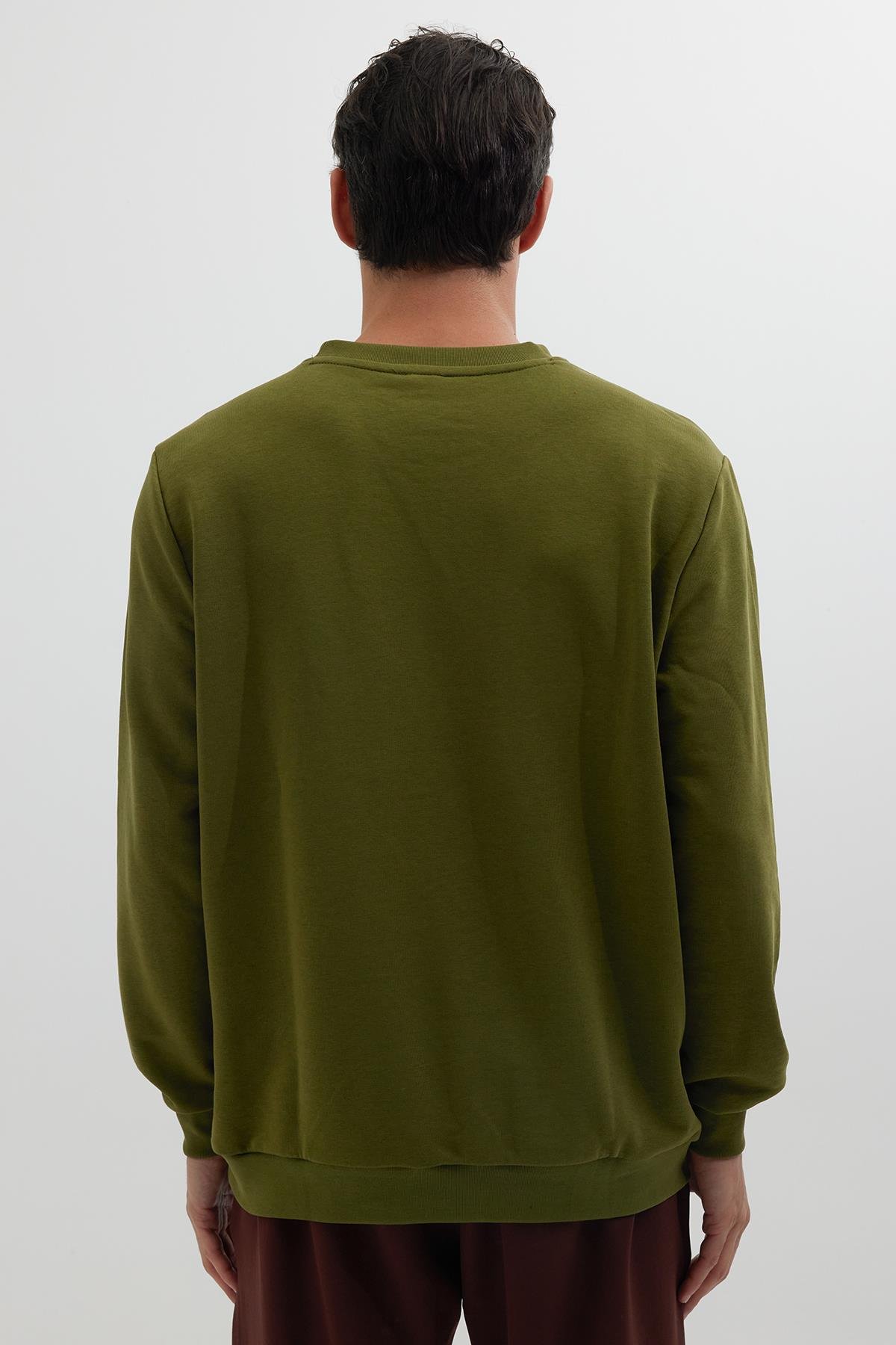 Unisex Relax Fit Rahat Kesim %100 Pamuk Basic Yeşil Bisiklet Yaka Sweatshirt (SW230001-SPH)