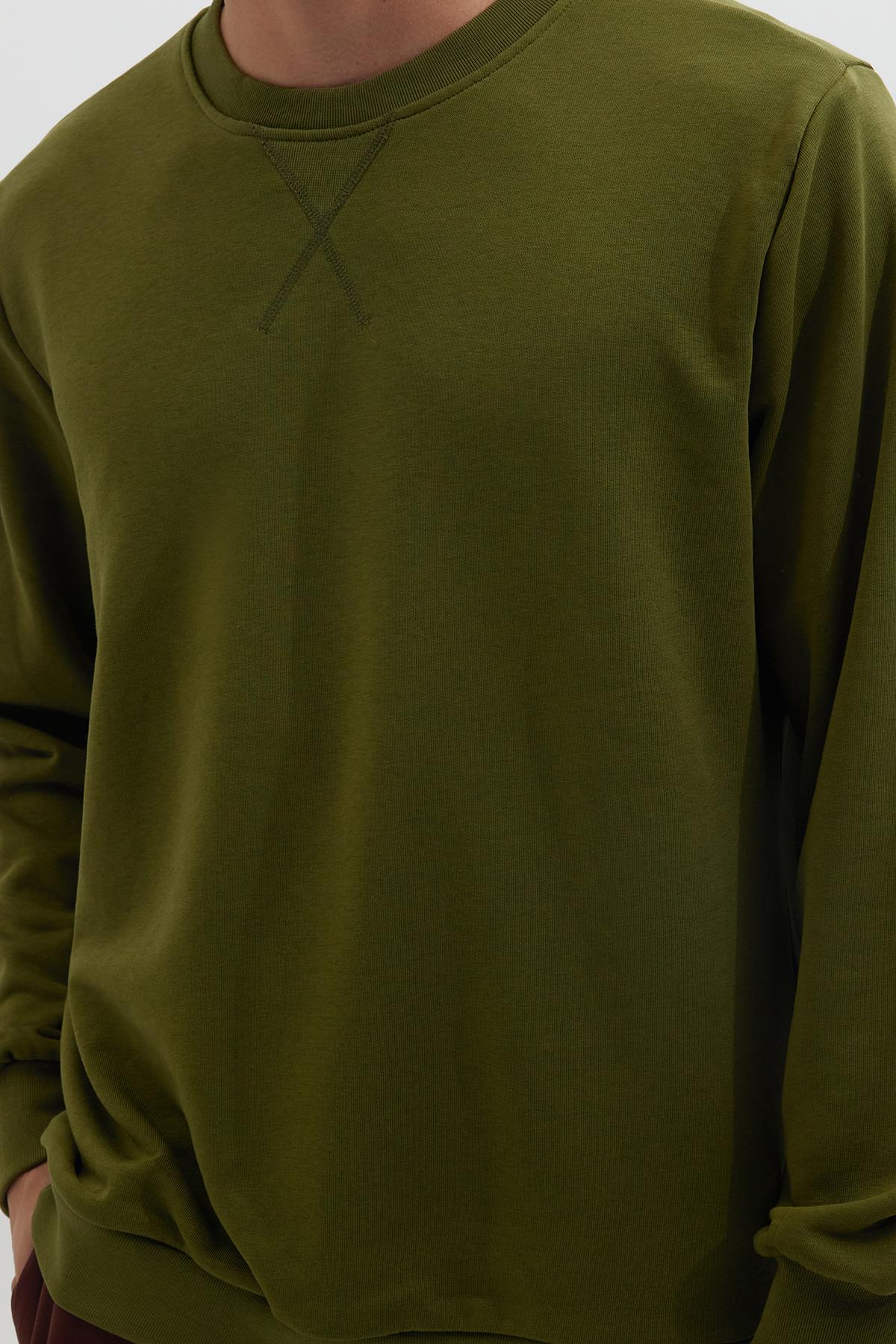 Unisex Relax Fit Rahat Kesim %100 Pamuk Basic Yeşil Bisiklet Yaka Sweatshirt