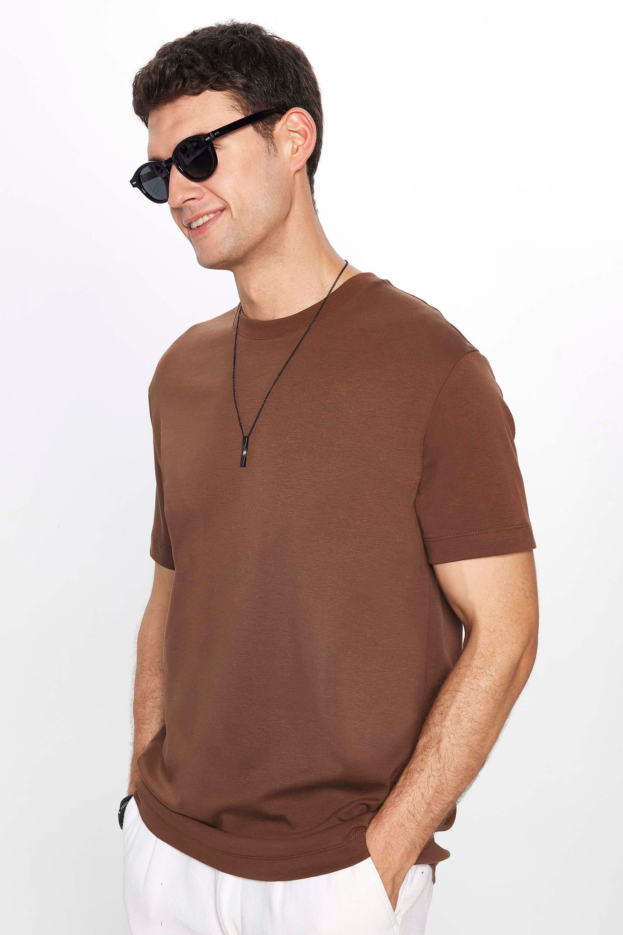 Unisex Relax Fit Rahat Kesim %100 Pamuk Yumuşak Dokulu Hafif Kalın Basic Bisiklet Yaka Taş Tişört (TS240020-39)