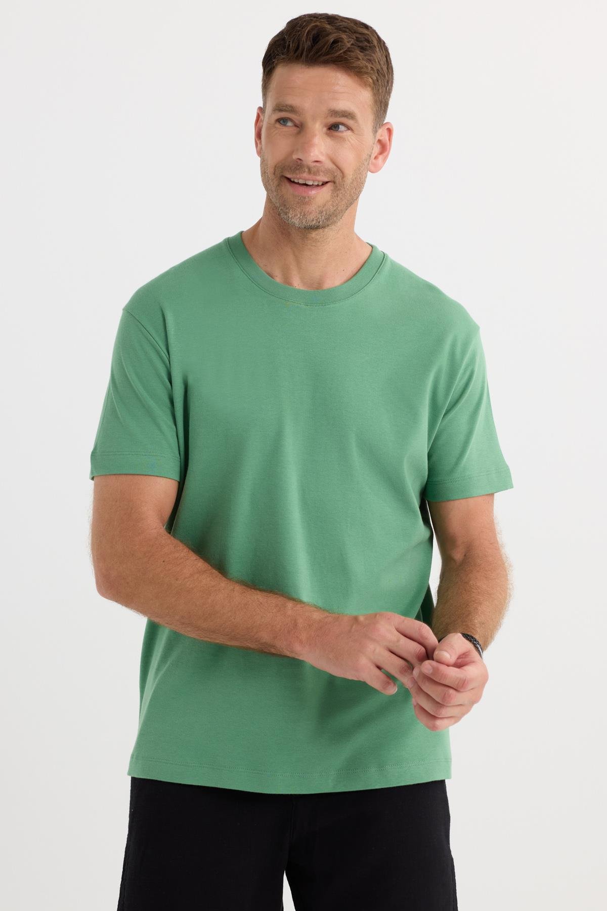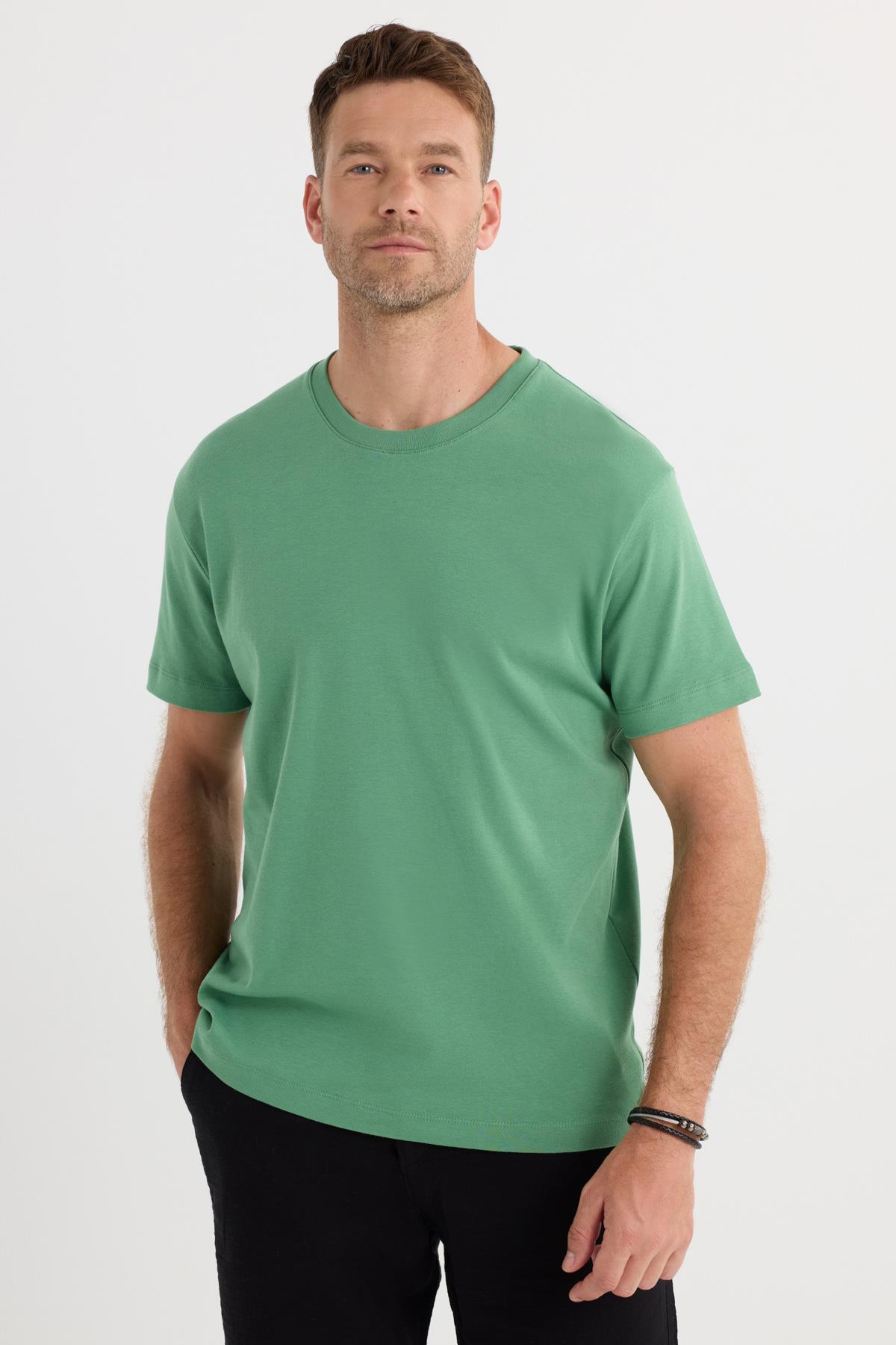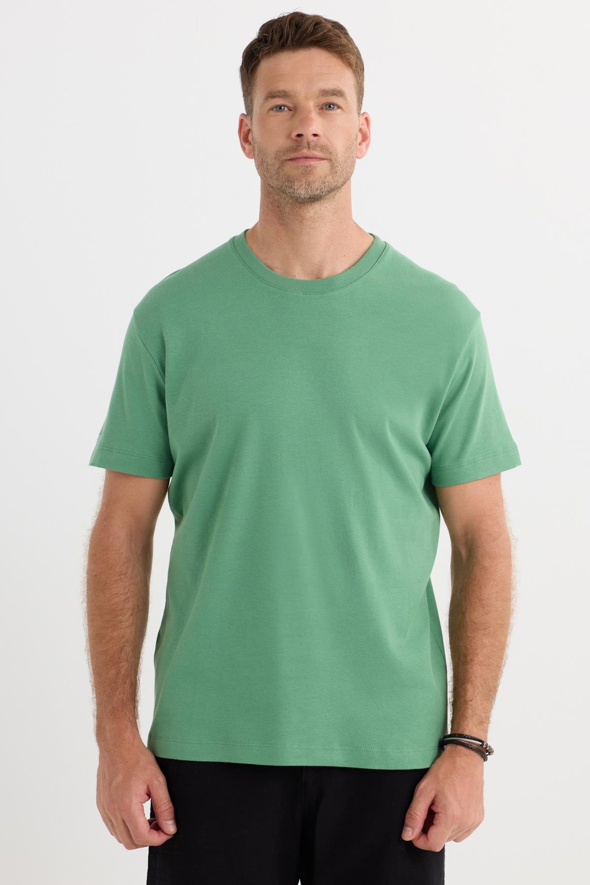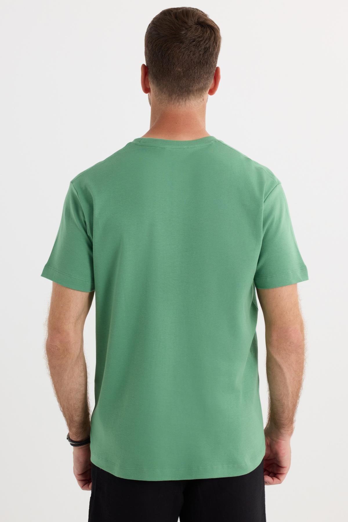 Unisex Relax Fit Rahat Kesim %100 Pamuk Yumuşak Dokulu Hafif Kalın Yeşil Bisiklet Yaka Tişört (TS240020-DGG)