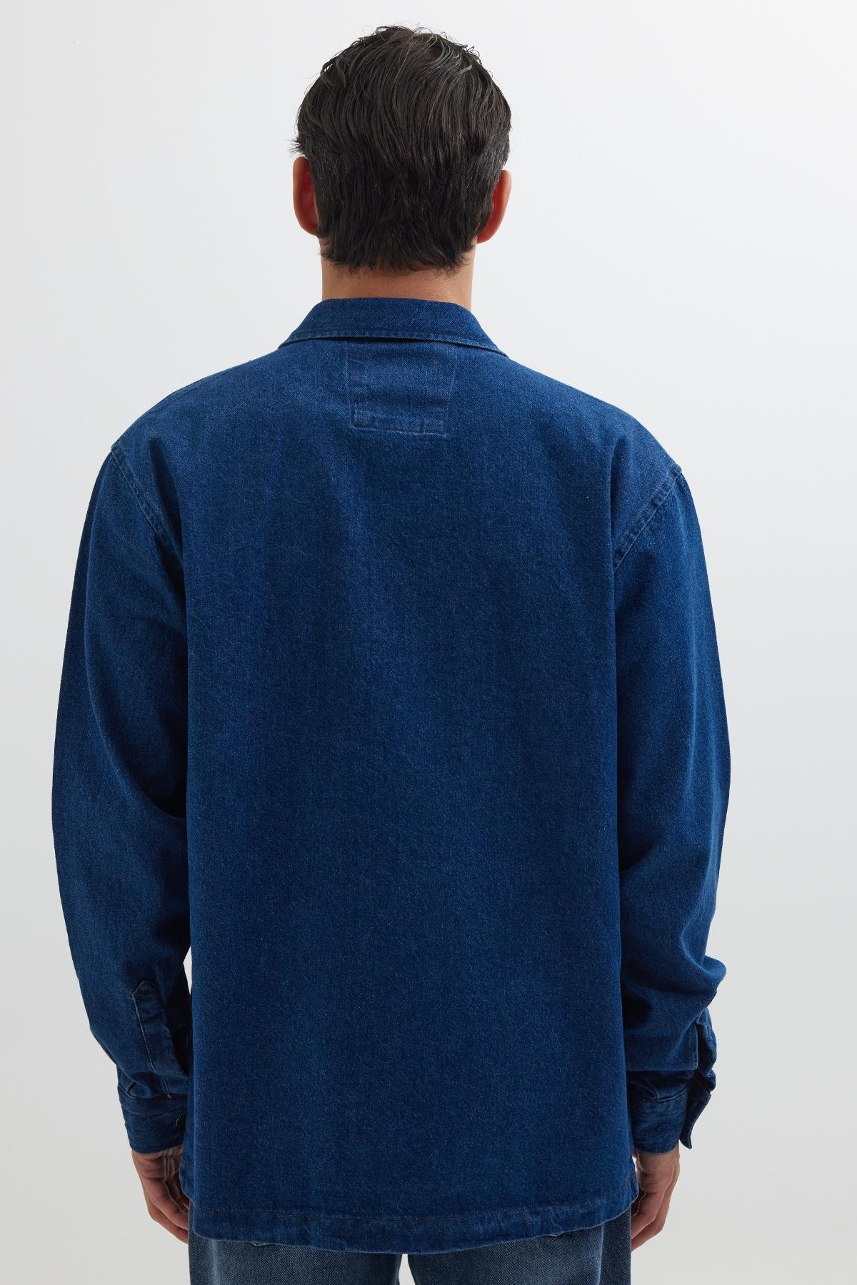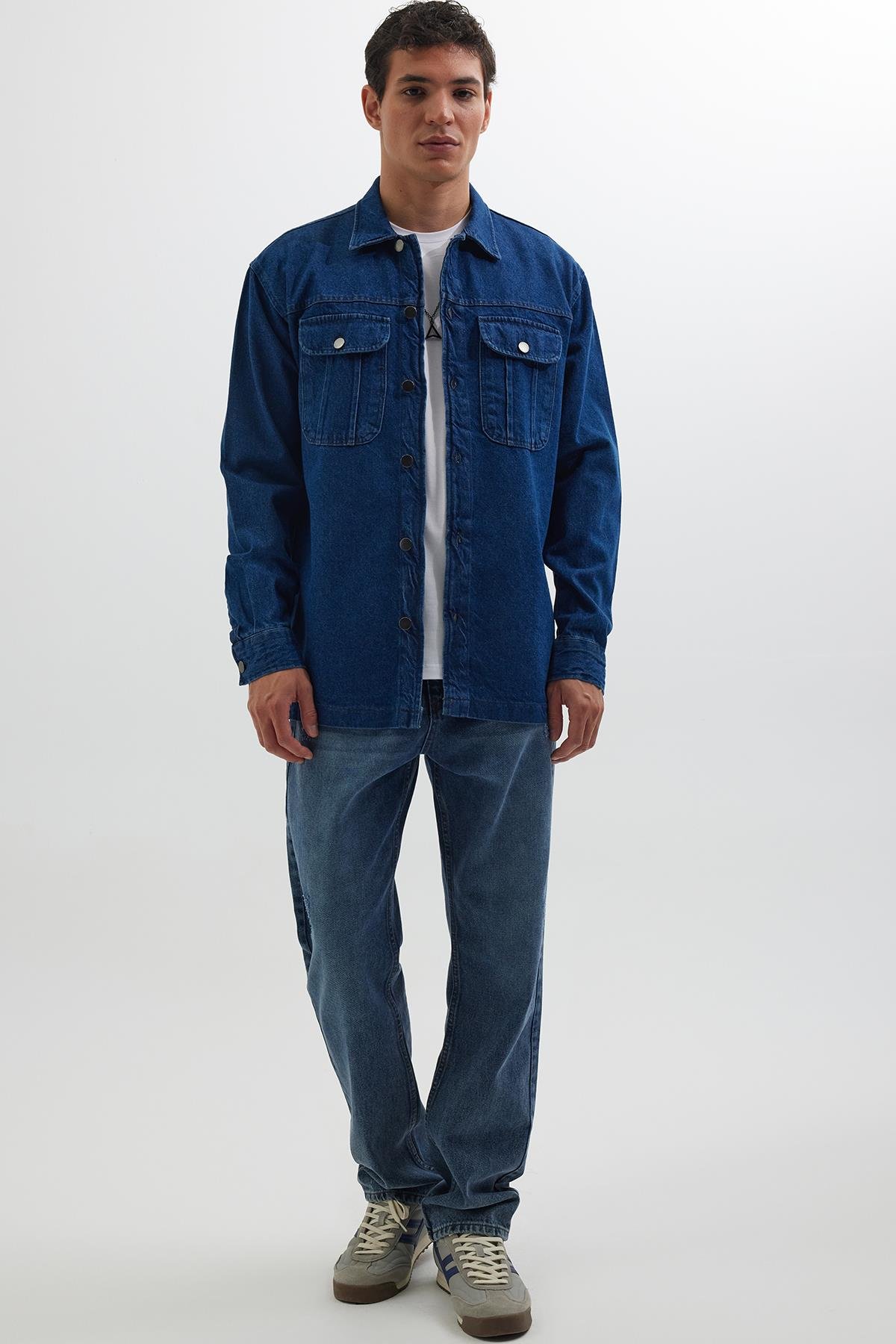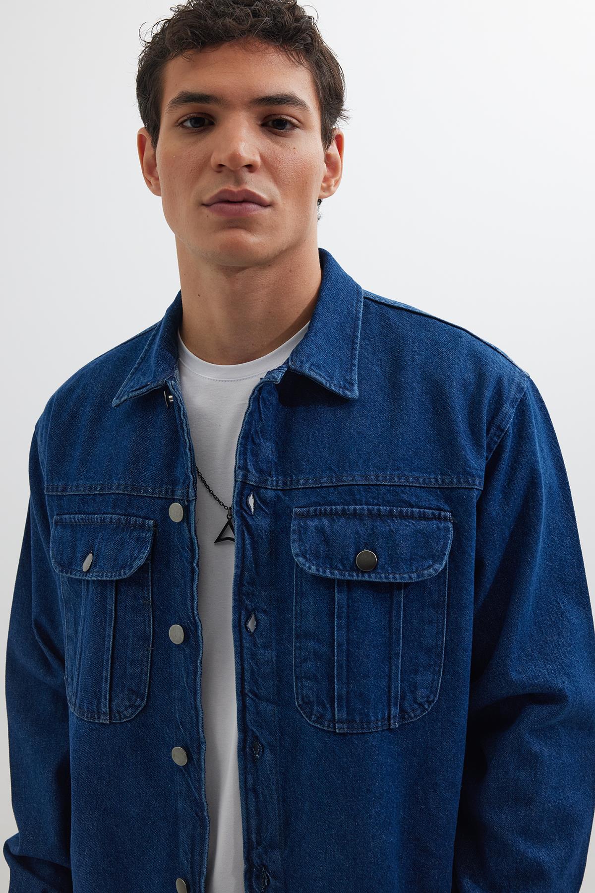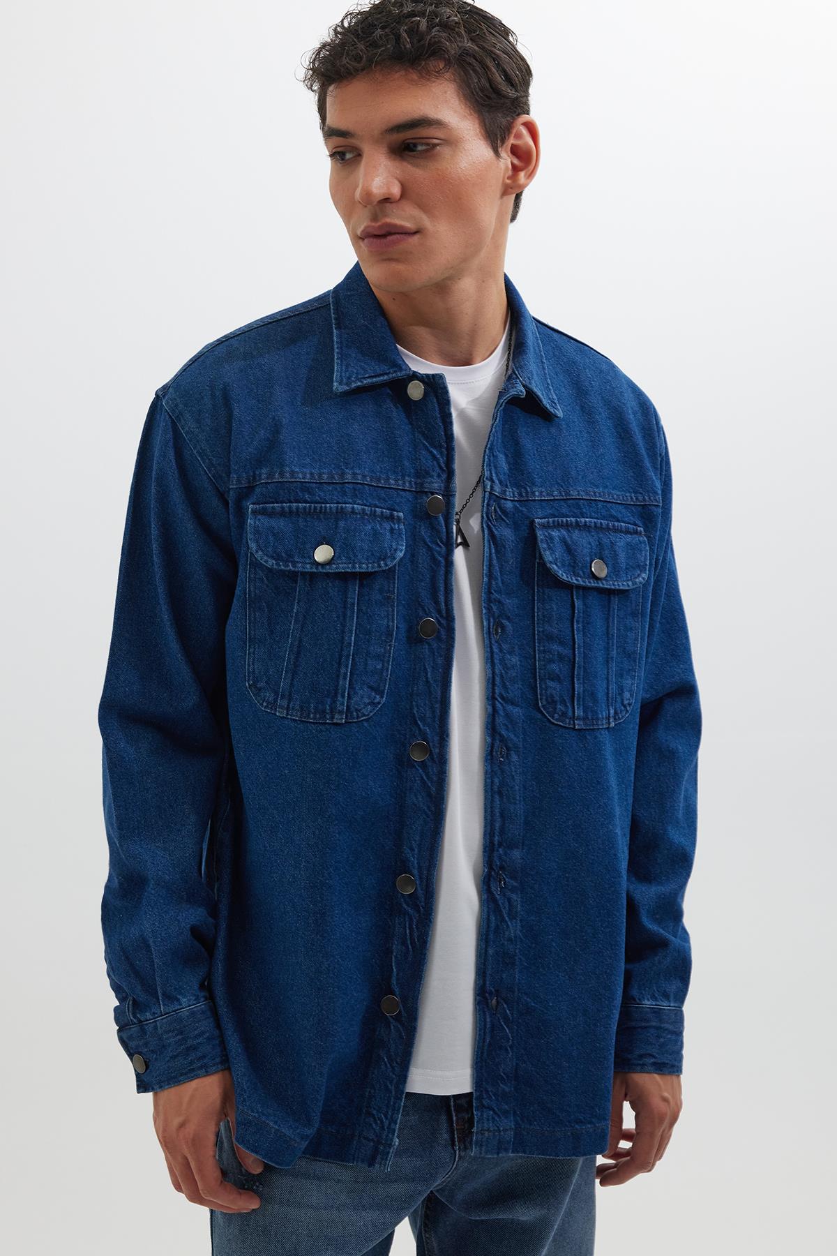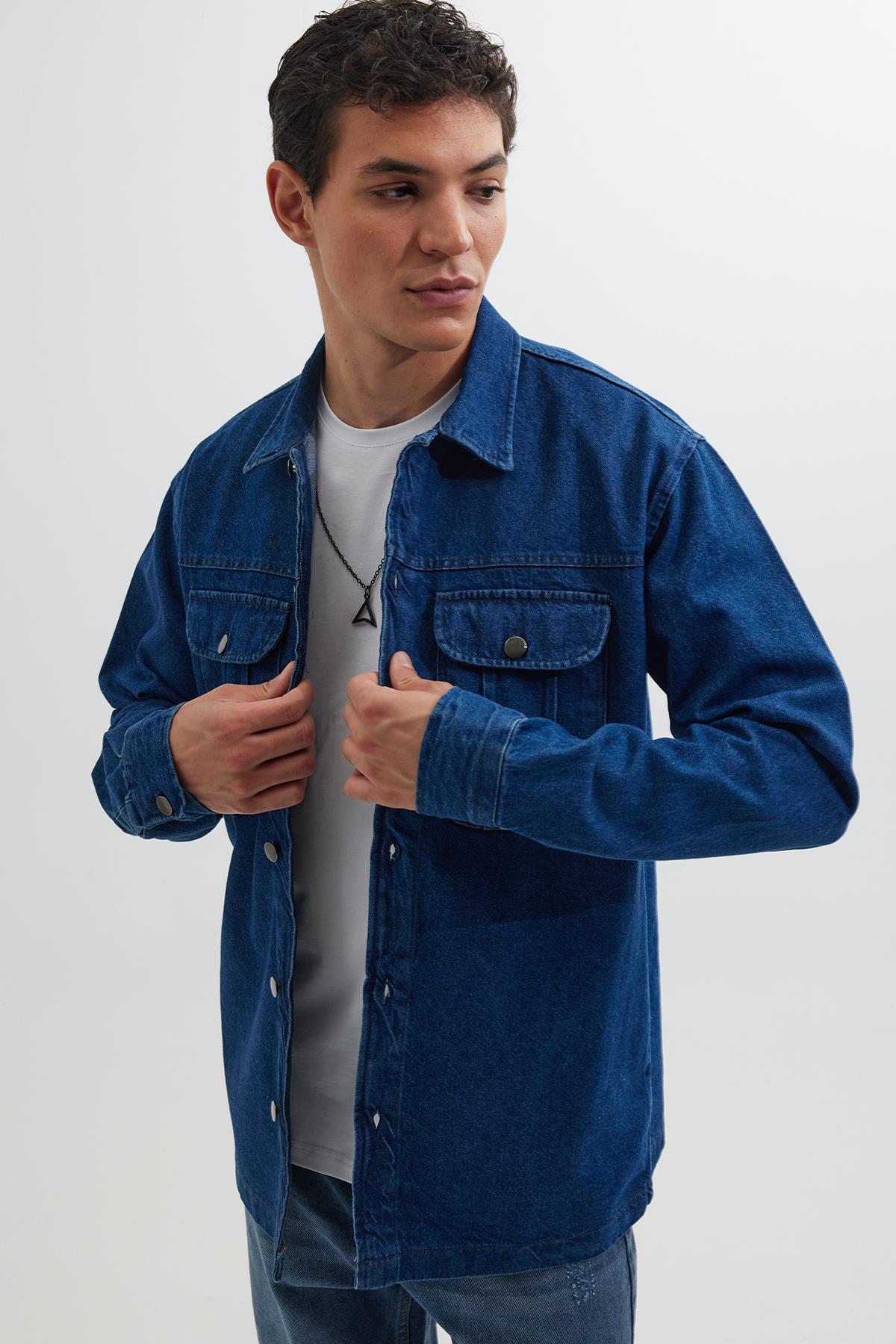 Unisex Relax Fit Rahat Kesim Denim Kot Kapaklı Çift Cepli Overshirt Ceket Tarzı Gömlek (RF240049-3750)