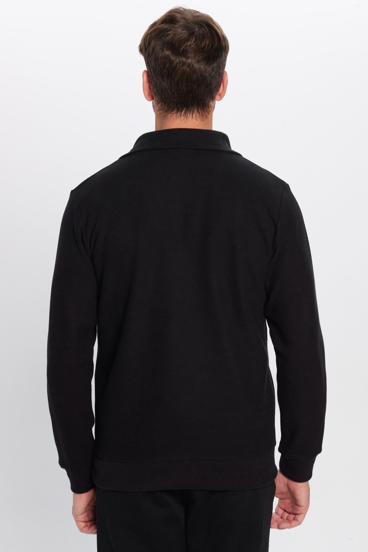 Unisex Relax Fit Rahat Kesim Fitilli Desenli Pamuklu Yarım Fermuarlı Siyah Dik Yaka Sweatshirt (SW240006-02)