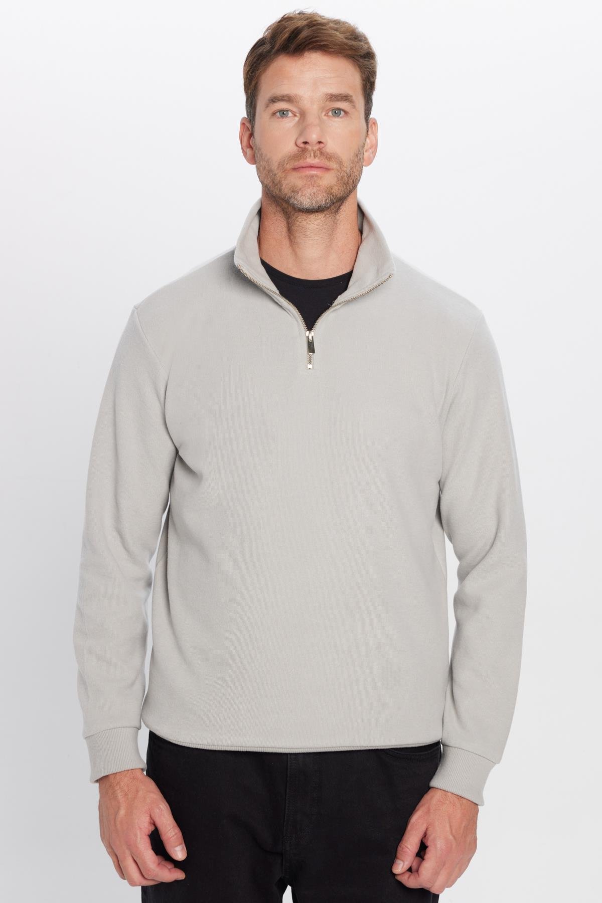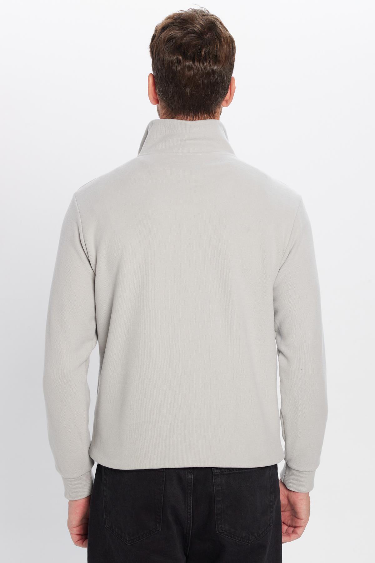 Unisex Relax Fit Rahat Kesim Fitilli Pamuklu Yarım Fermuarlı Gri Dik Yaka Sweatshirt