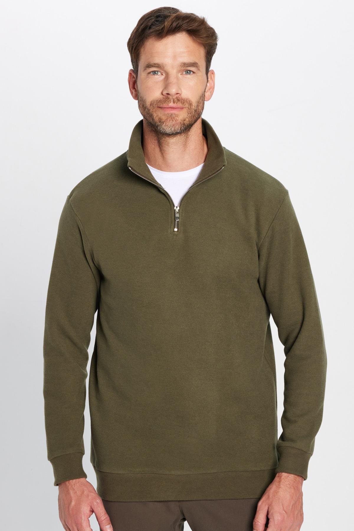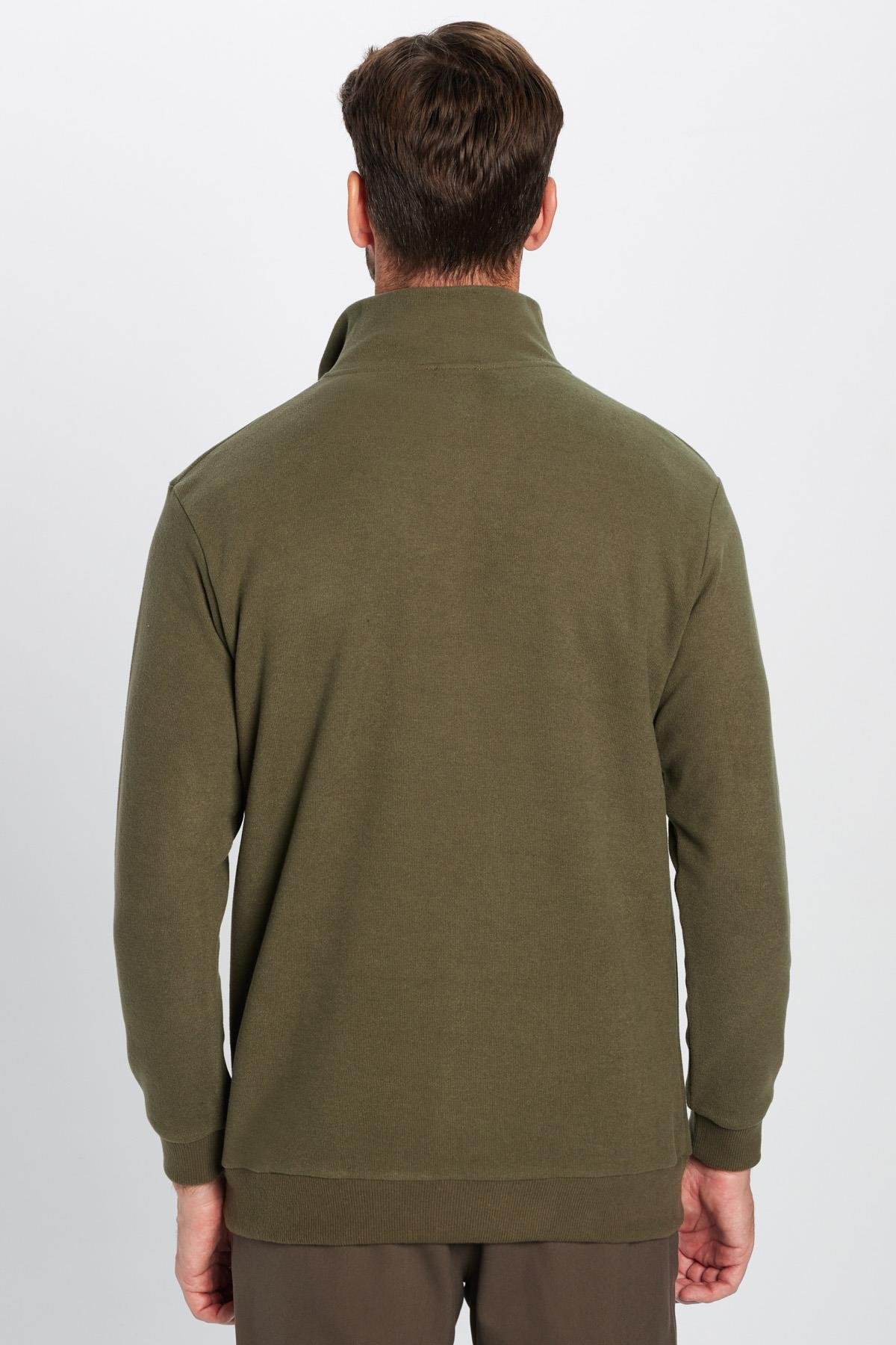 Unisex Relax Fit Rahat Kesim Fitilli Pamuklu Yarım Fermuarlı Haki Dik Yaka Sweatshirt (SW240007-48)