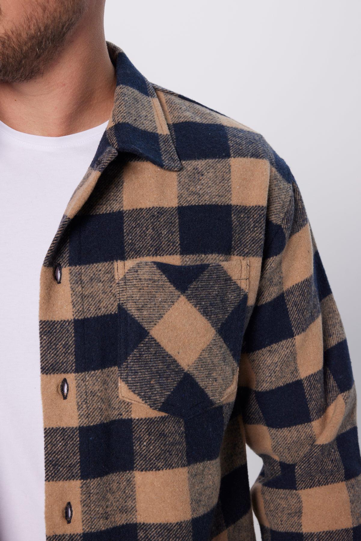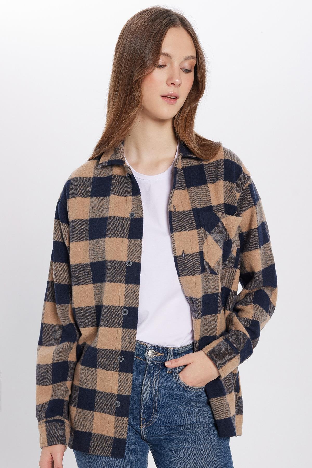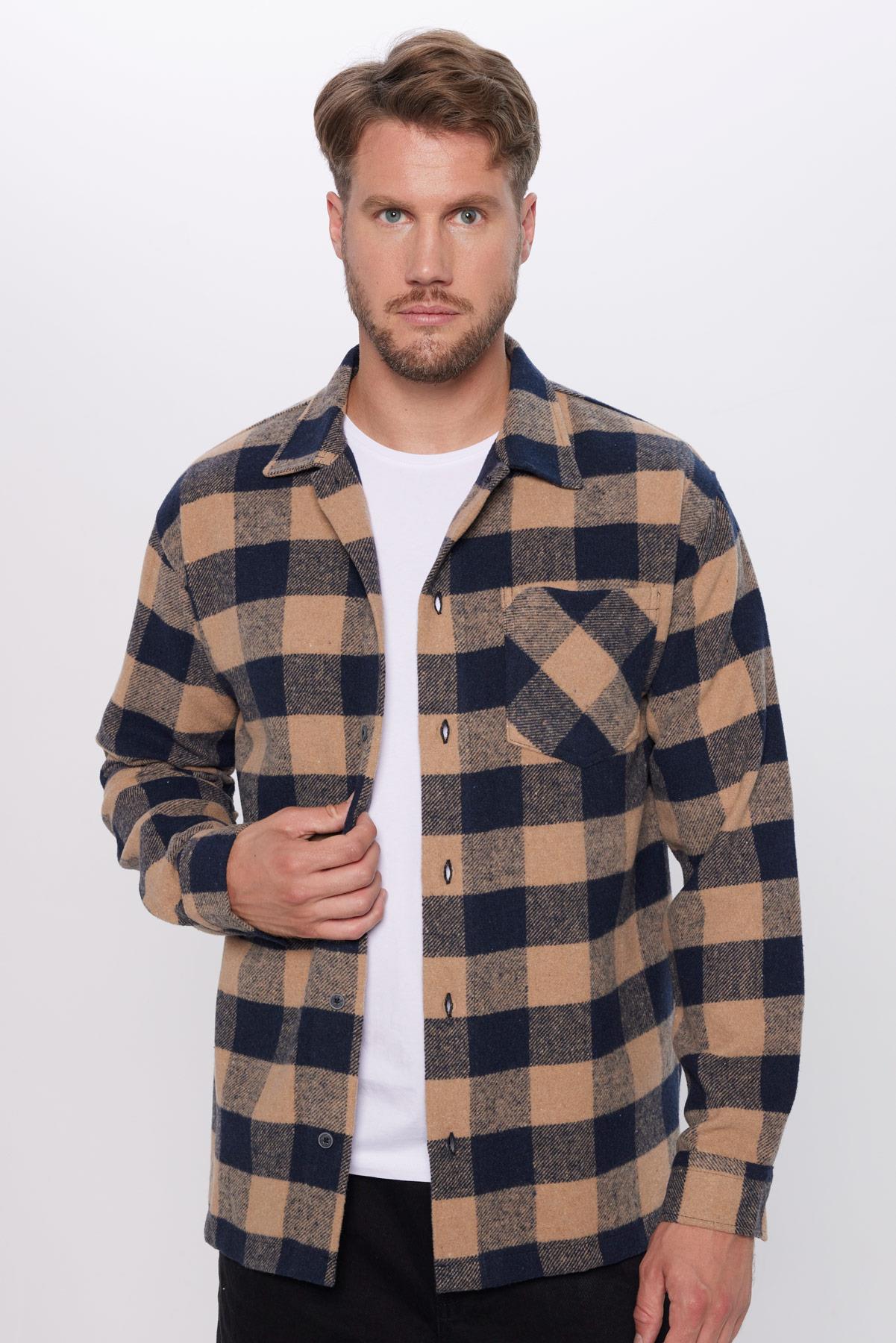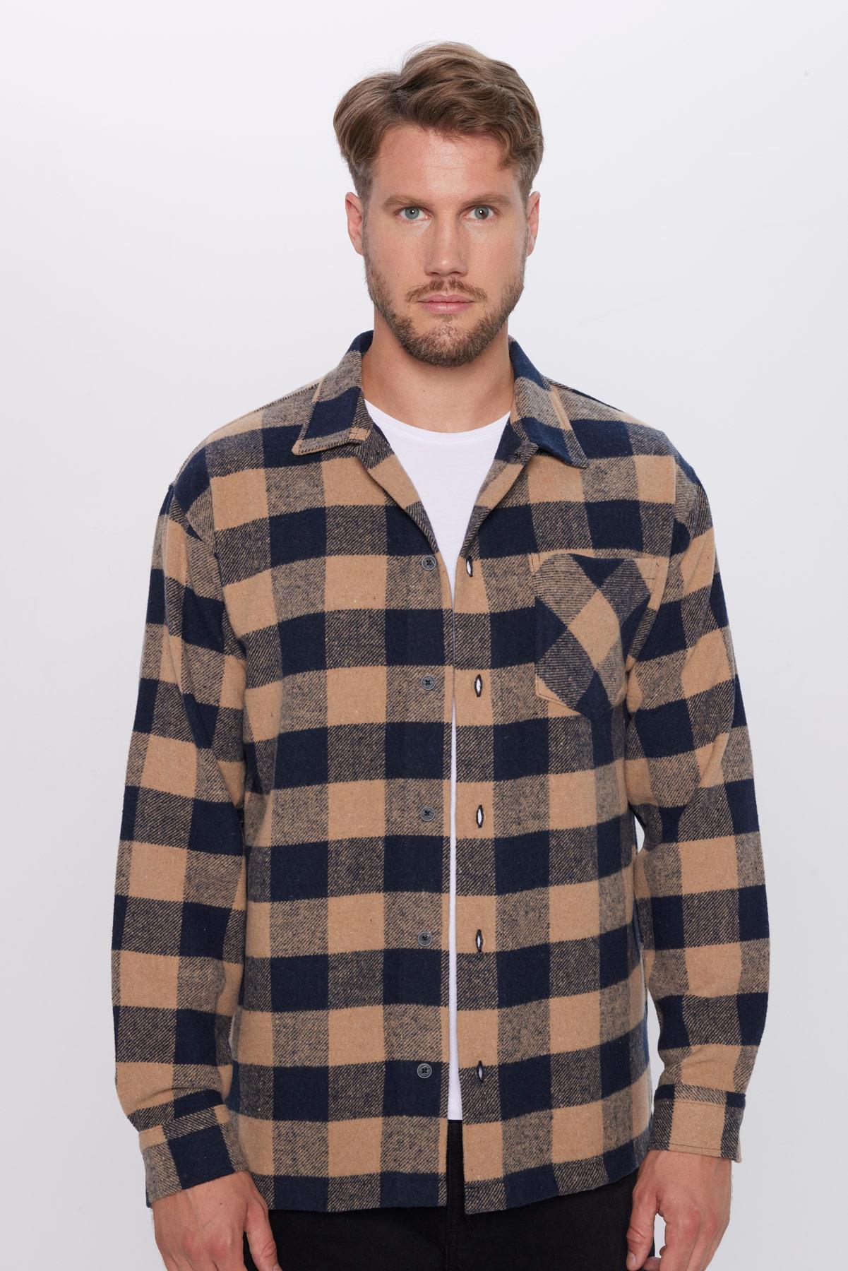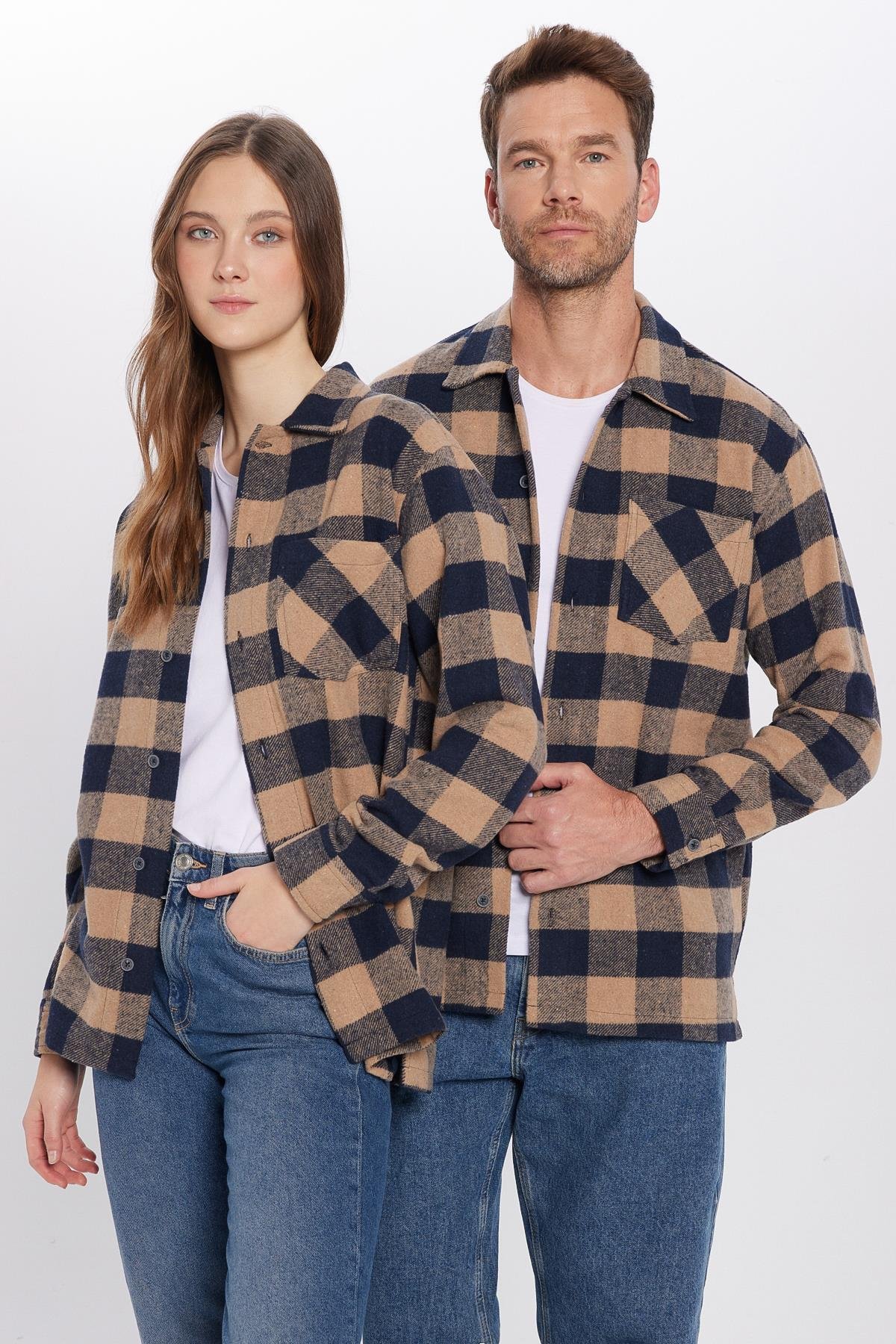 Unisex Relax Fit Rahat Kesim Oduncu Apaş Yaka Tek Cep Kareli Kışlık Gömlek (RF250011-7682)